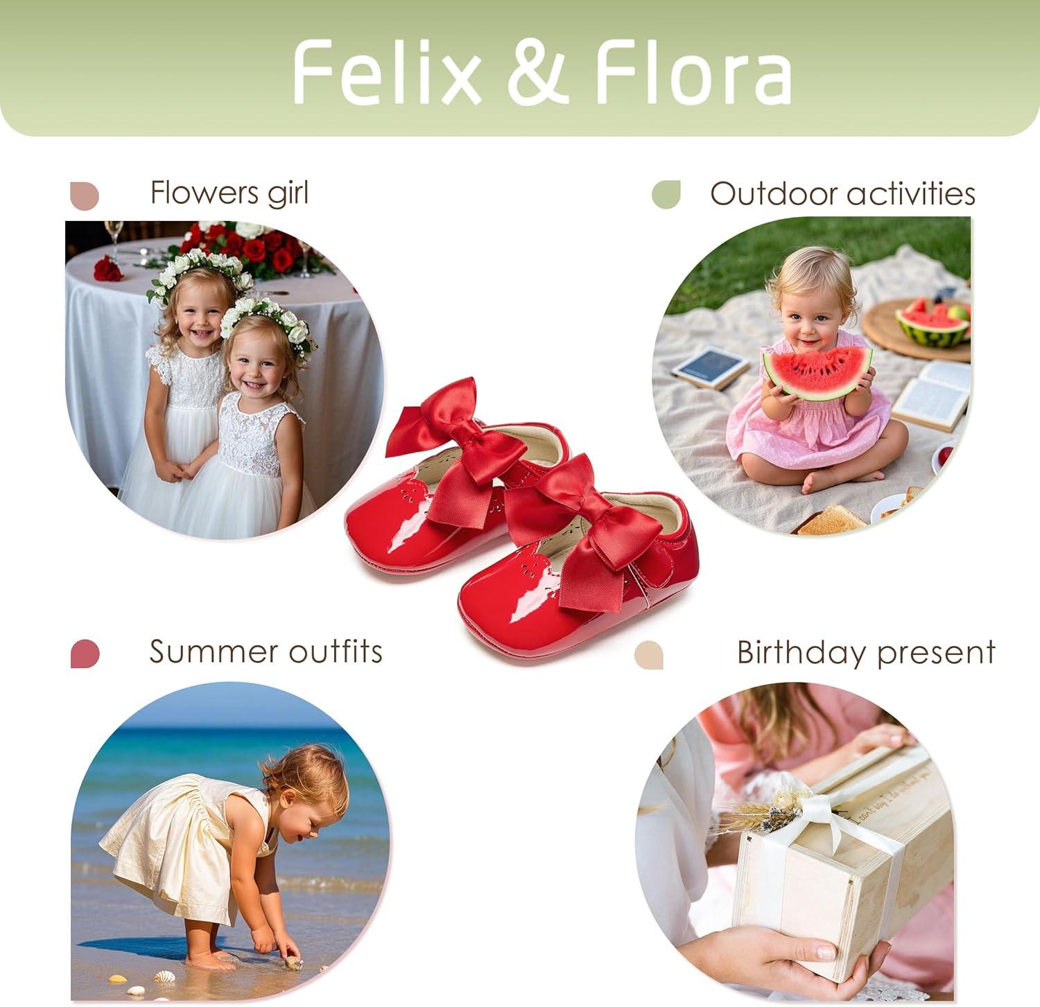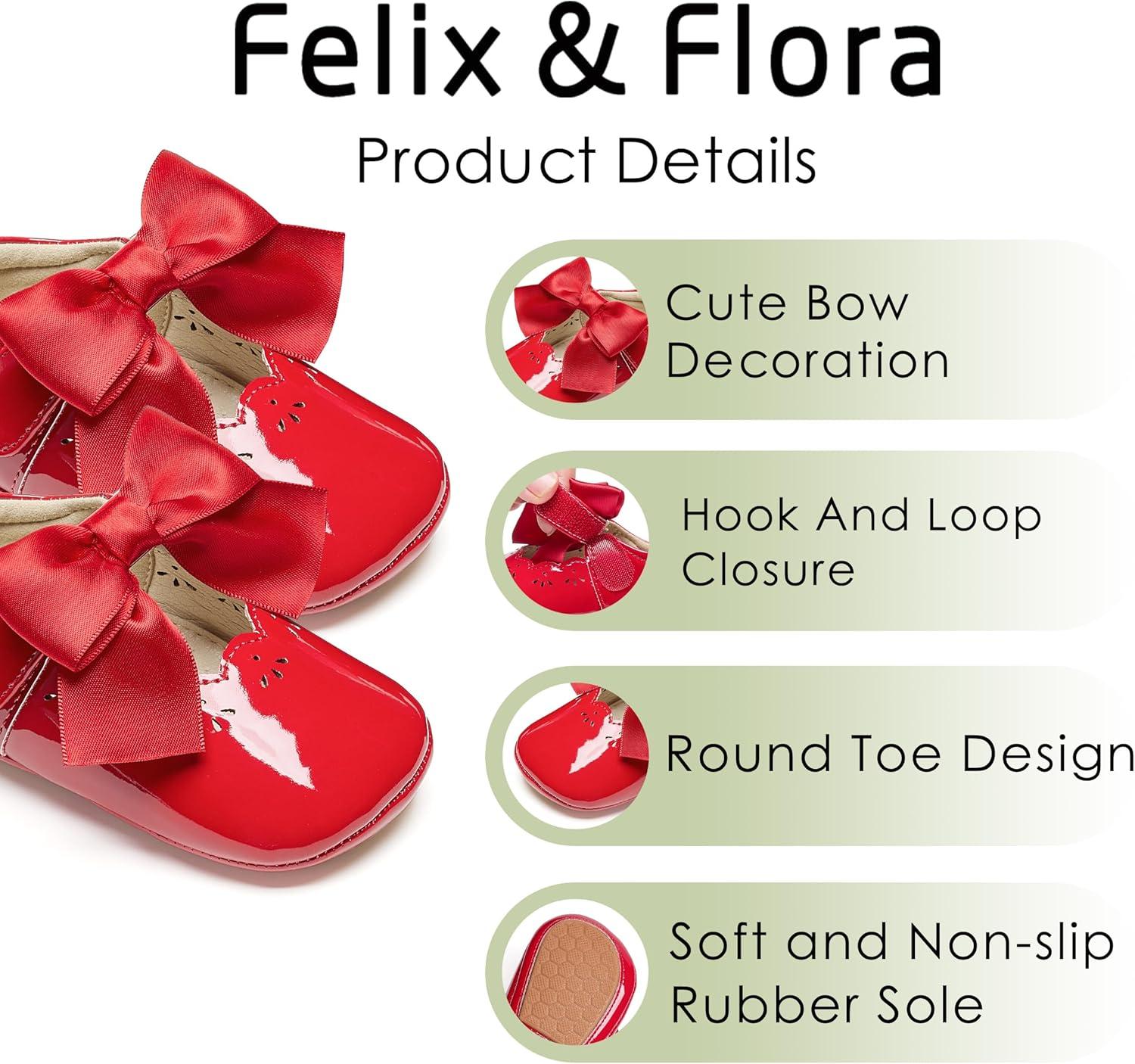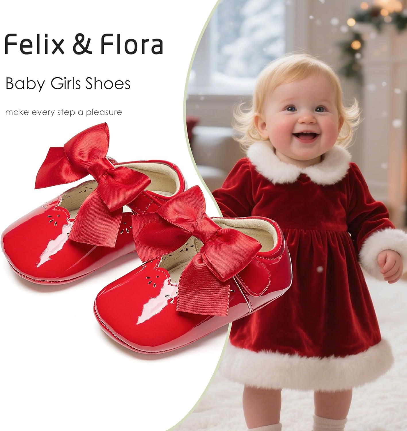 Felix & Flora Baby Dress Shoes – Infant Baby Girls Mary Jane Flats Moccasinss Soft Sole Walking Crib Shoes(Bn34-red)