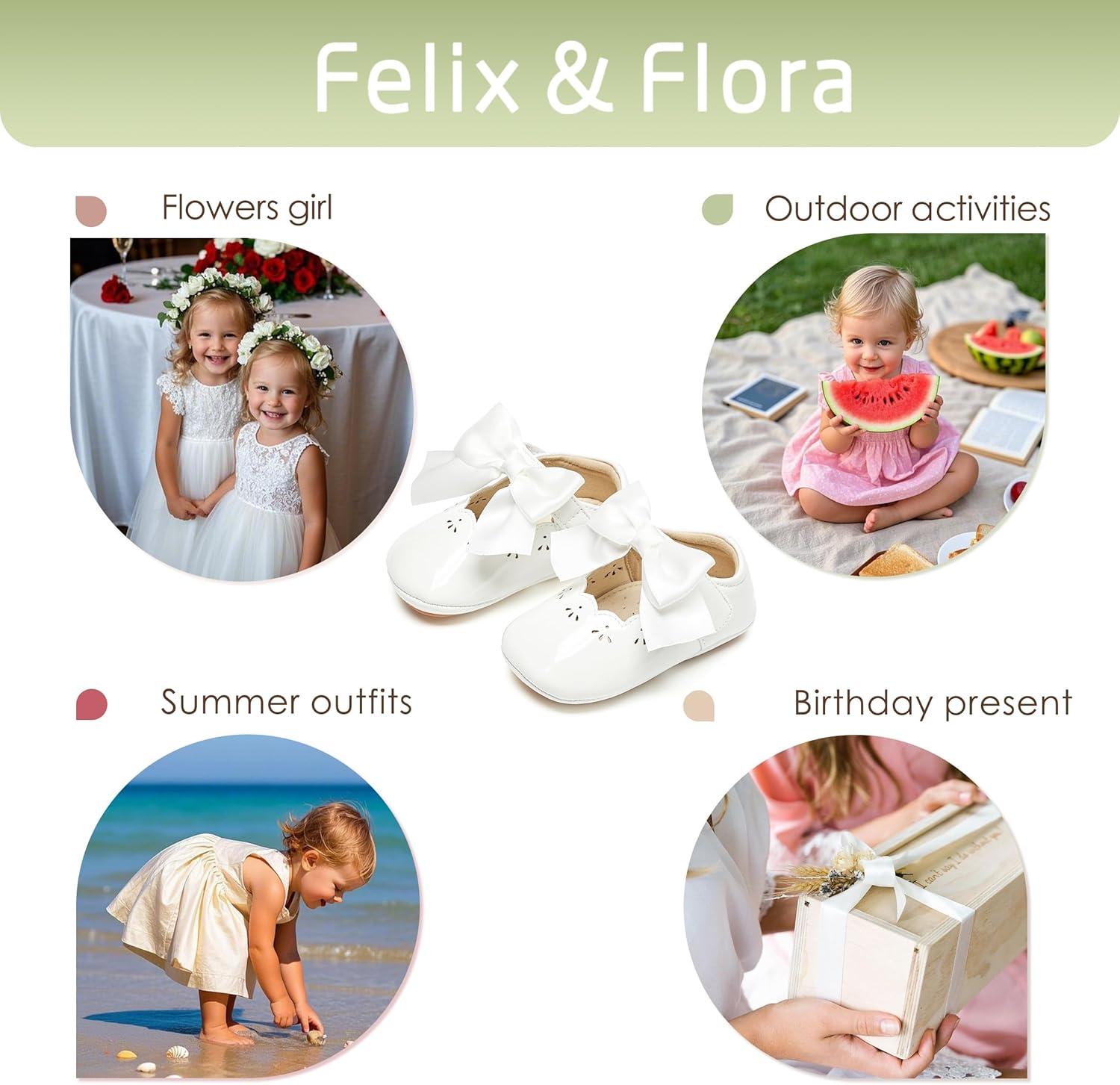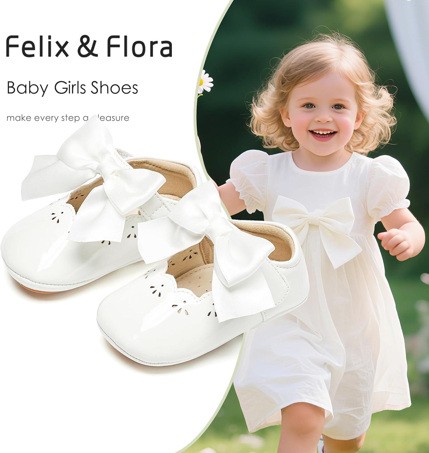 Felix & Flora Baby Dress Shoes – Infant Baby Girls Mary Jane Flats Moccasinss Soft Sole Walking Crib Shoes(Bn34-white)