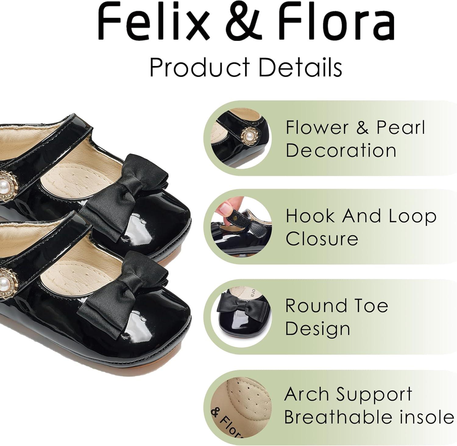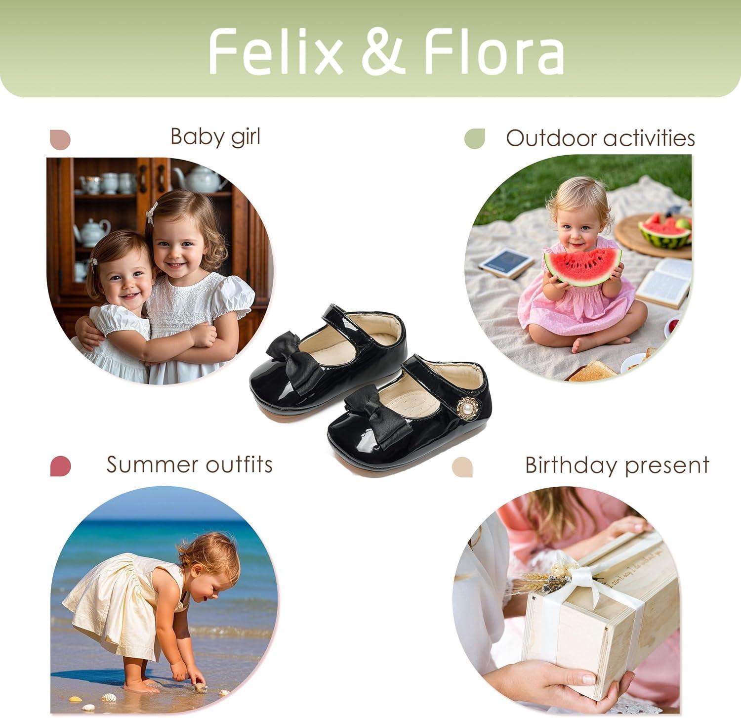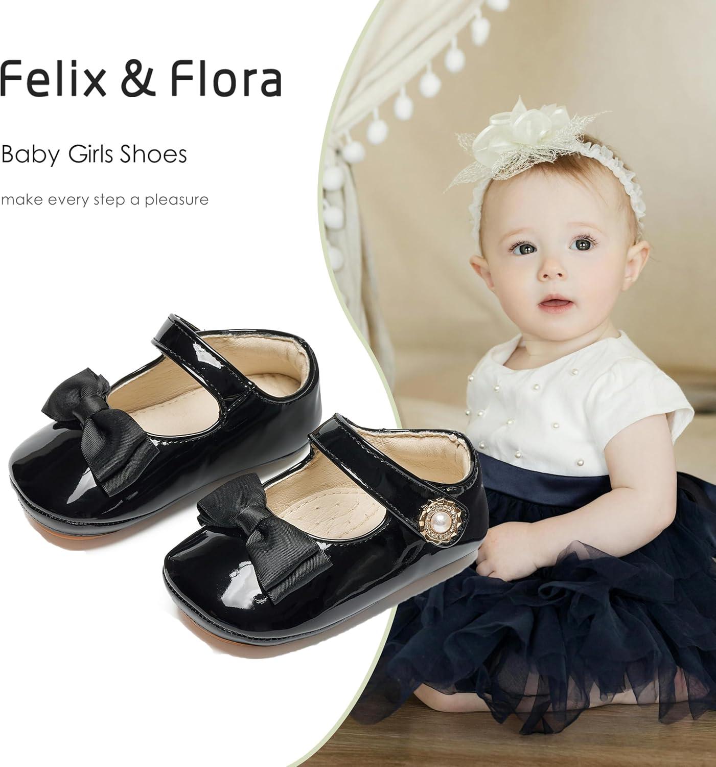 Felix & Flora Baby Dress Shoes – Infant Baby Girls Mary Jane Flats Moccasinss Soft Sole Walking Crib Shoes(Bn35-black)