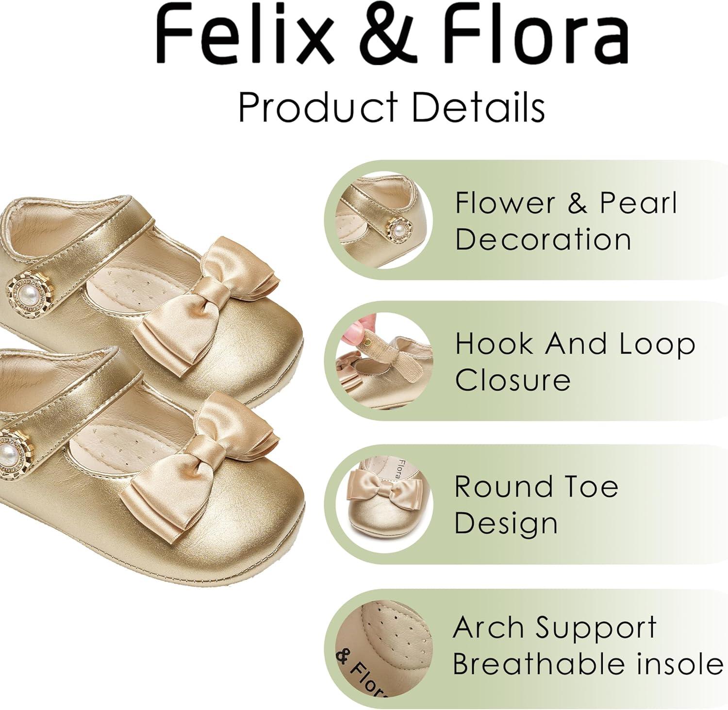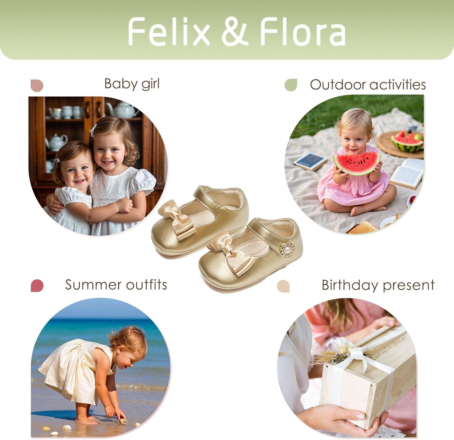 Felix & Flora Baby Dress Shoes – Infant Baby Girls Mary Jane Flats Moccasinss Soft Sole Walking Crib Shoes(Bn35-fl Gold)