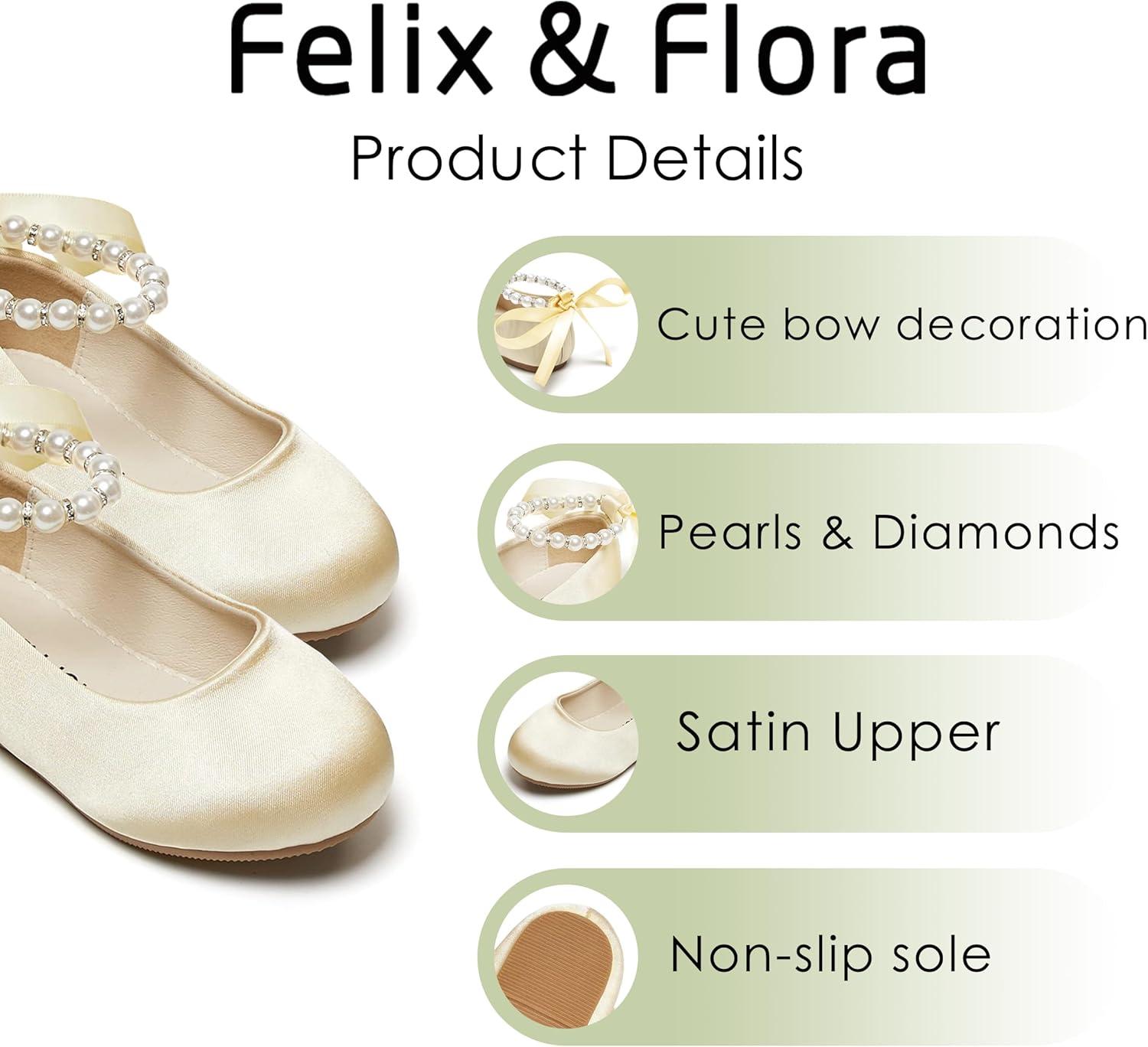Felix & Flora Toddler Little Girl Dress Shoes – Girl Mary Jane Flats Party School Wedding(B869-fl White)
