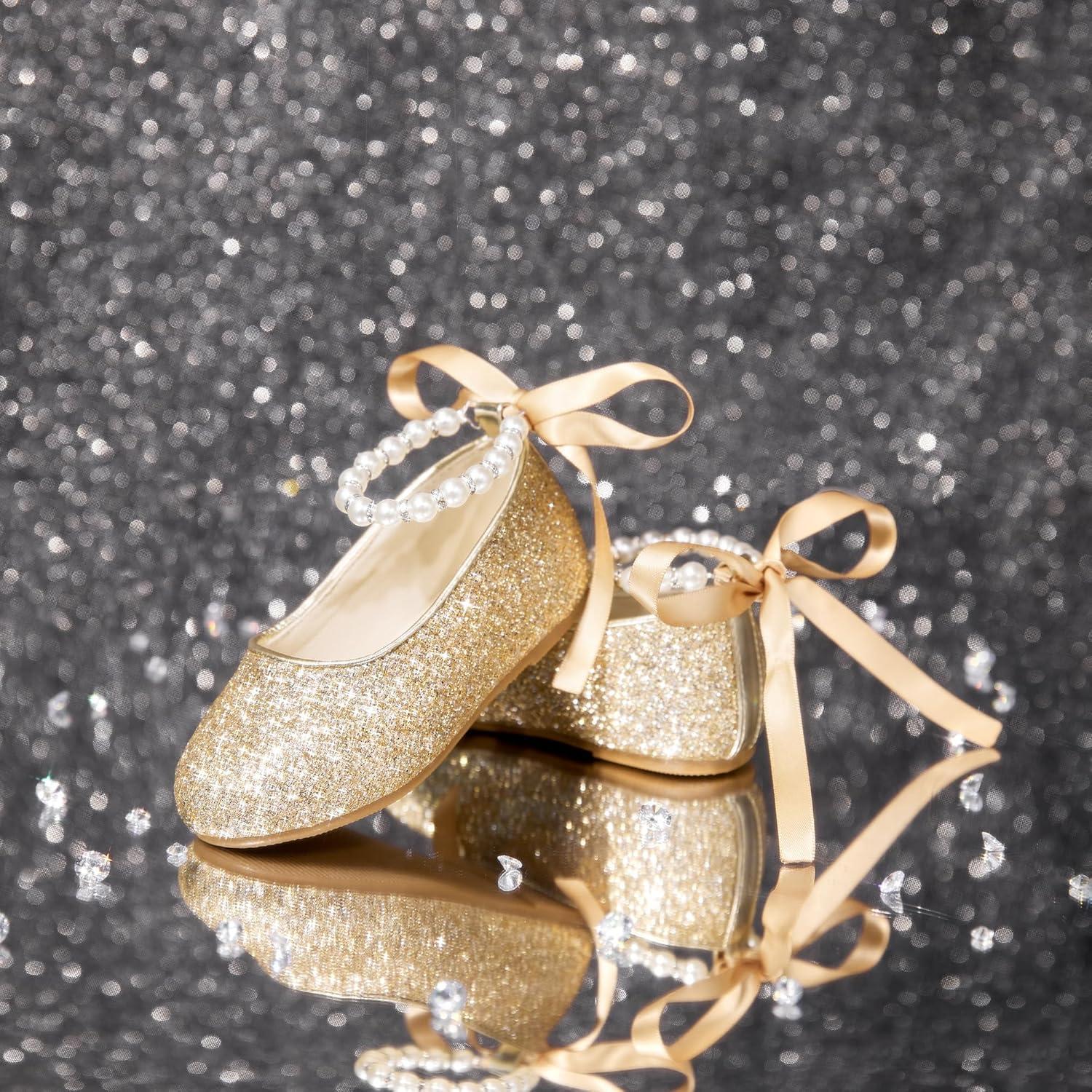 Felix & Flora Girls Toddler Little Ballet Shoes – Flower Girls Mary Jane Flats Dress Shoes Party Wedding(B836-gl Gold)