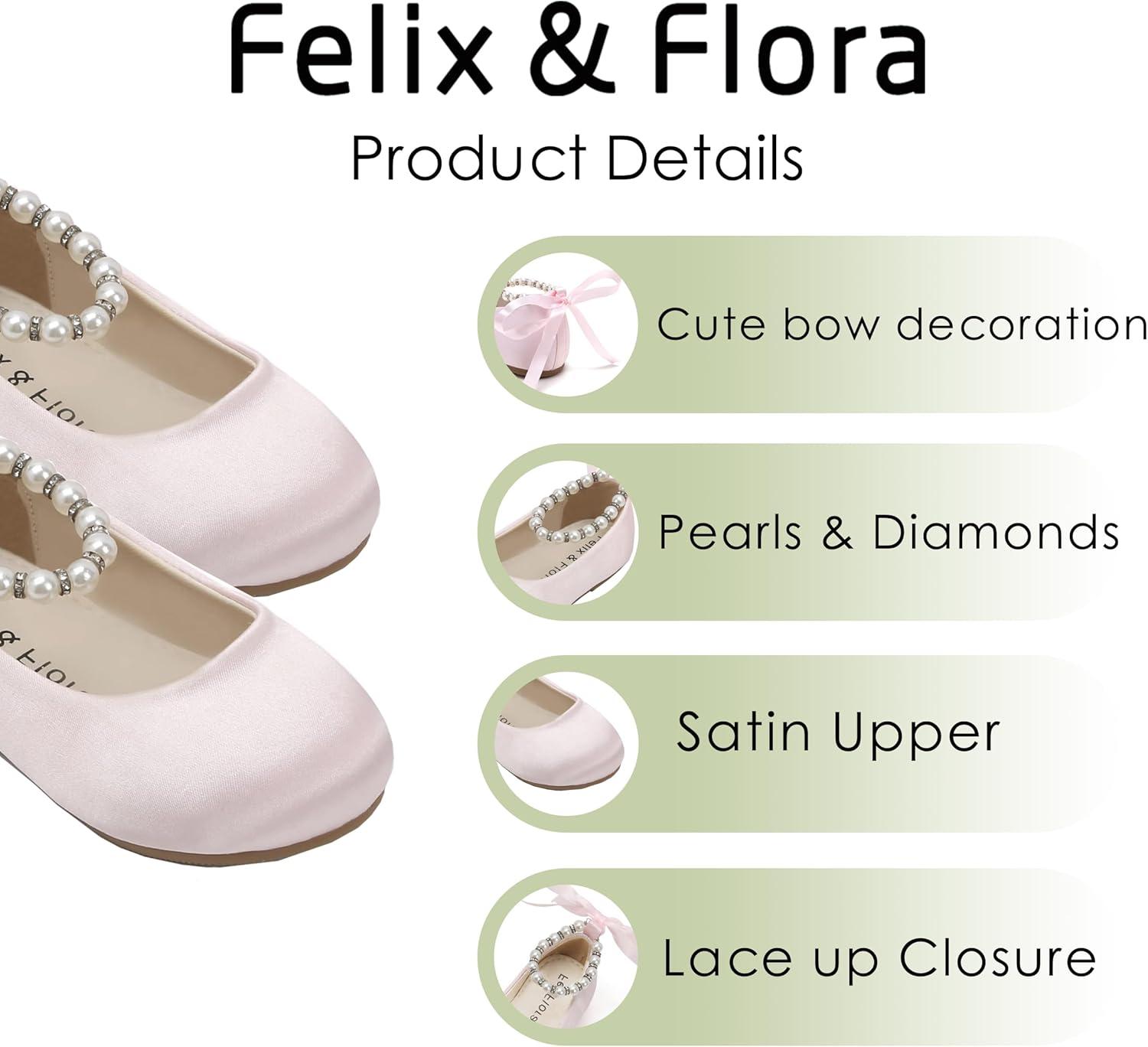 Felix & Flora Girls Toddler Little Ballet Shoes – Flower Girls Mary Jane Flats Dress Shoes Party Wedding(B836-light Pink)