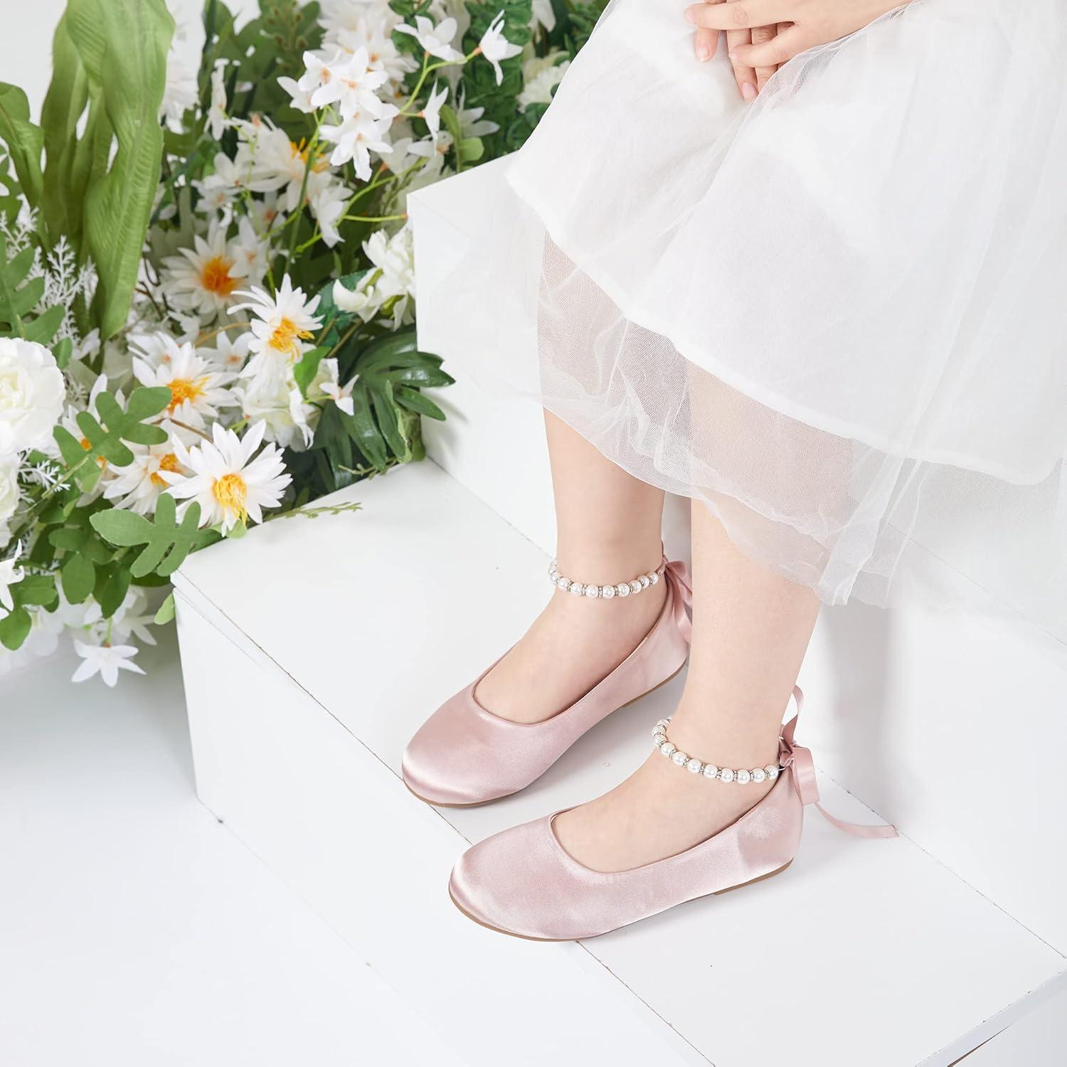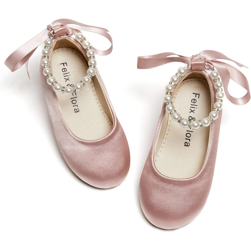 Felix & Flora Girls Toddler Little Ballet Shoes – Flower Girls Mary Jane Flats Dress Shoes Party Wedding(B836-pink)