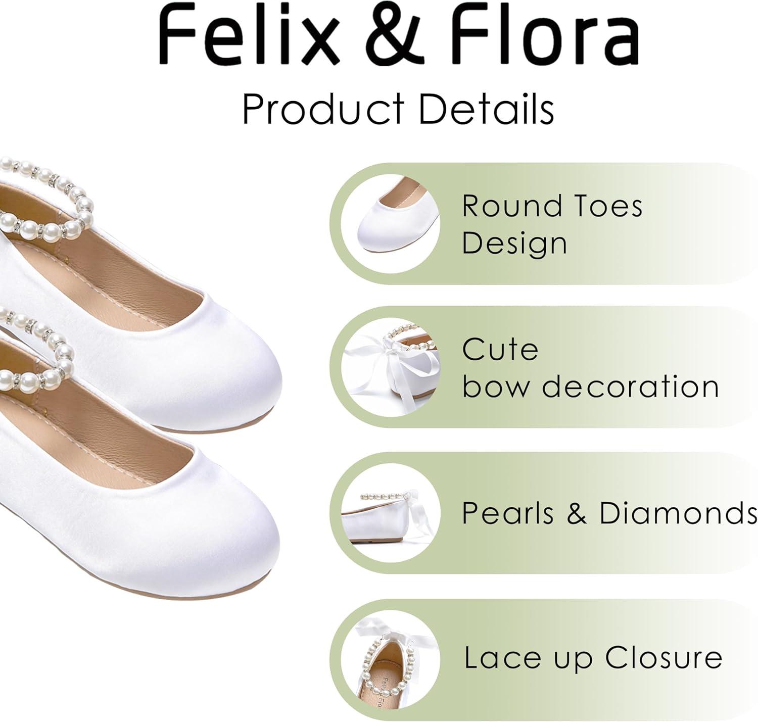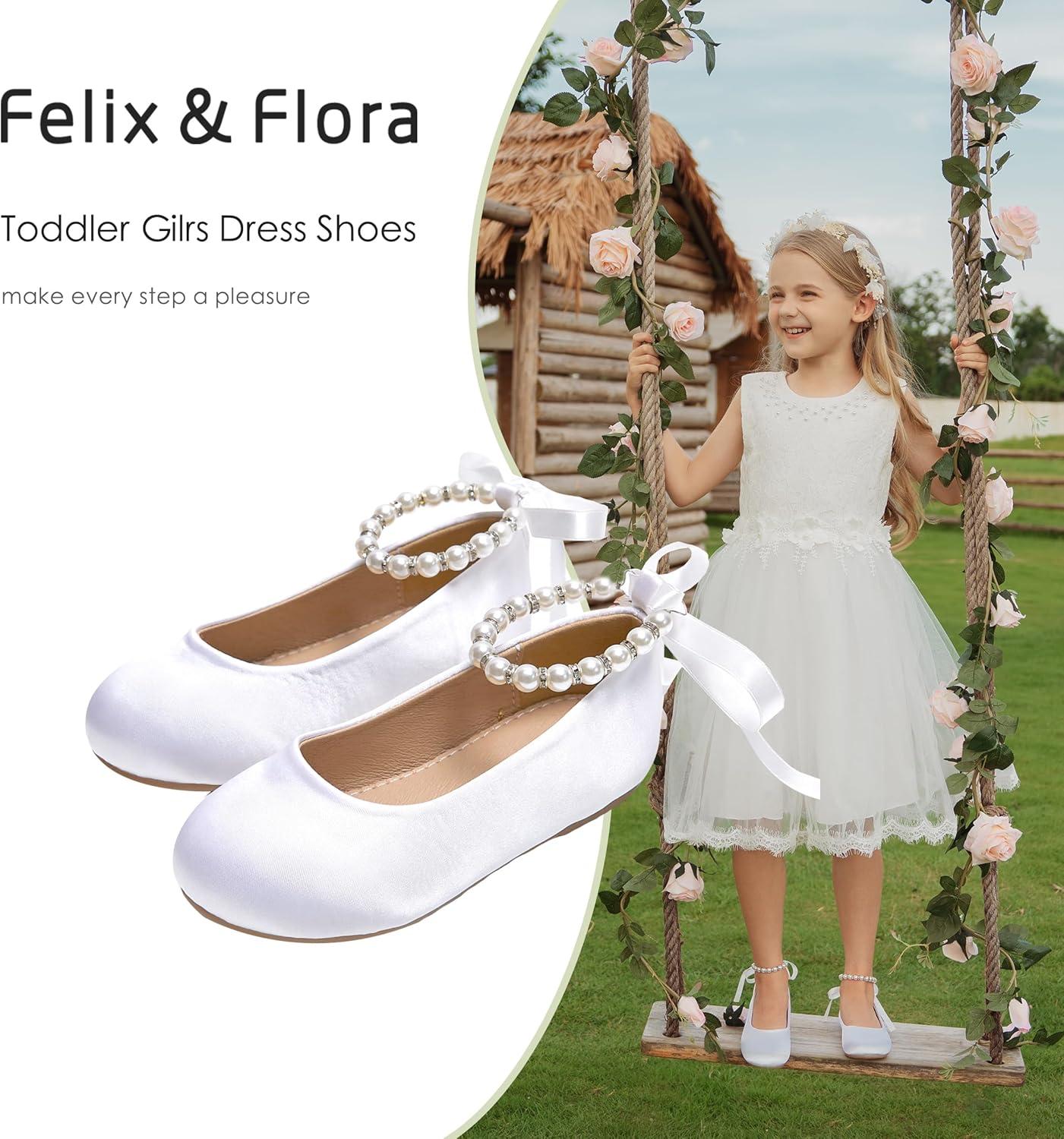 Felix & Flora Girls Toddler Little Ballet Shoes – Flower Girls Mary Jane Flats Dress Shoes Party Wedding(B836-white)