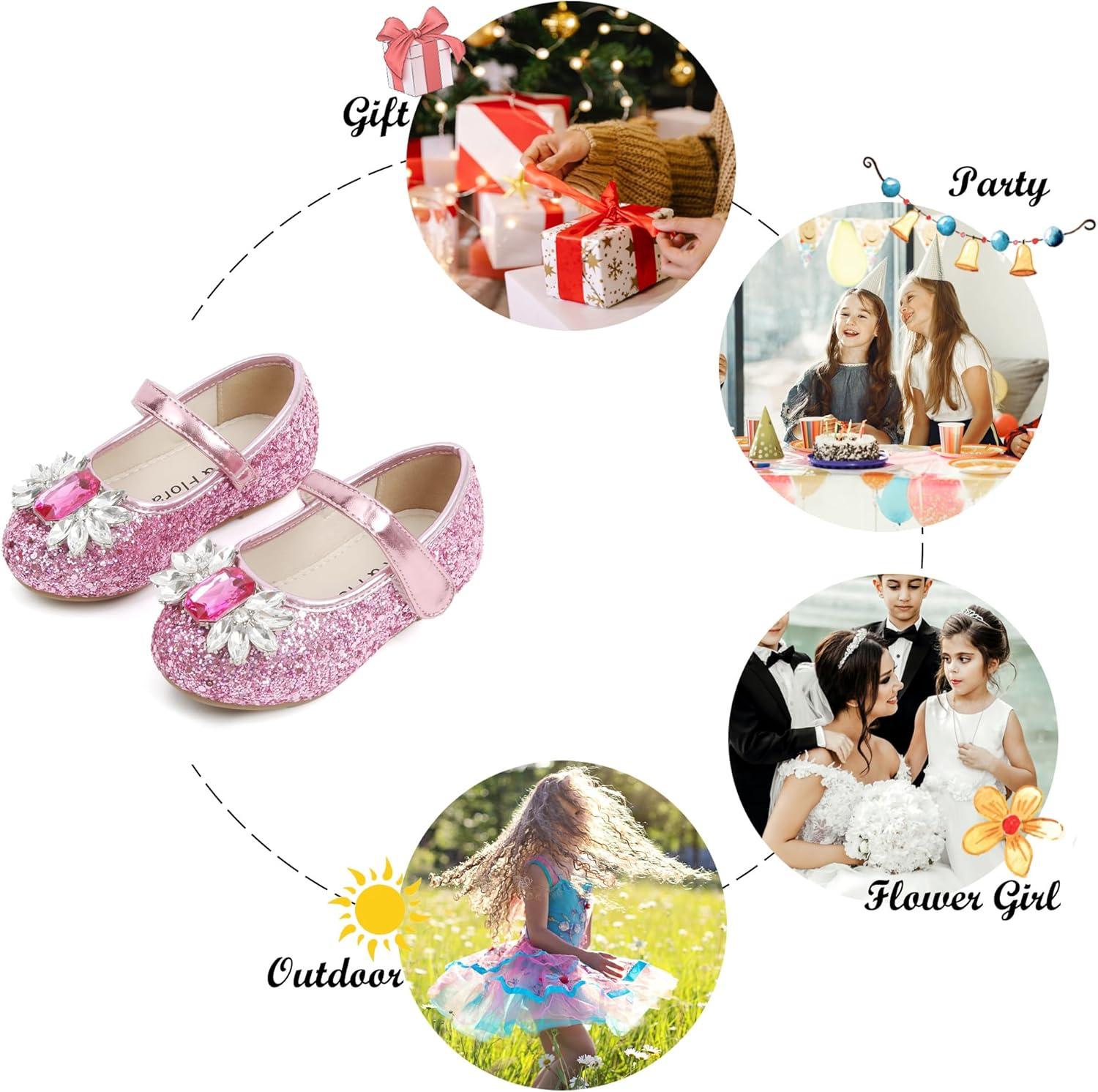 Felix & Flora Girls Toddler Little Ballet Shoes – Flower Girls Mary Jane Flats Dress Shoes Party Wedding(B871-pink)