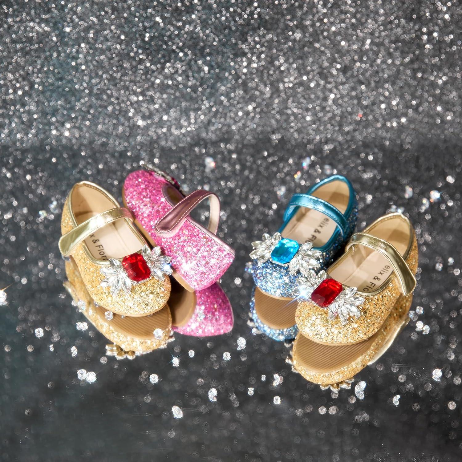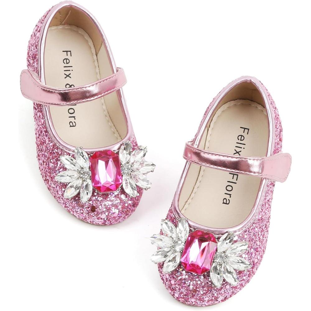 Felix & Flora Toddler Little Girl Dress Shoes – Girl Mary Jane Flats Party School Wedding(B876-glitter Red)