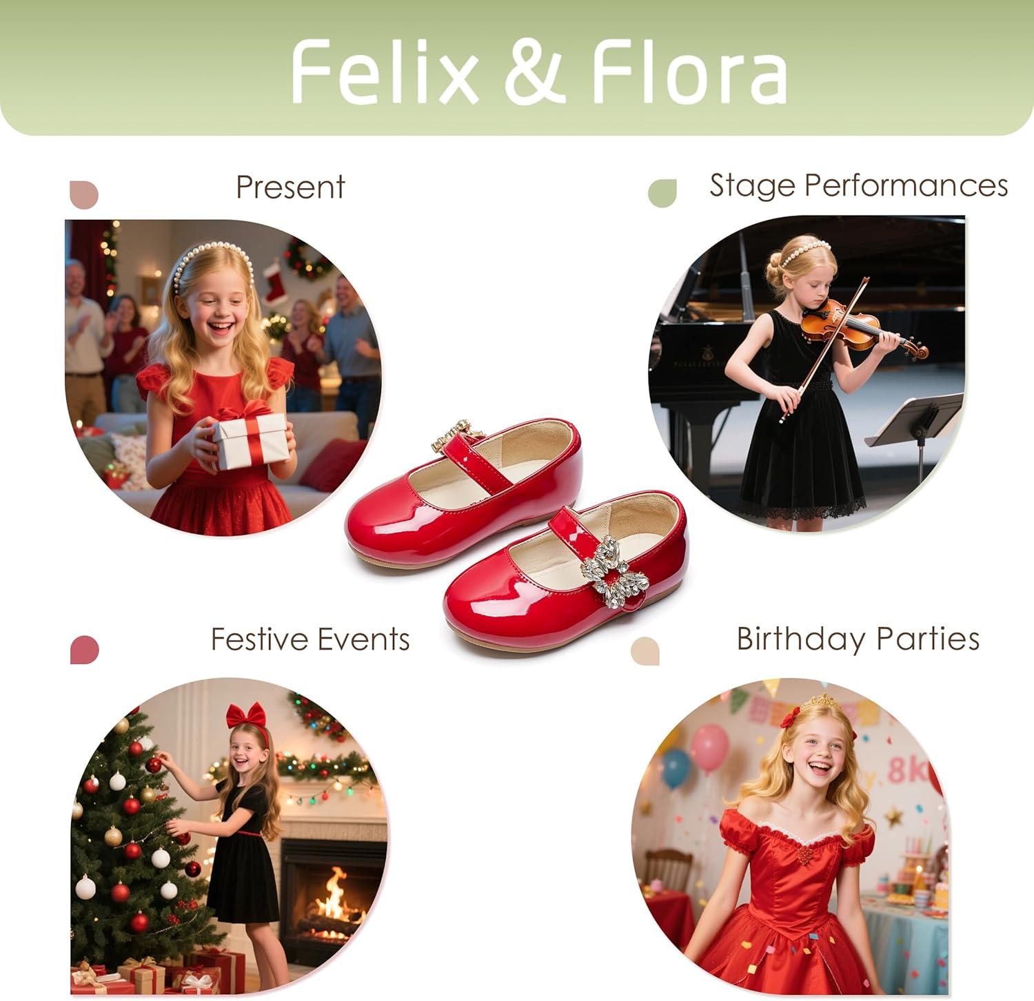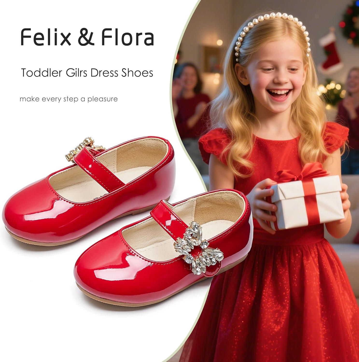 Felix & Flora Girls Toddler Little Ballet Shoes – Flower Girls Mary Jane Flats Dress Shoes Party Wedding(Bf23-pl Red)
