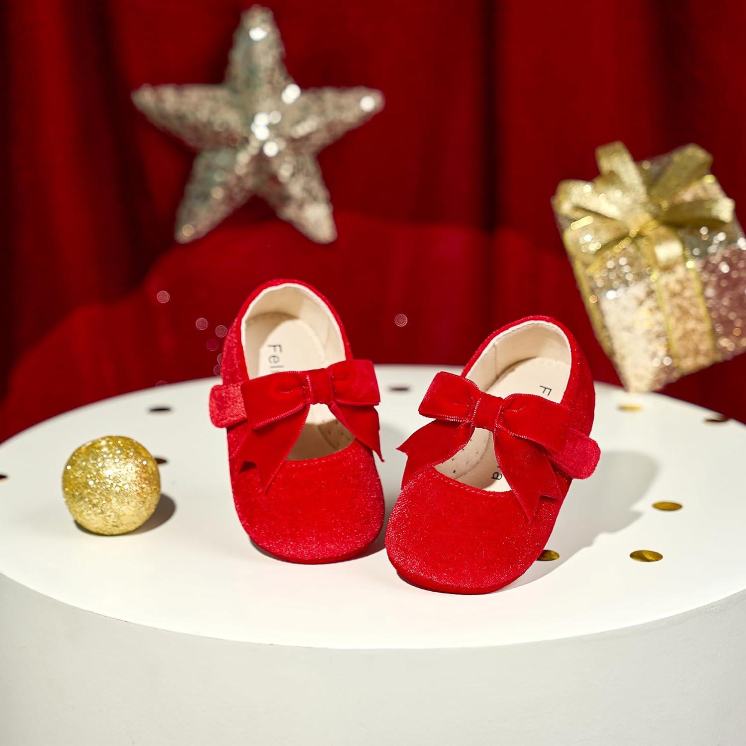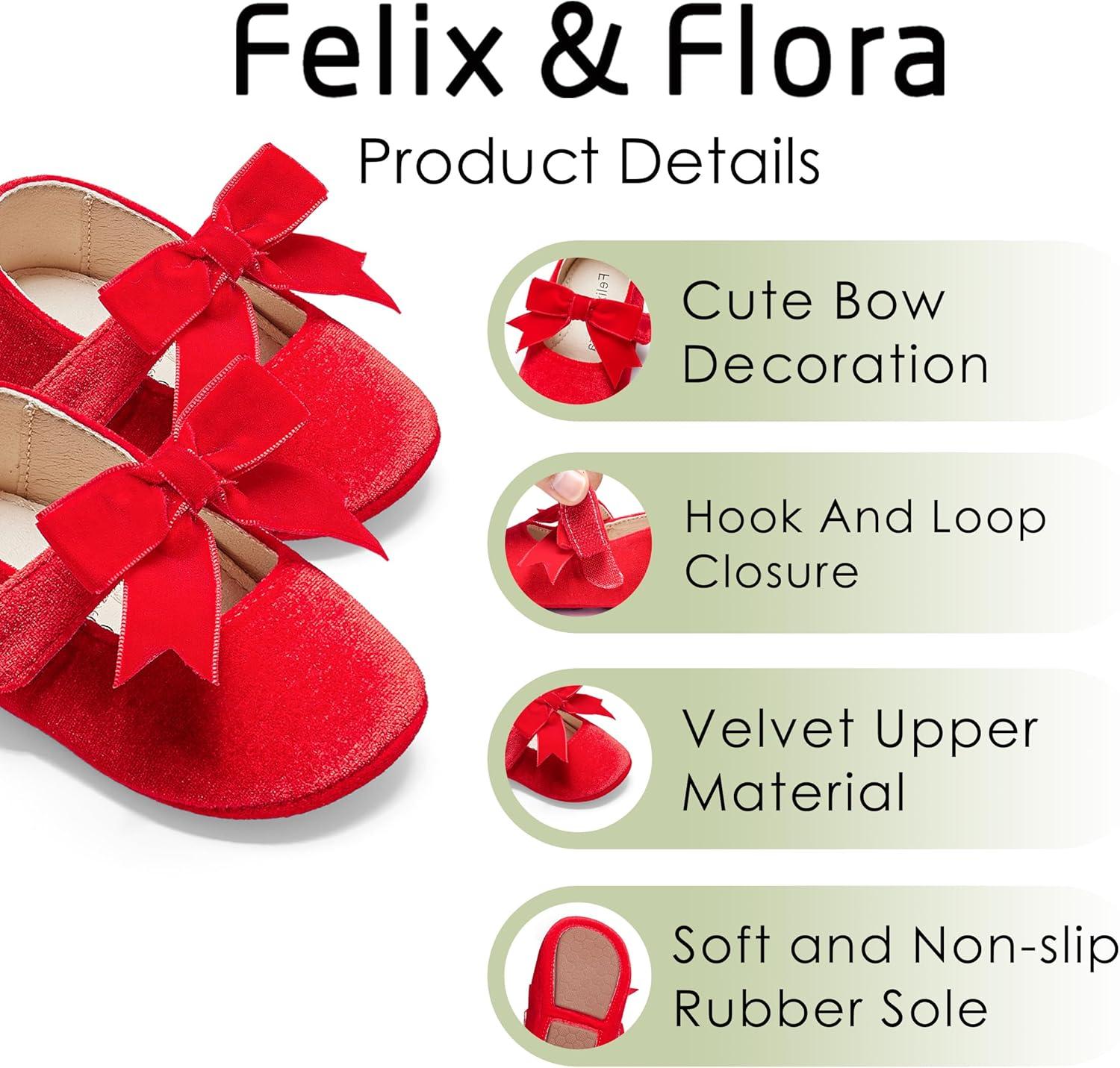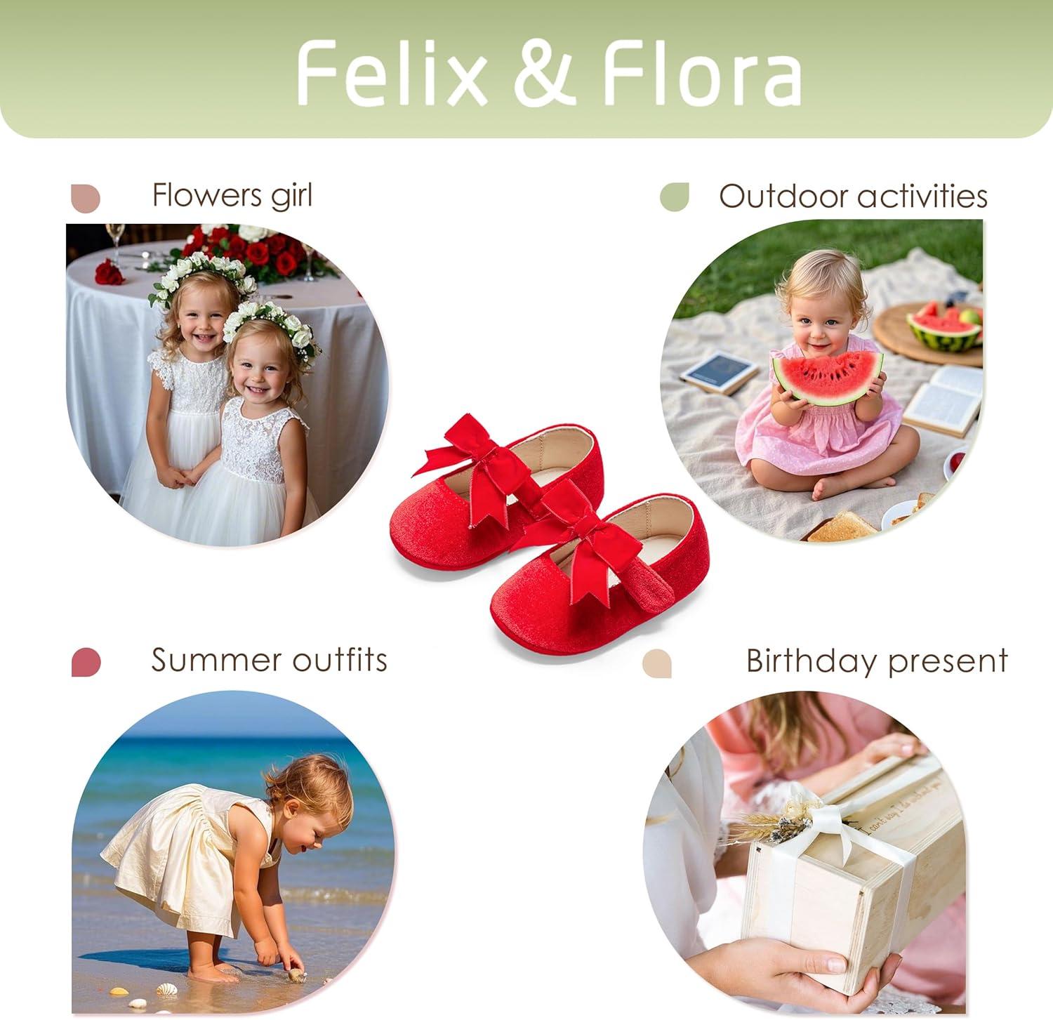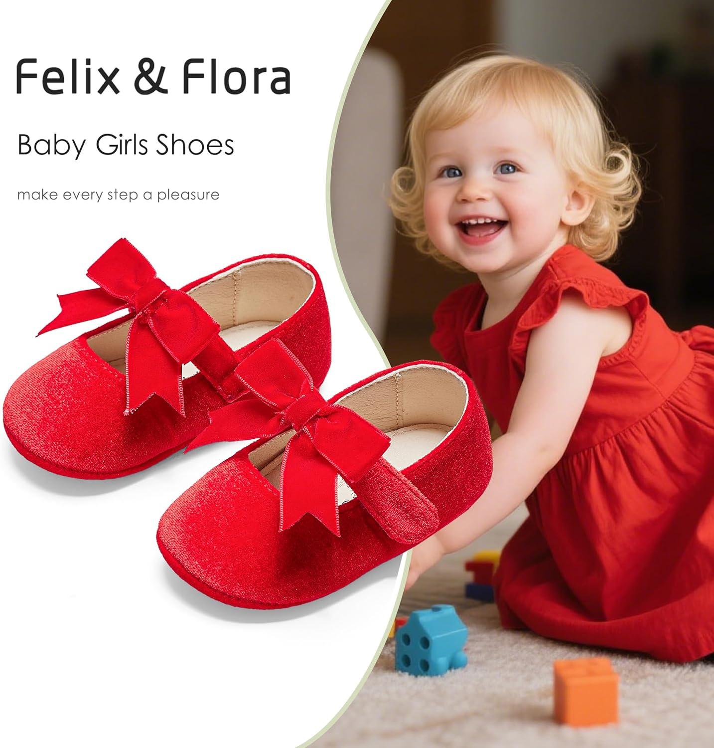 Felix & Flora Soft Sole Baby Shoes – Infant Baby Girls Ballet Flats Moccasinss Rubber Sole Walking Crib Shoes(Bn38-red)