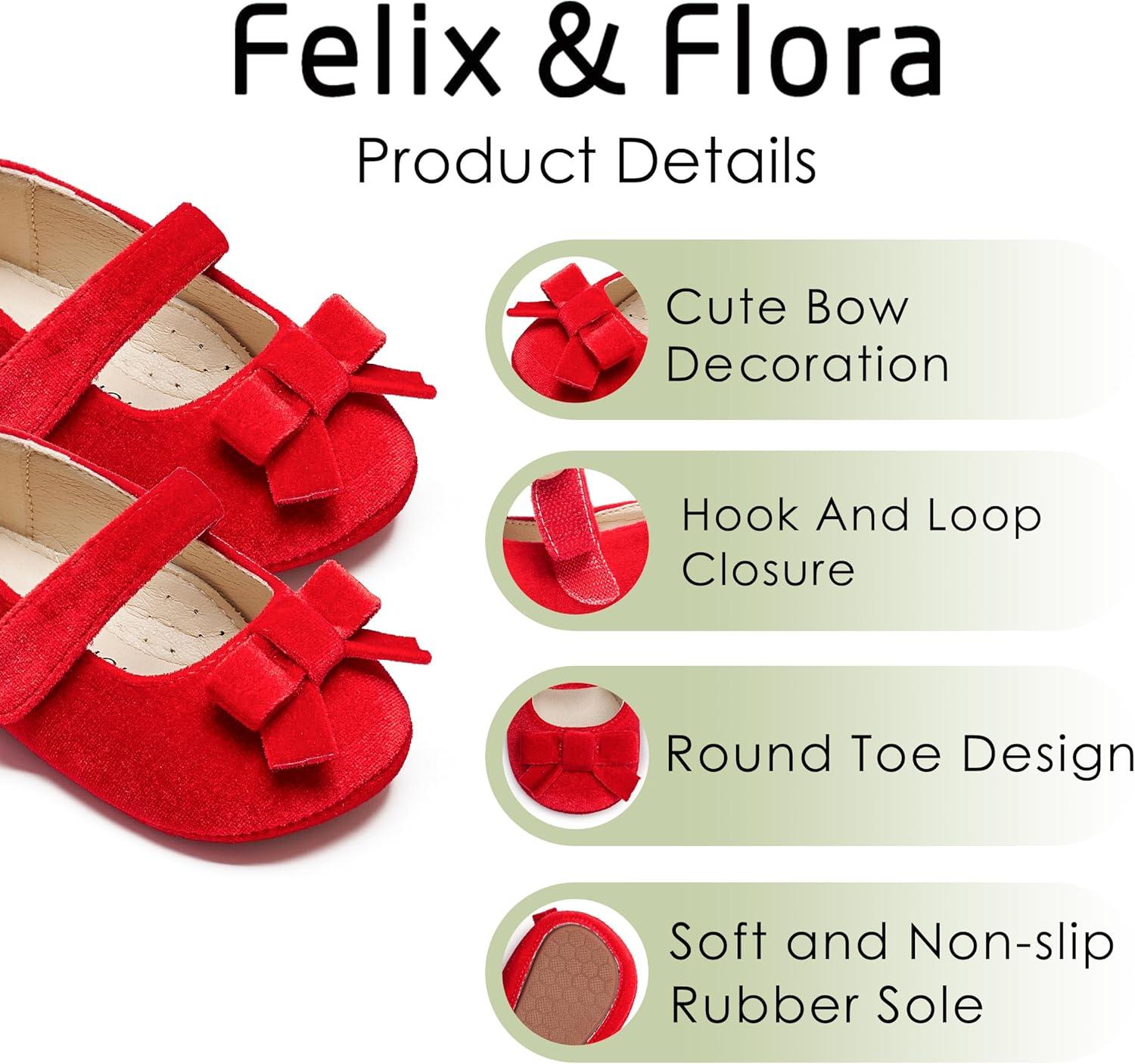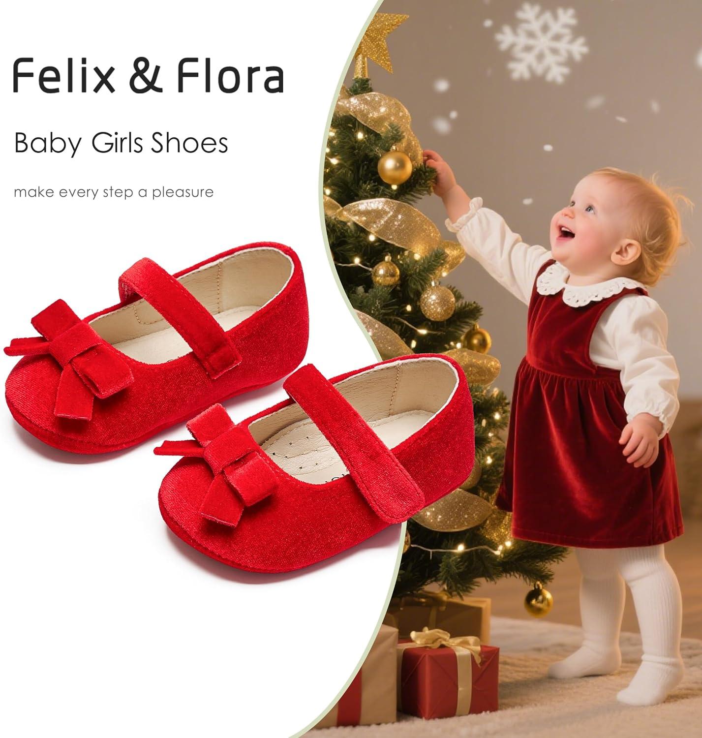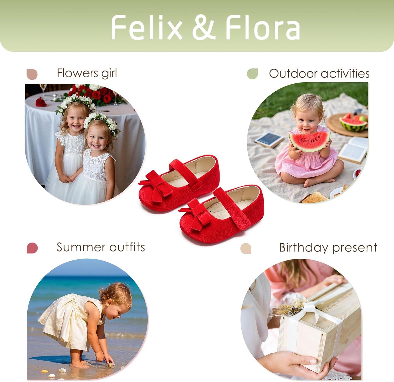 Felix & Flora Soft Sole Baby Shoes – Infant Baby Walking Shoes Moccasinss Rubber Sole Crib Shoes(Bn41-red)
