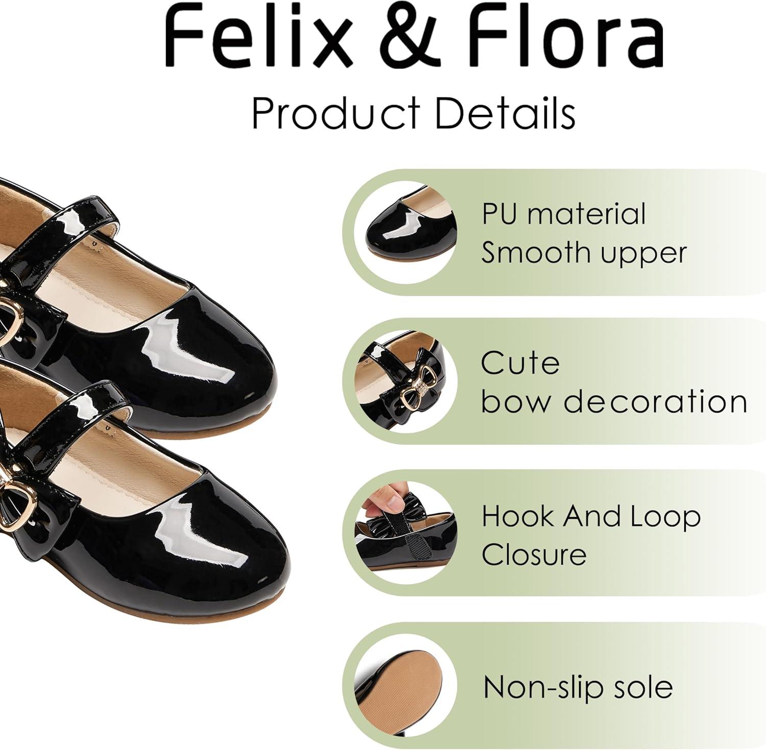 Felix & Flora Toddler Flower Girl Dress Shoes – Baby Girl Ballet Mary Jane Flats for Party School Wedding(B888-pl Black)