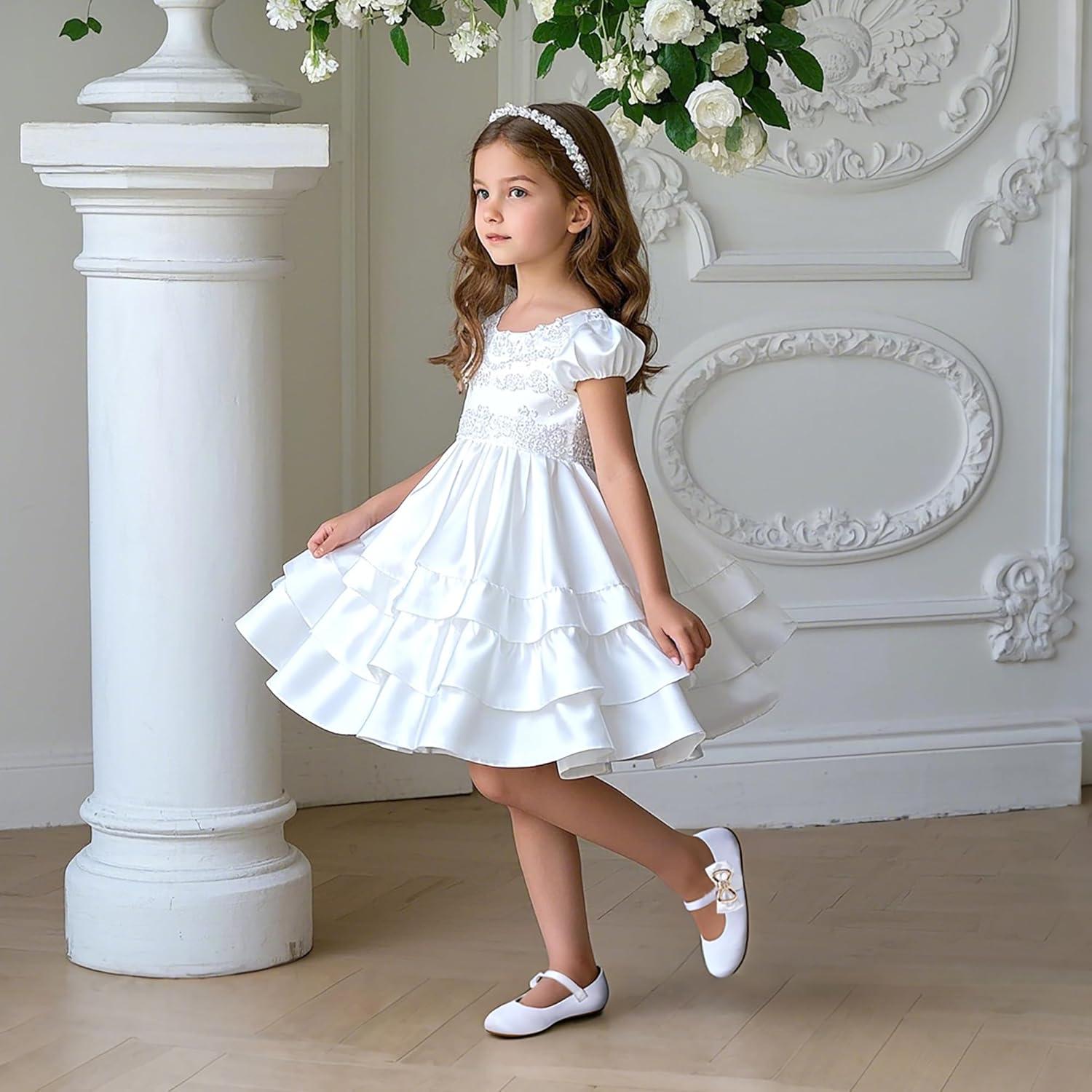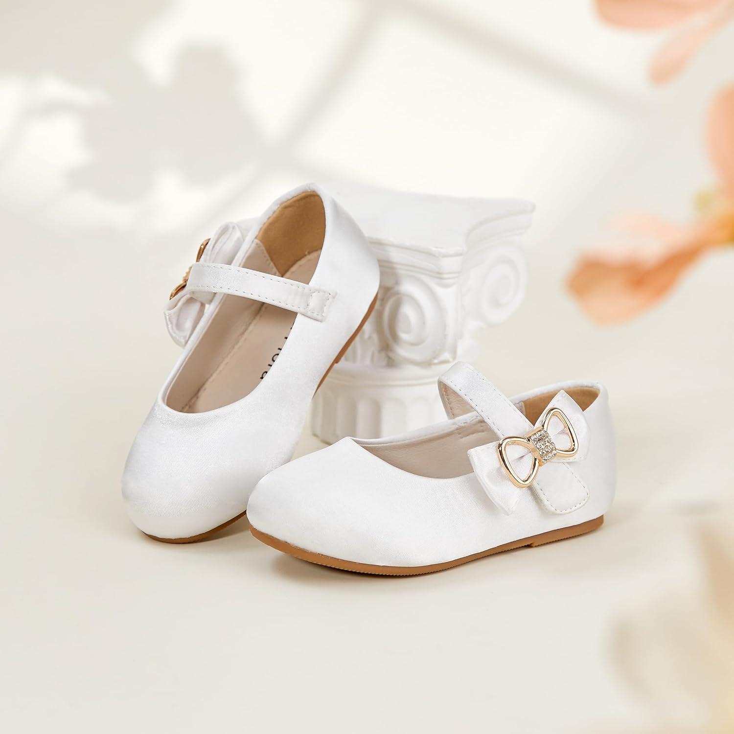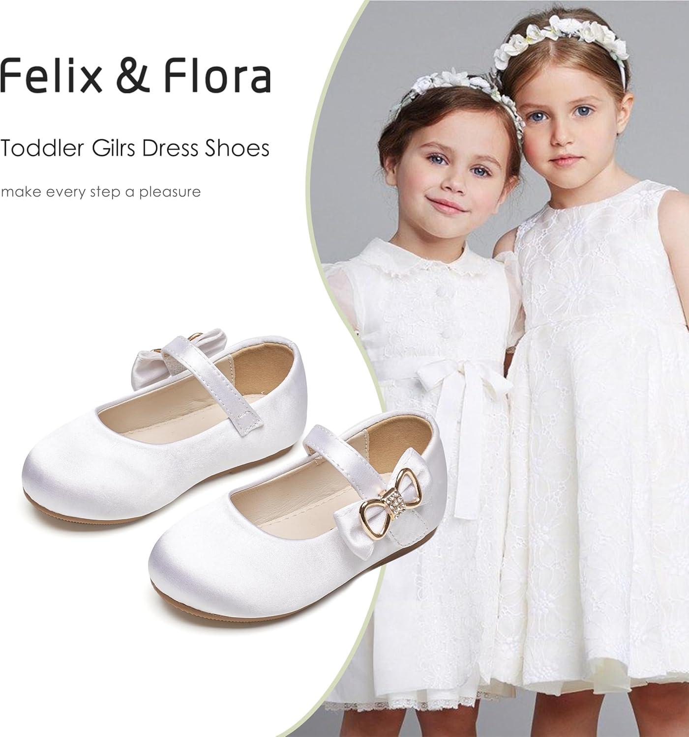 Felix & Flora Toddler Flower Girl Dress Shoes – Baby Girl Ballet Mary Jane Flats for Party School Wedding(B888-s White)