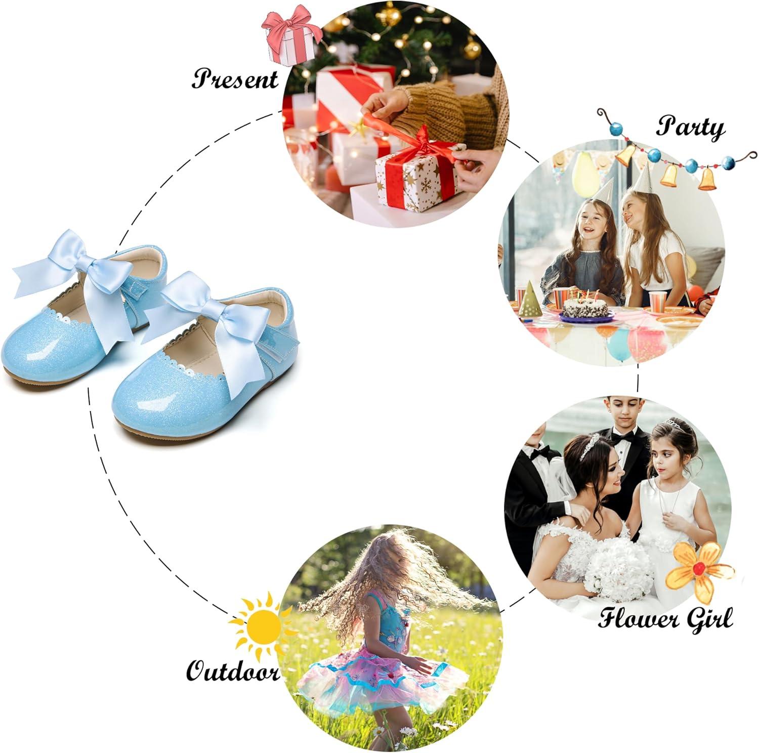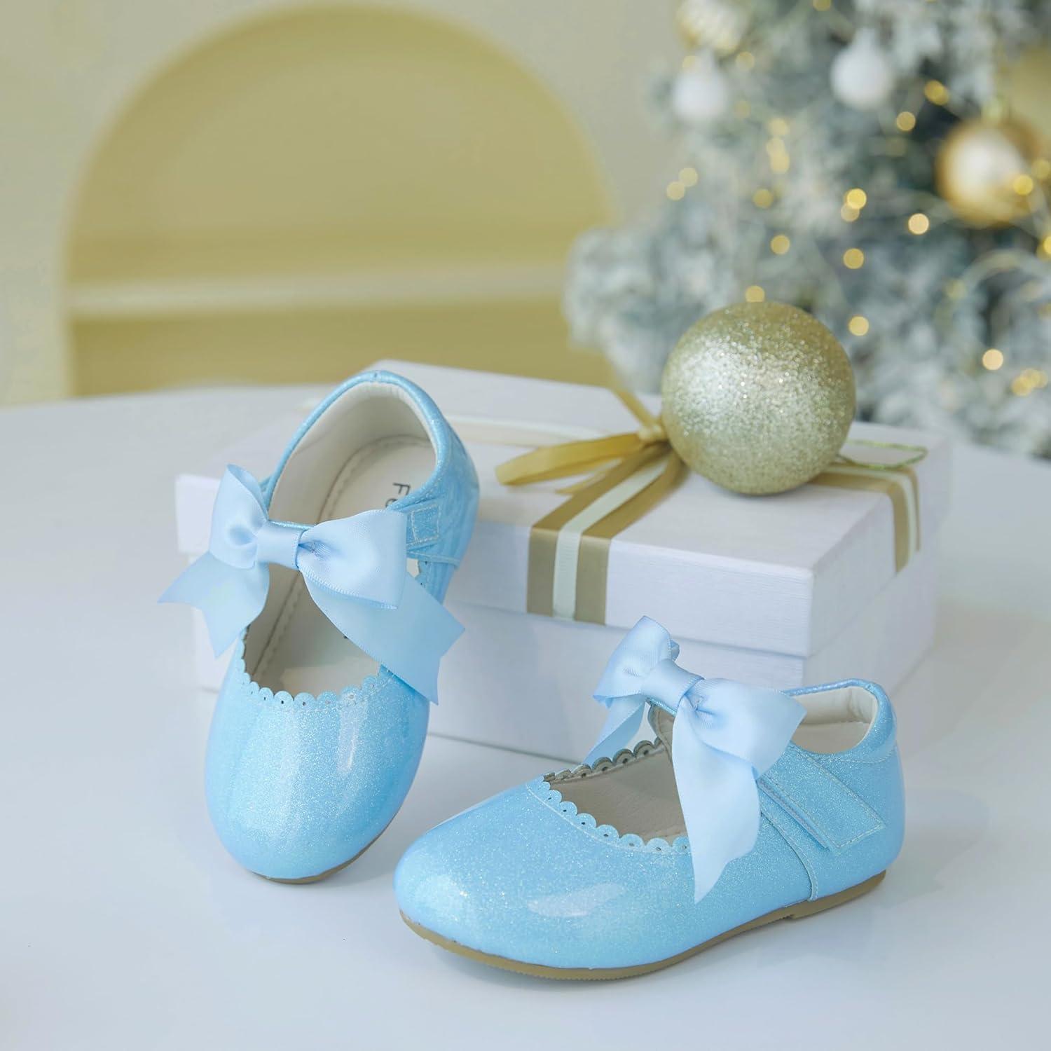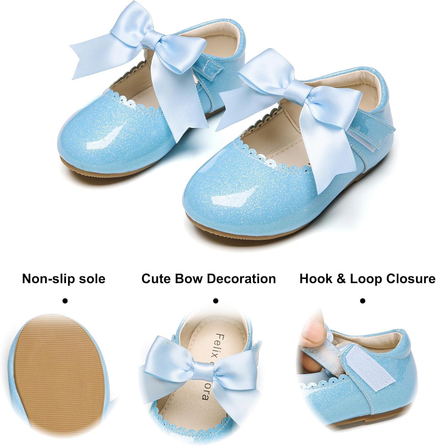 Felix & Flora Toddler Flower Girl Dress Shoes – Baby Girl Ballet Mary Jane Flats for Party School Wedding(B890-blue)