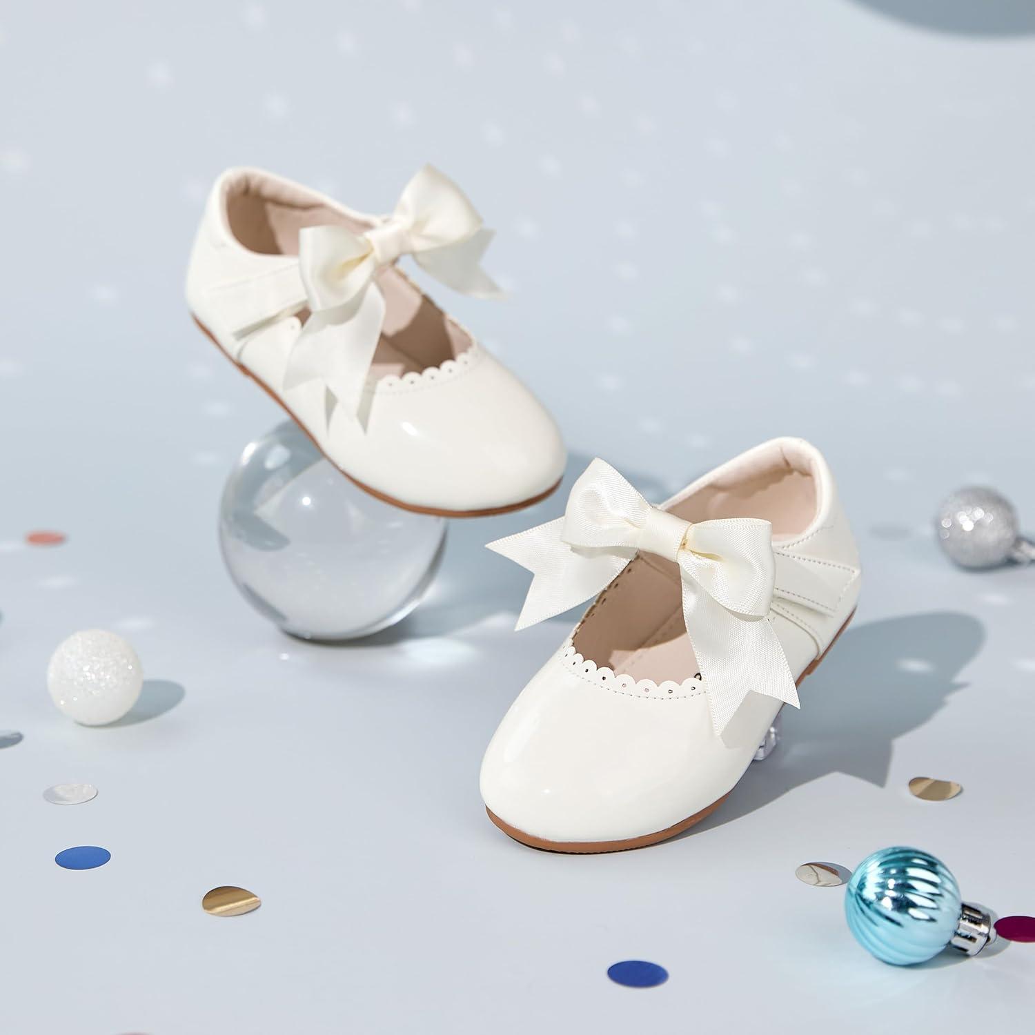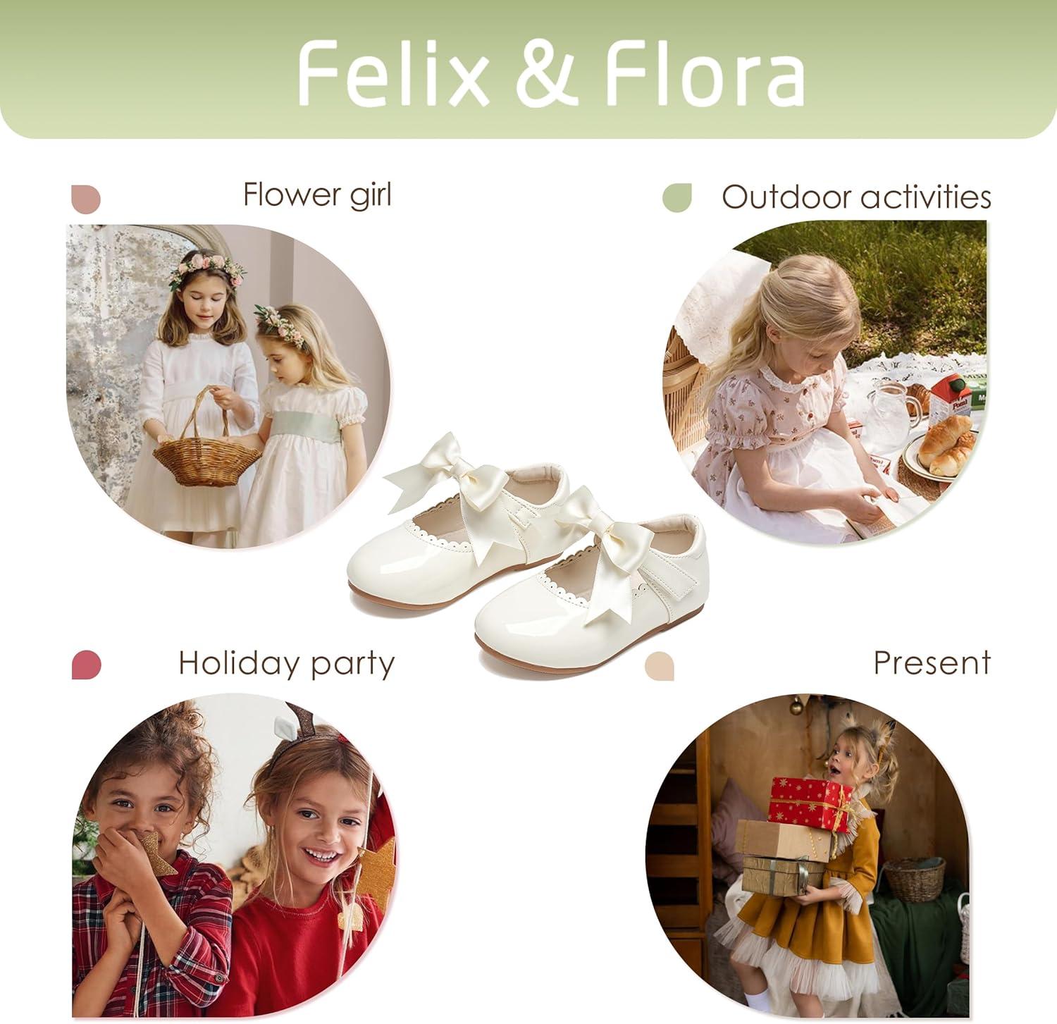 Felix & Flora Toddler Flower Girl Dress Shoes – Baby Girl Ballet Mary Jane Flats for Party School Wedding(B890-ivory White)