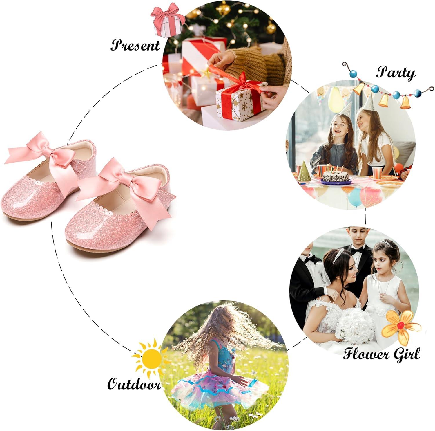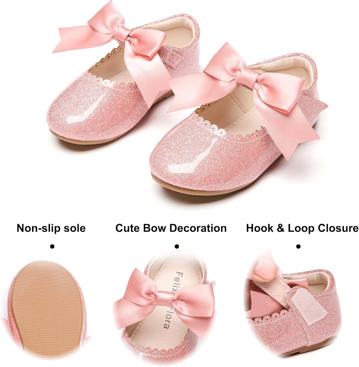 Felix & Flora Toddler Flower Girl Dress Shoes – Baby Girl Ballet Mary Jane Flats for Party School Wedding(B890-pink)