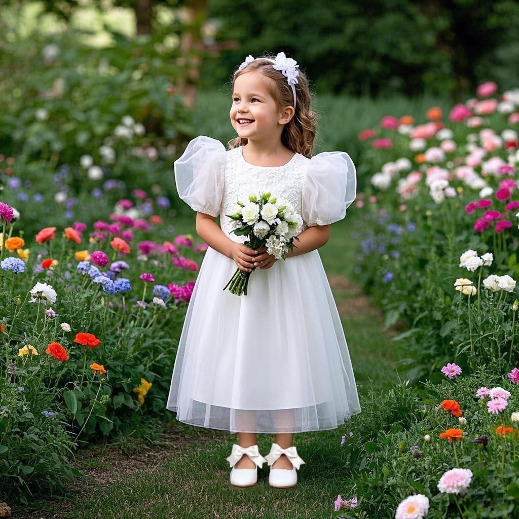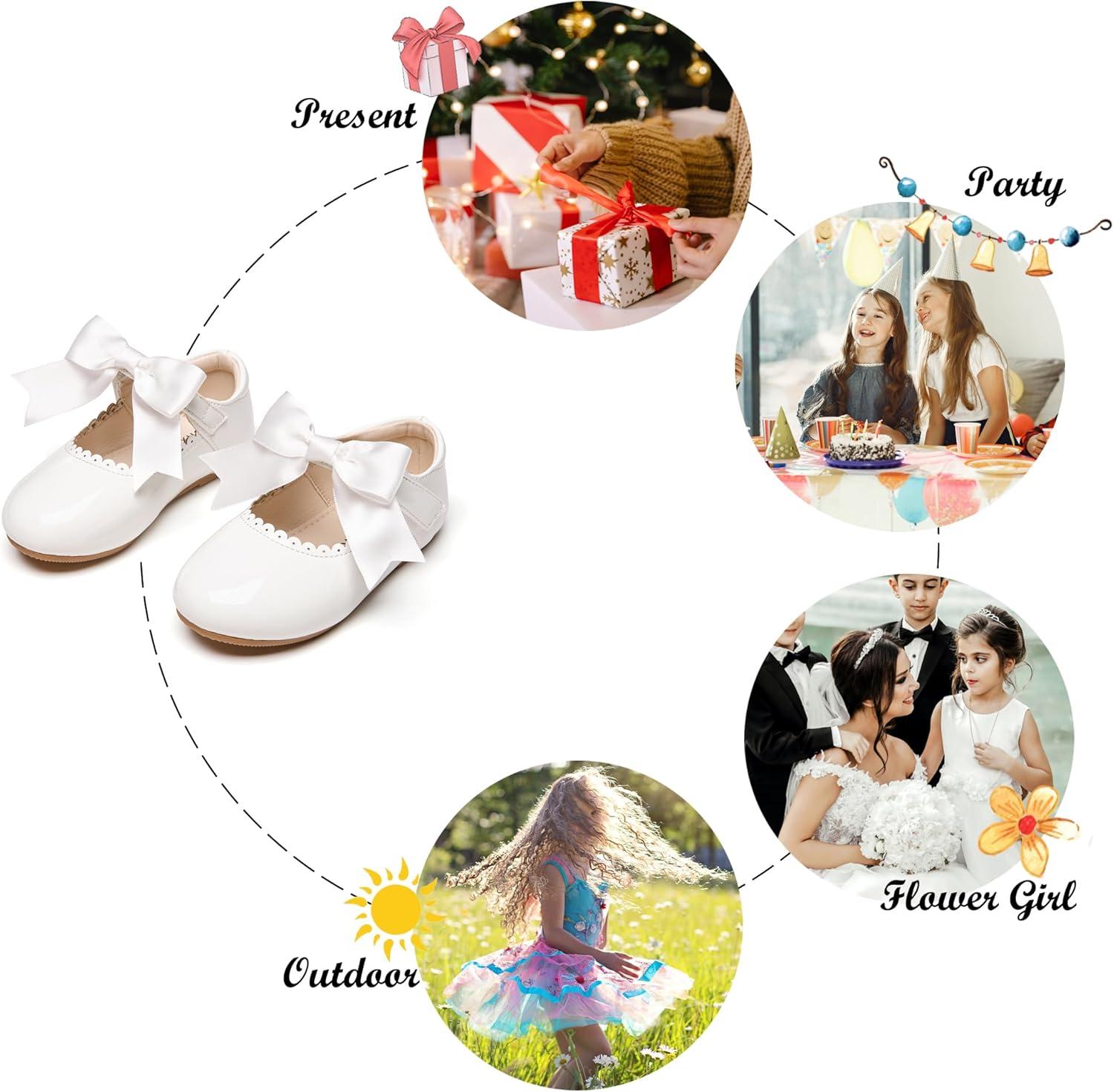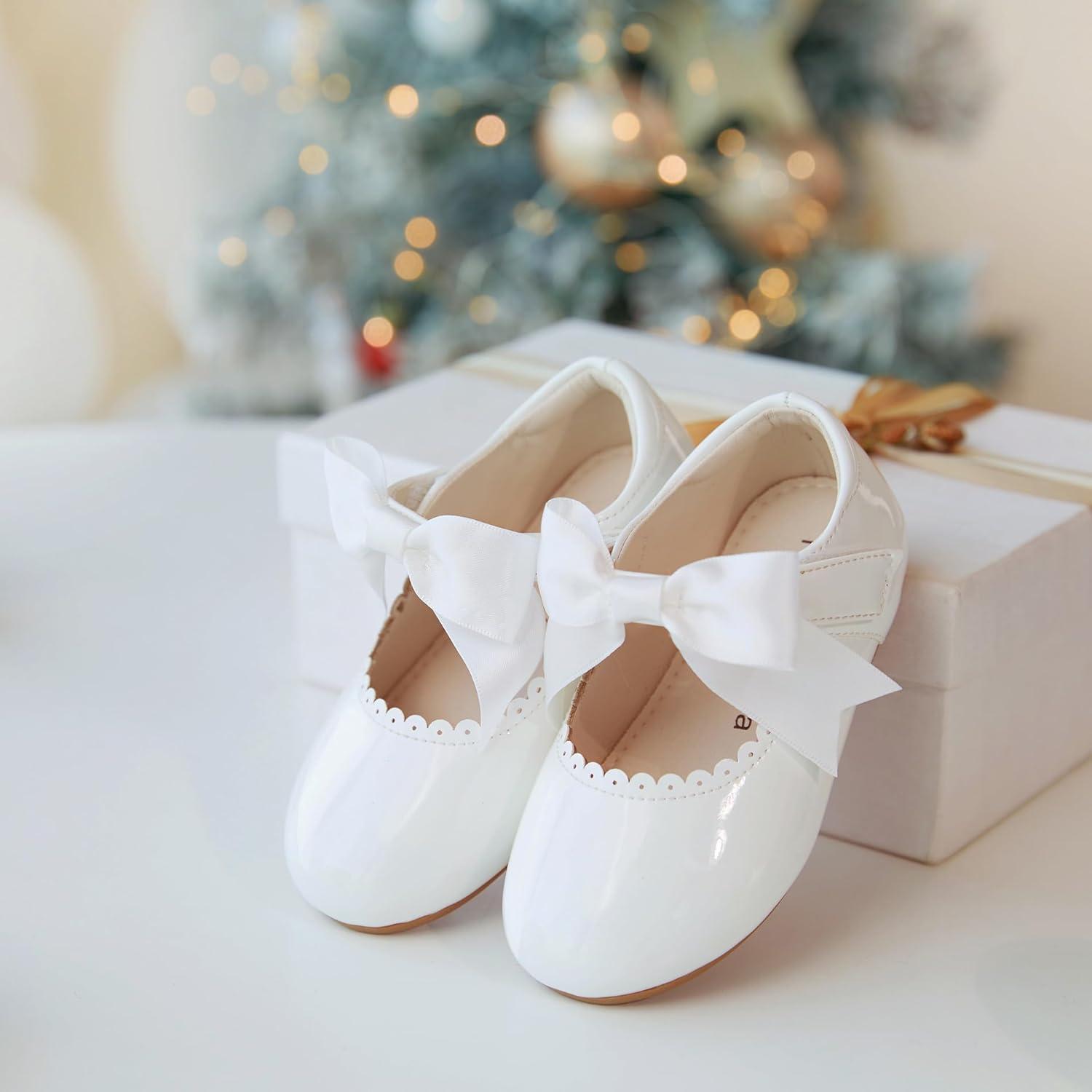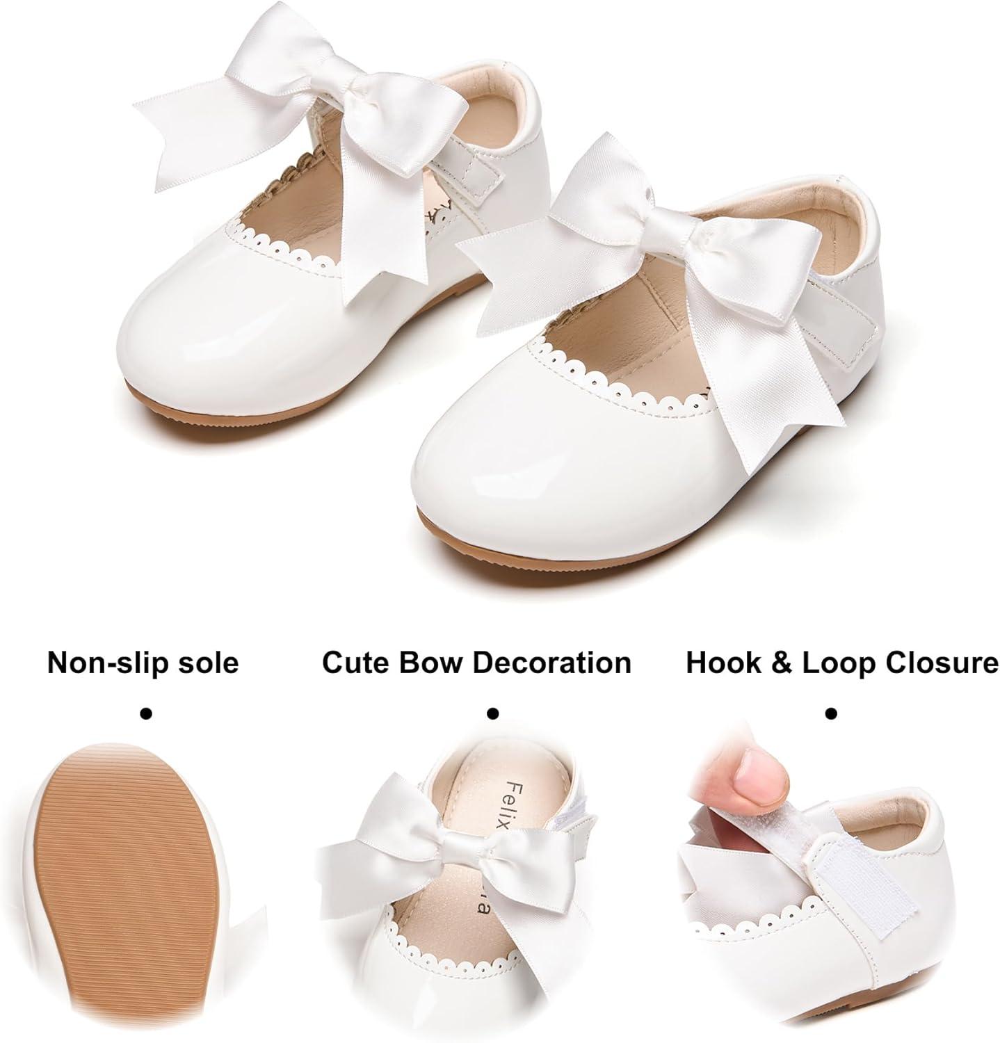 Felix & Flora Toddler Flower Girl Dress Shoes – Baby Girl Ballet Mary Jane Flats for Party School Wedding(B890-white)
