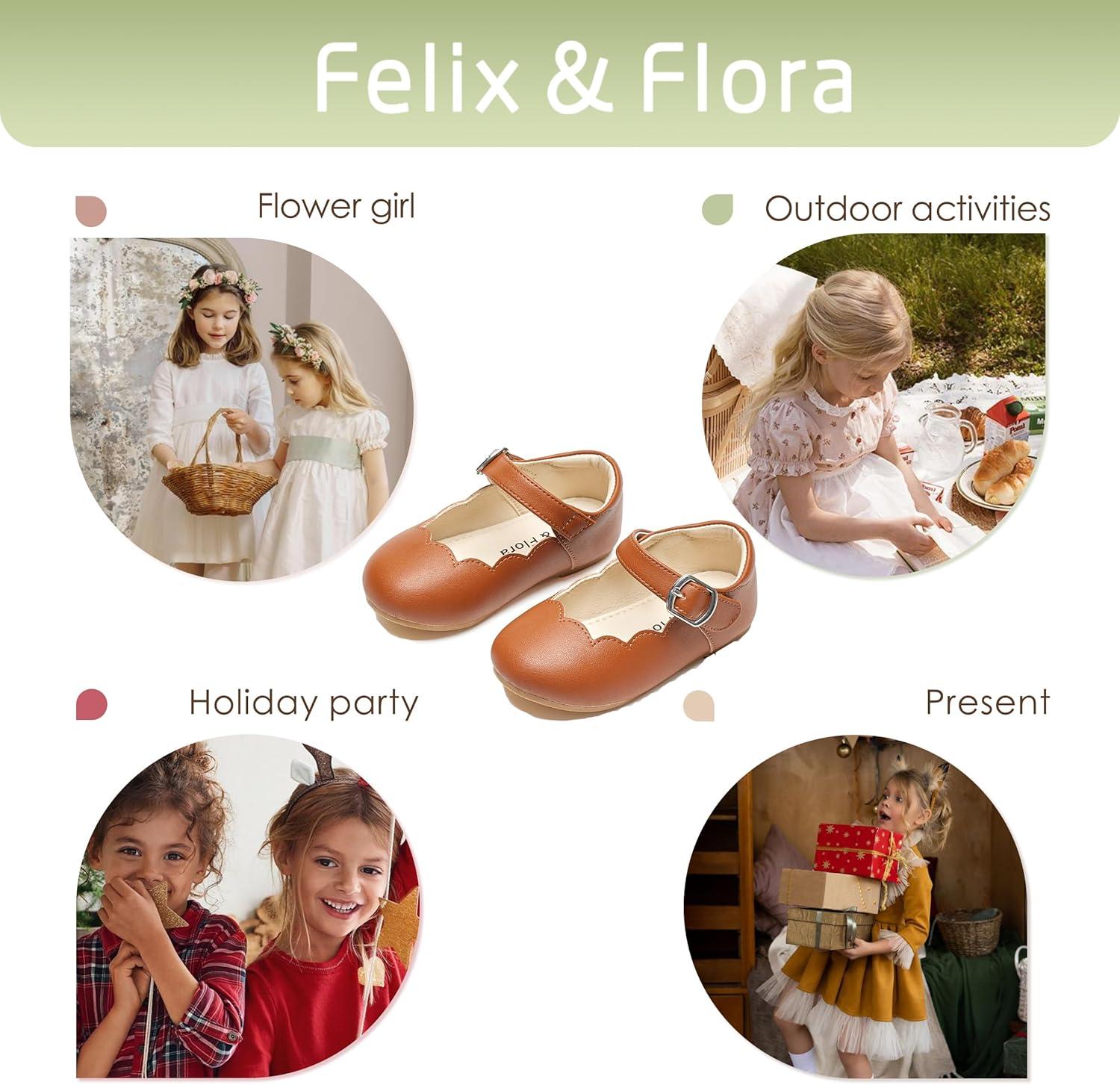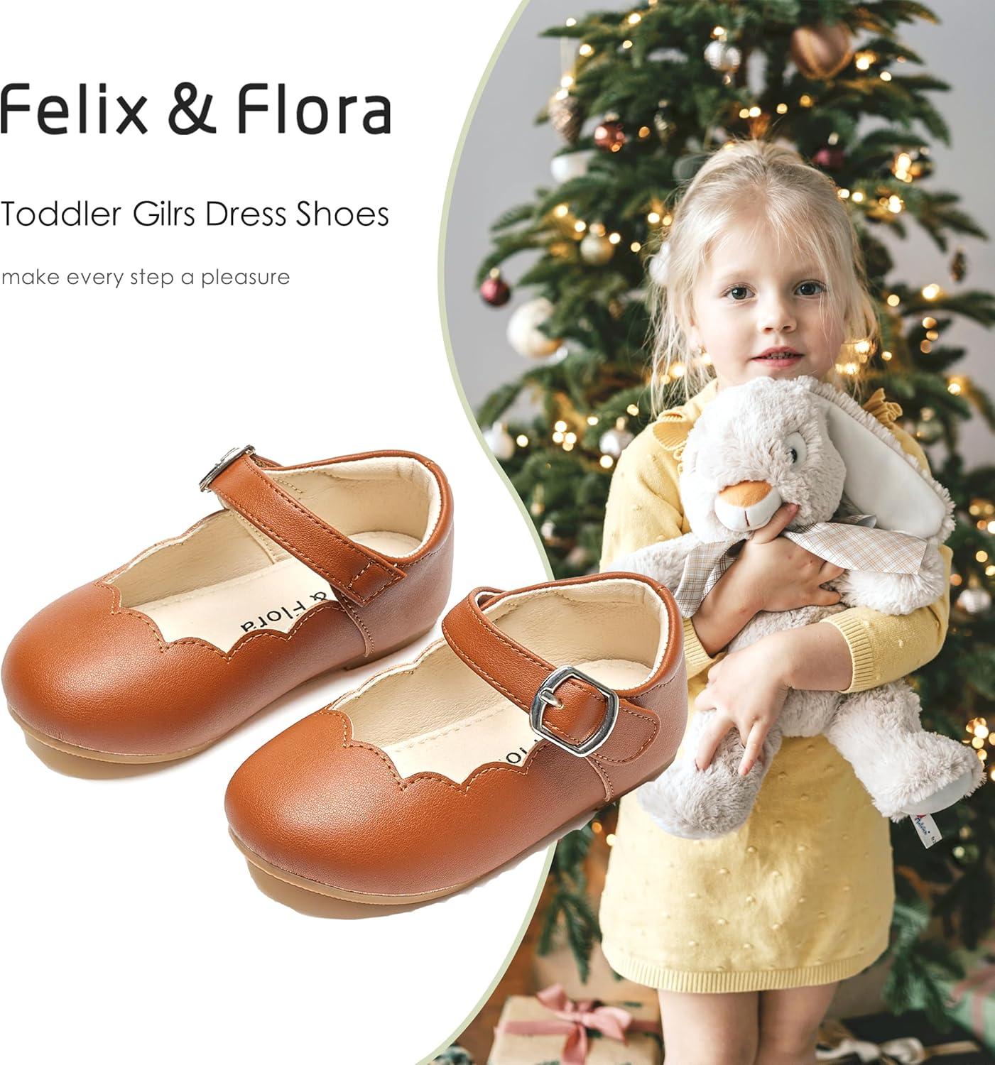Felix & Flora Toddler Flower Girl Dress Shoes – Baby Girl Ballet Mary Jane Flats for Party School Wedding(B902-brown)