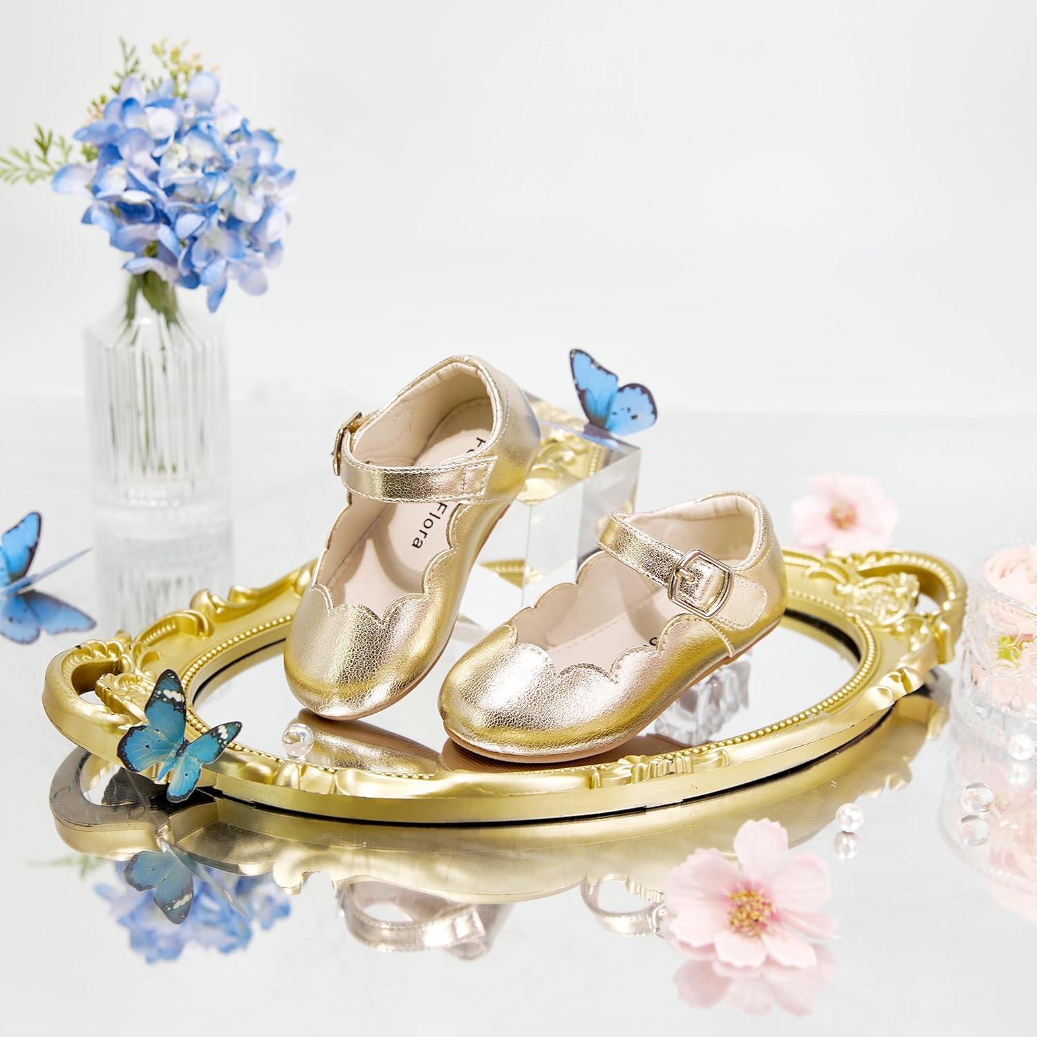 Felix & Flora Toddler Flower Girl Dress Shoes – Baby Girl Ballet Mary Jane Flats for Party School Wedding(B902-gold)