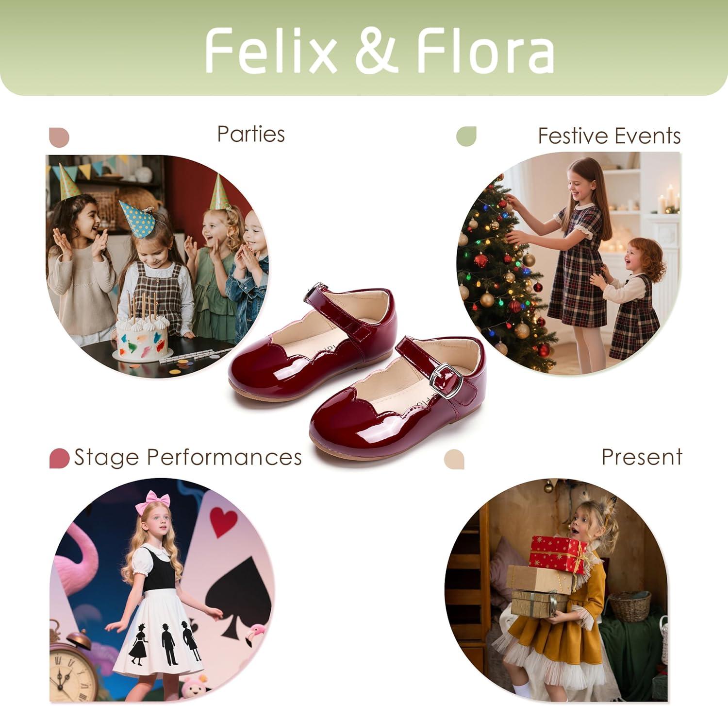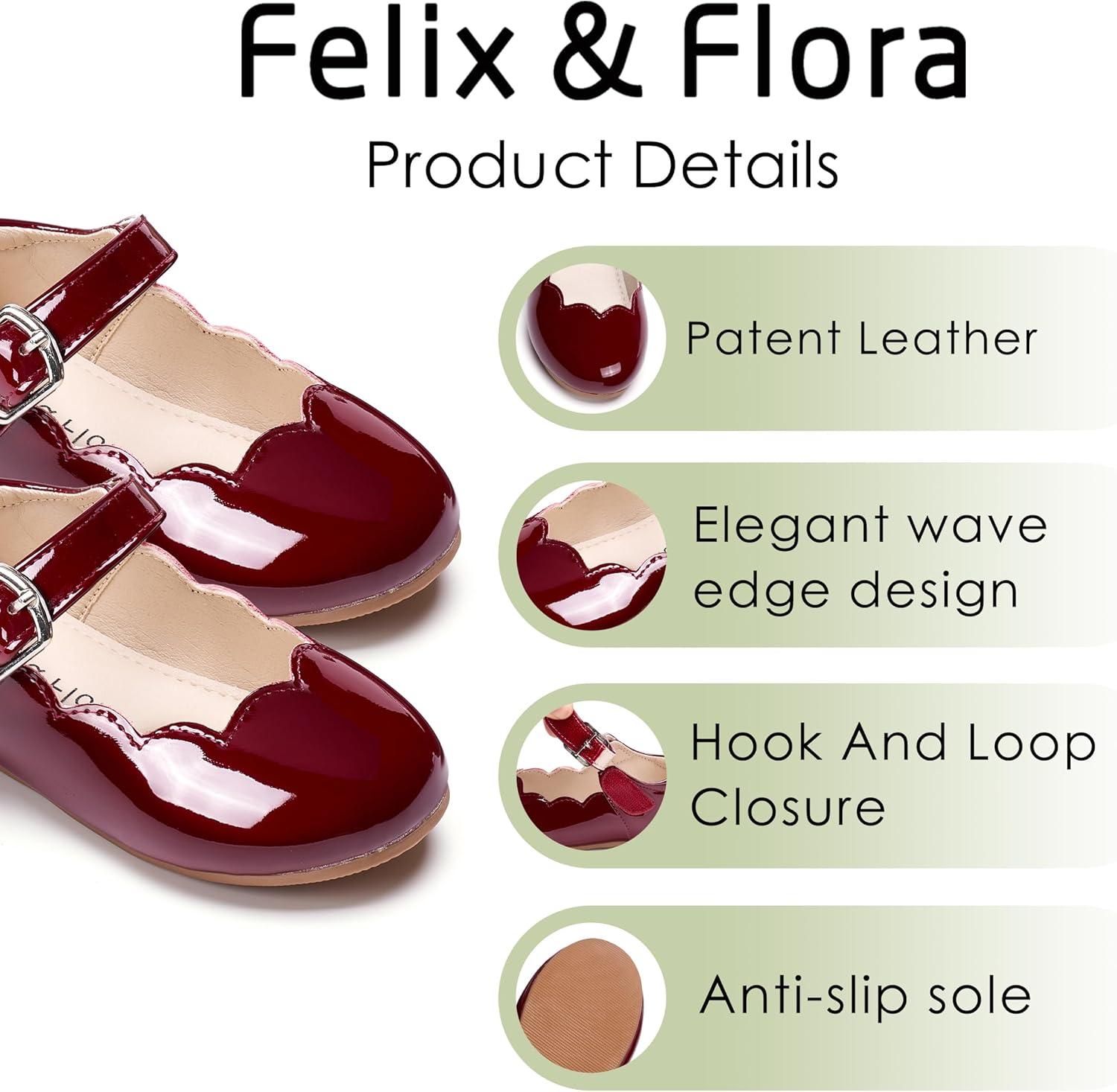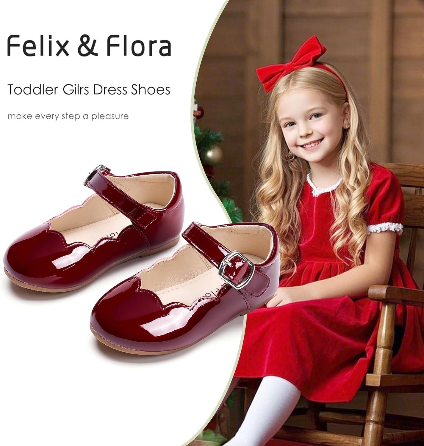 Felix & Flora Toddler Flower Girl Dress Shoes – Baby Girl Ballet Mary Jane Flats for Party School Wedding(B902-pl Burgundy)