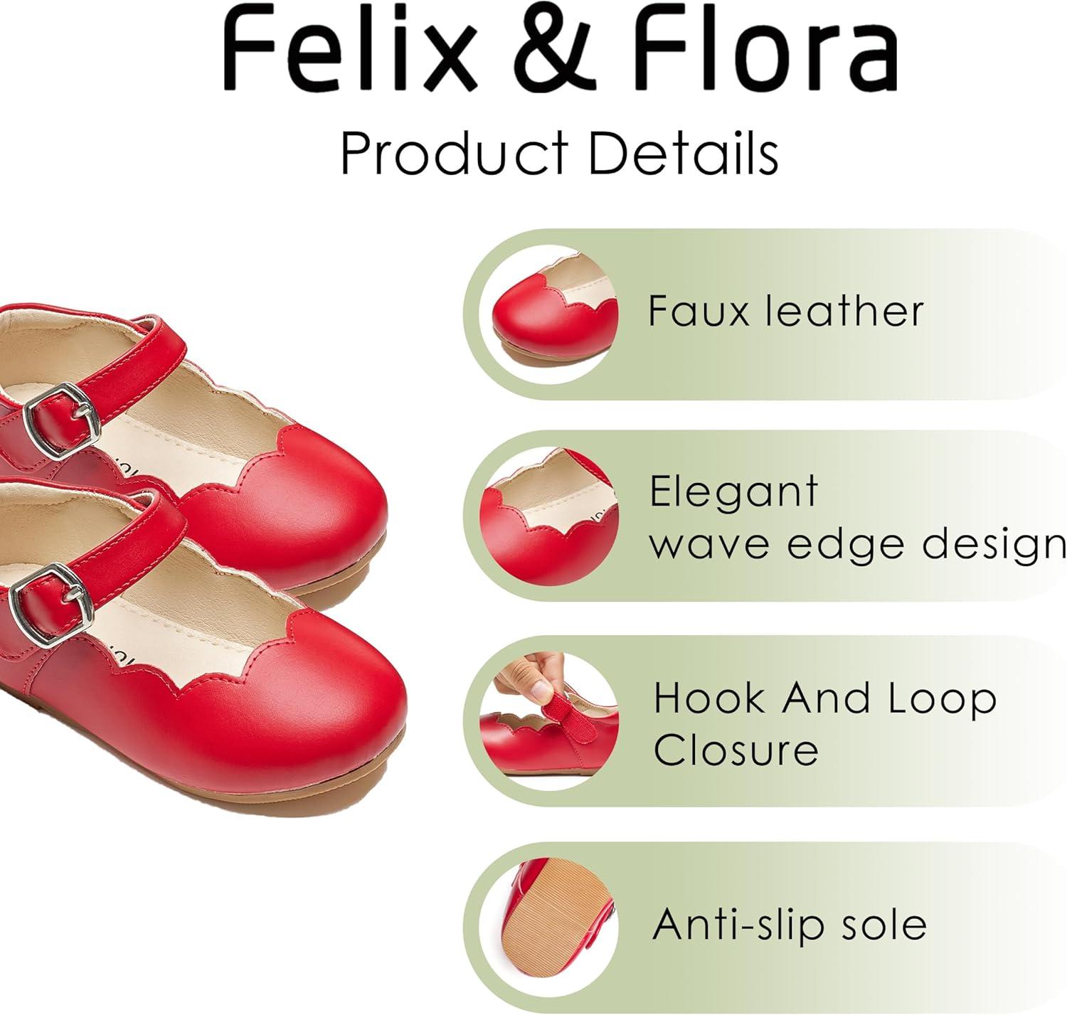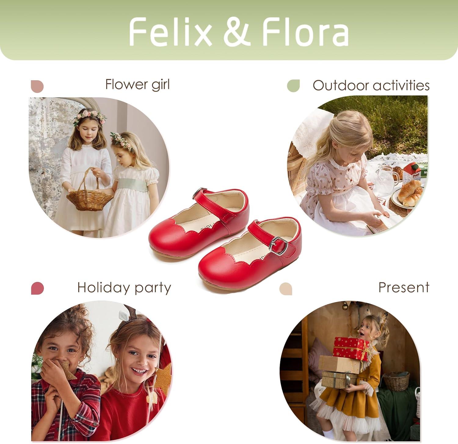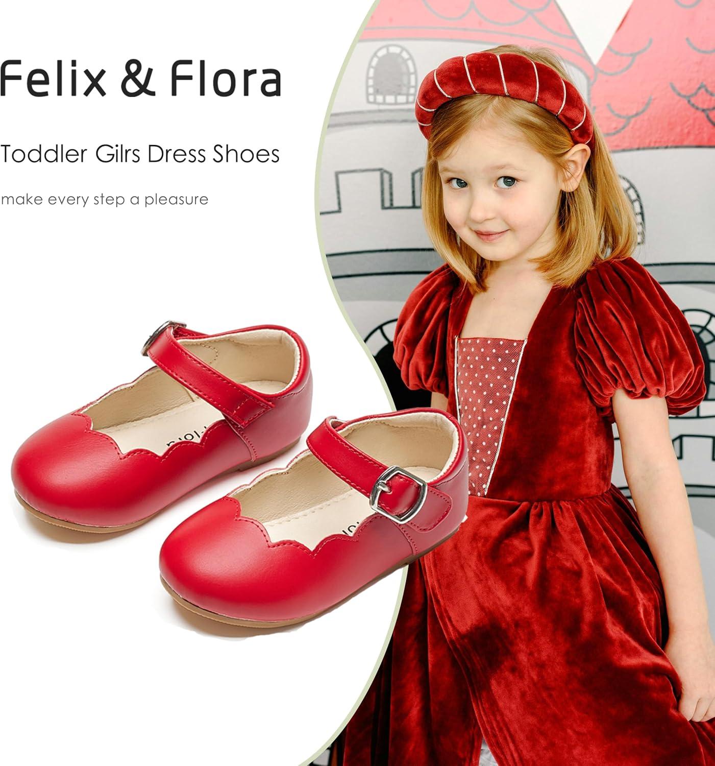 Felix & Flora Toddler Flower Girl Dress Shoes – Baby Girl Ballet Mary Jane Flats for Party School Wedding(B902-red)