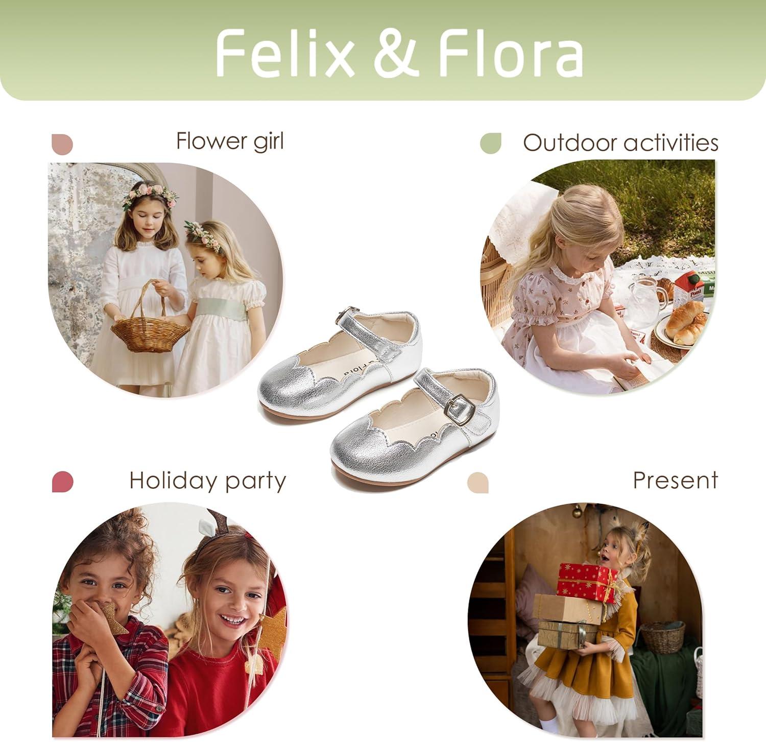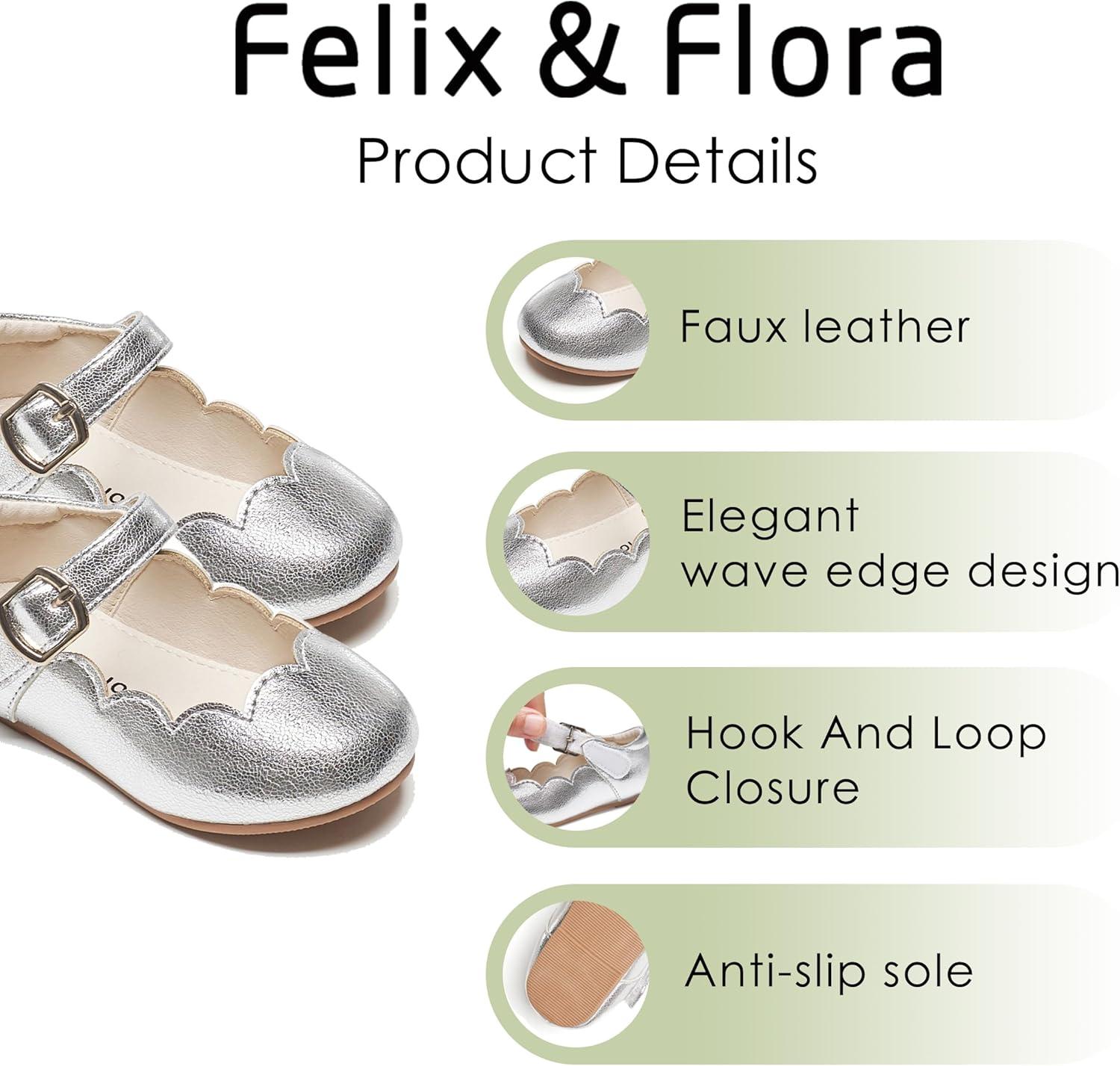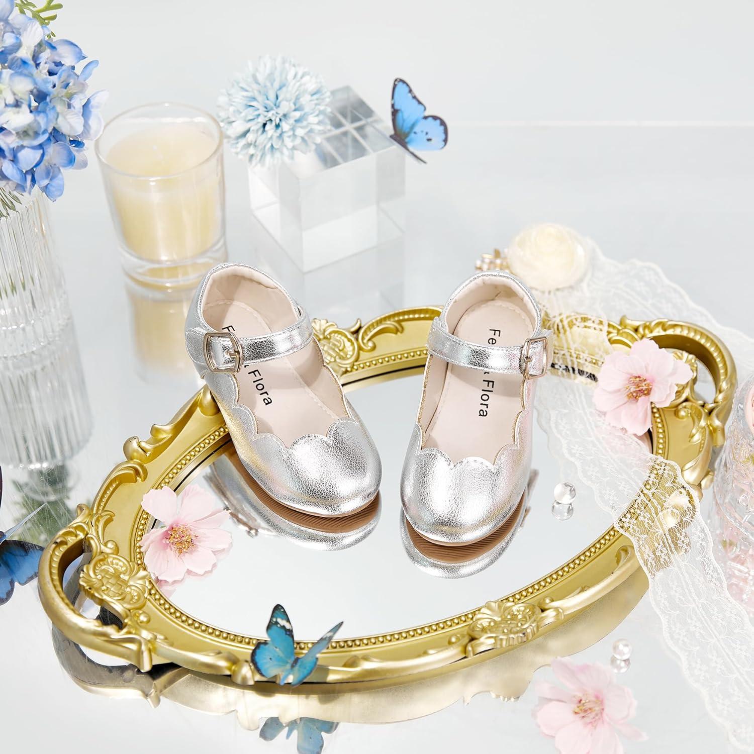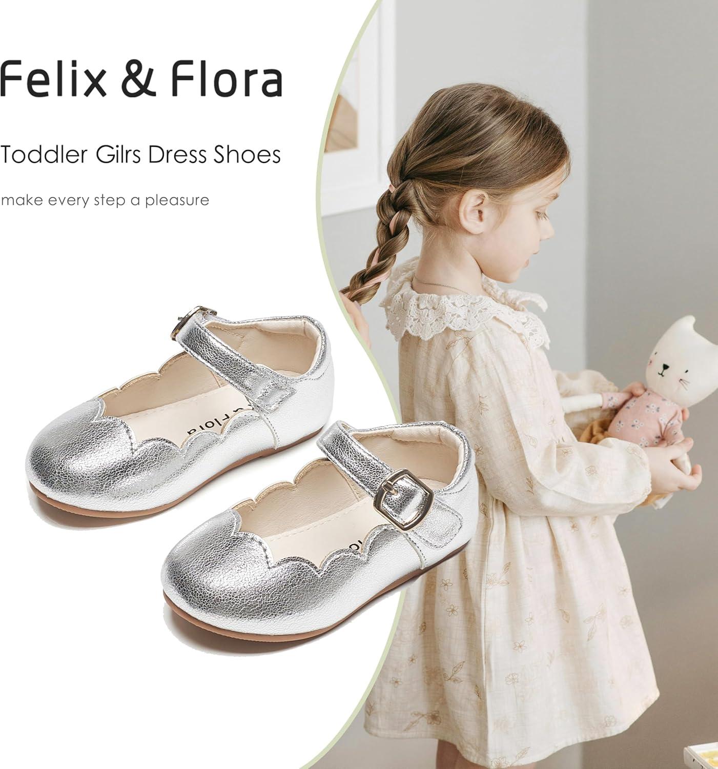 Felix & Flora Toddler Flower Girl Dress Shoes – Baby Girl Ballet Mary Jane Flats for Party School Wedding(B902-silver)