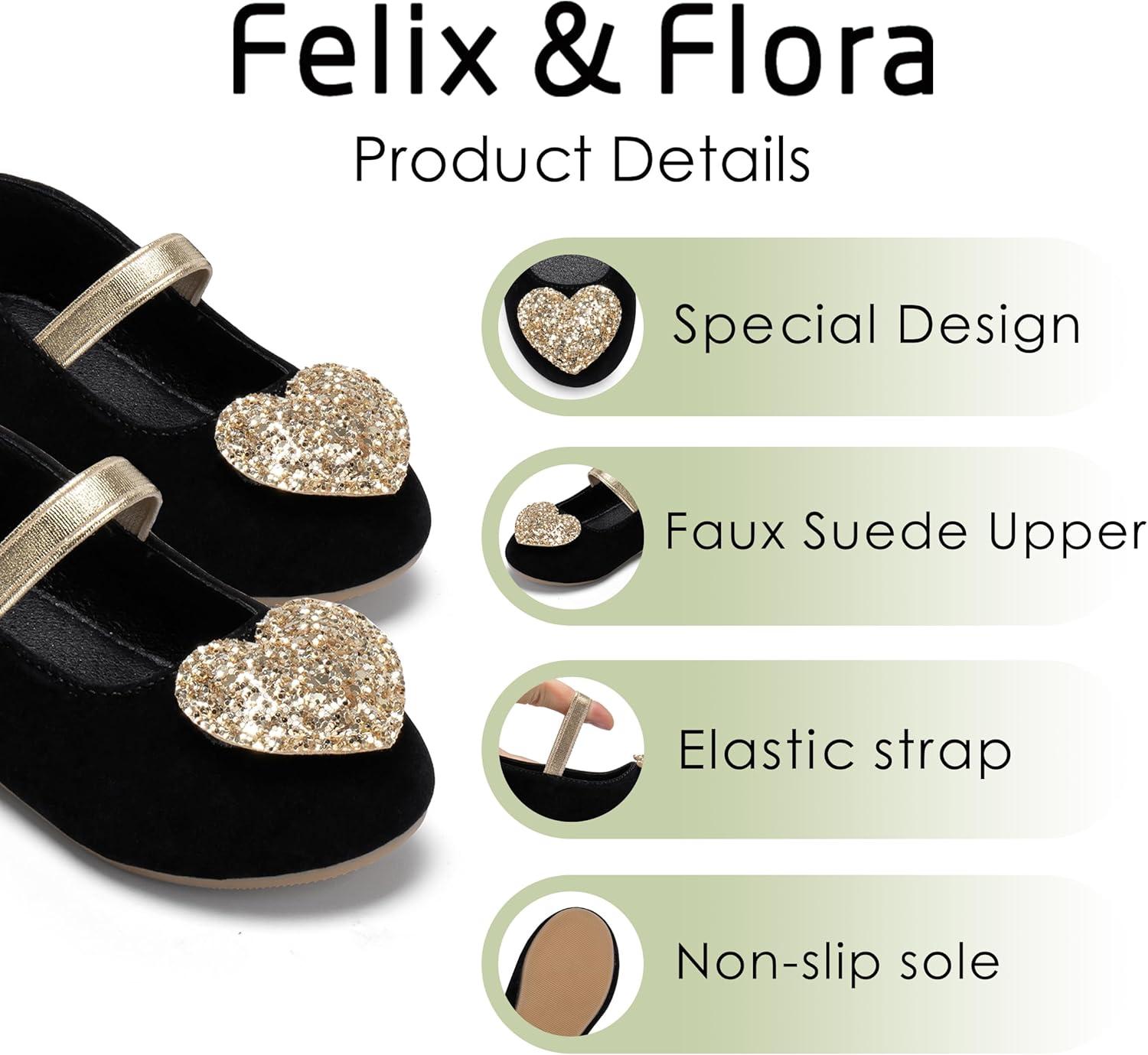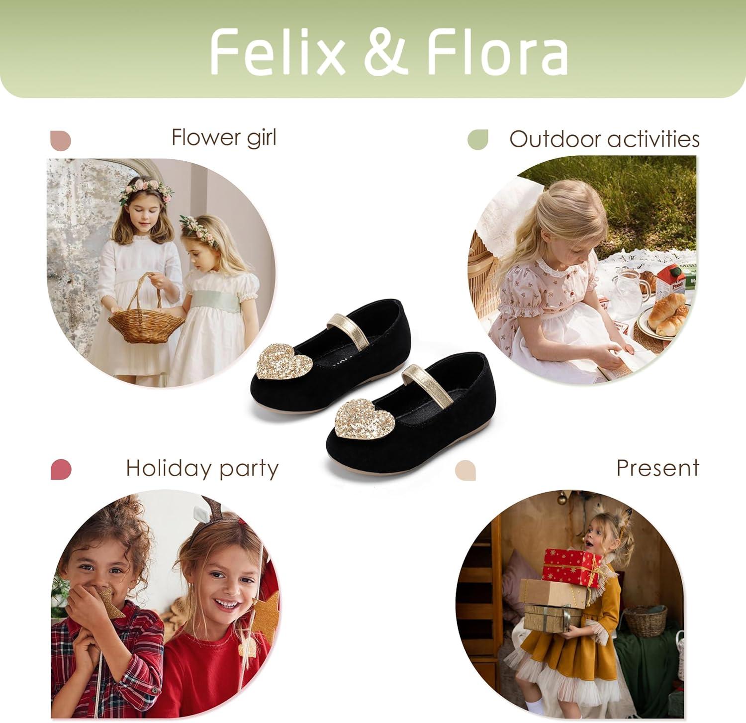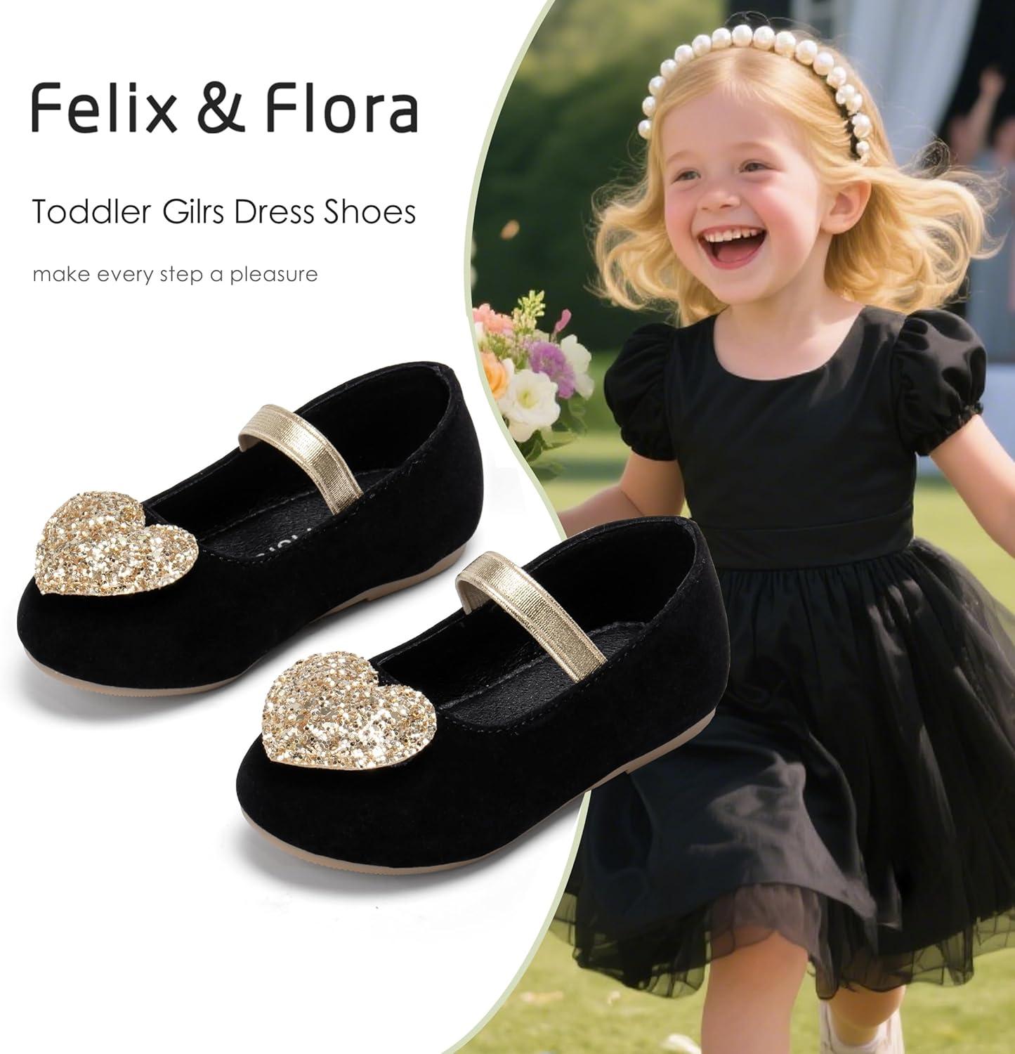 Felix & Flora Toddler Flower Girl Dress Shoes – Baby Girl Ballet Mary Jane Flats for Party School Wedding(Bf12-black)