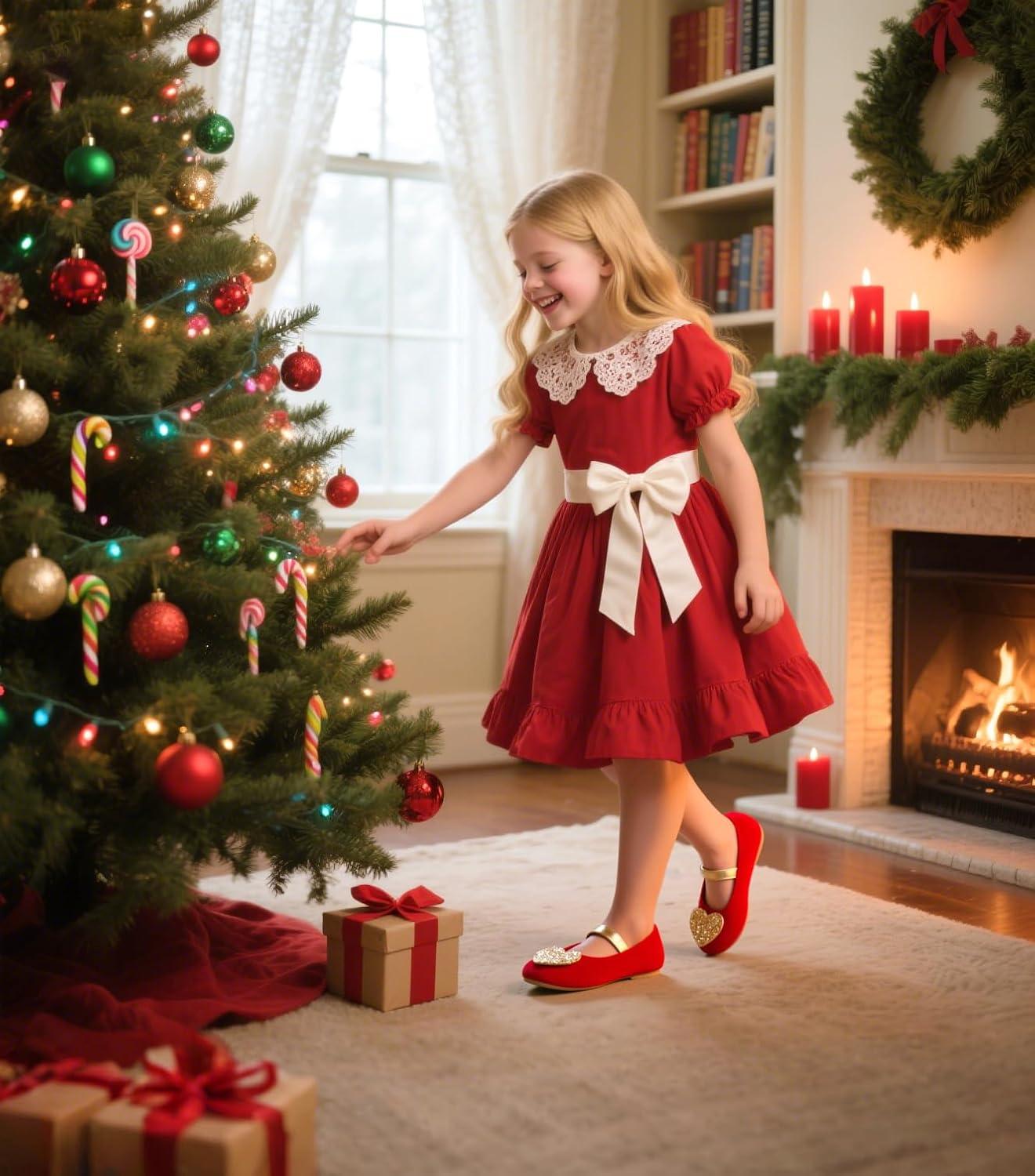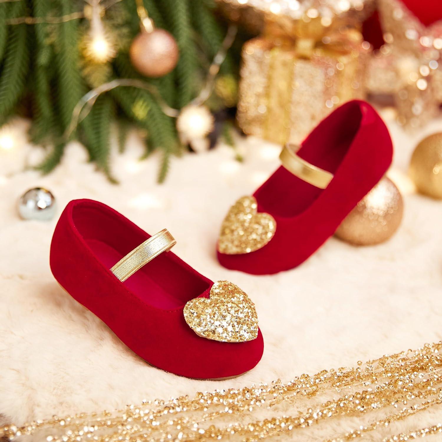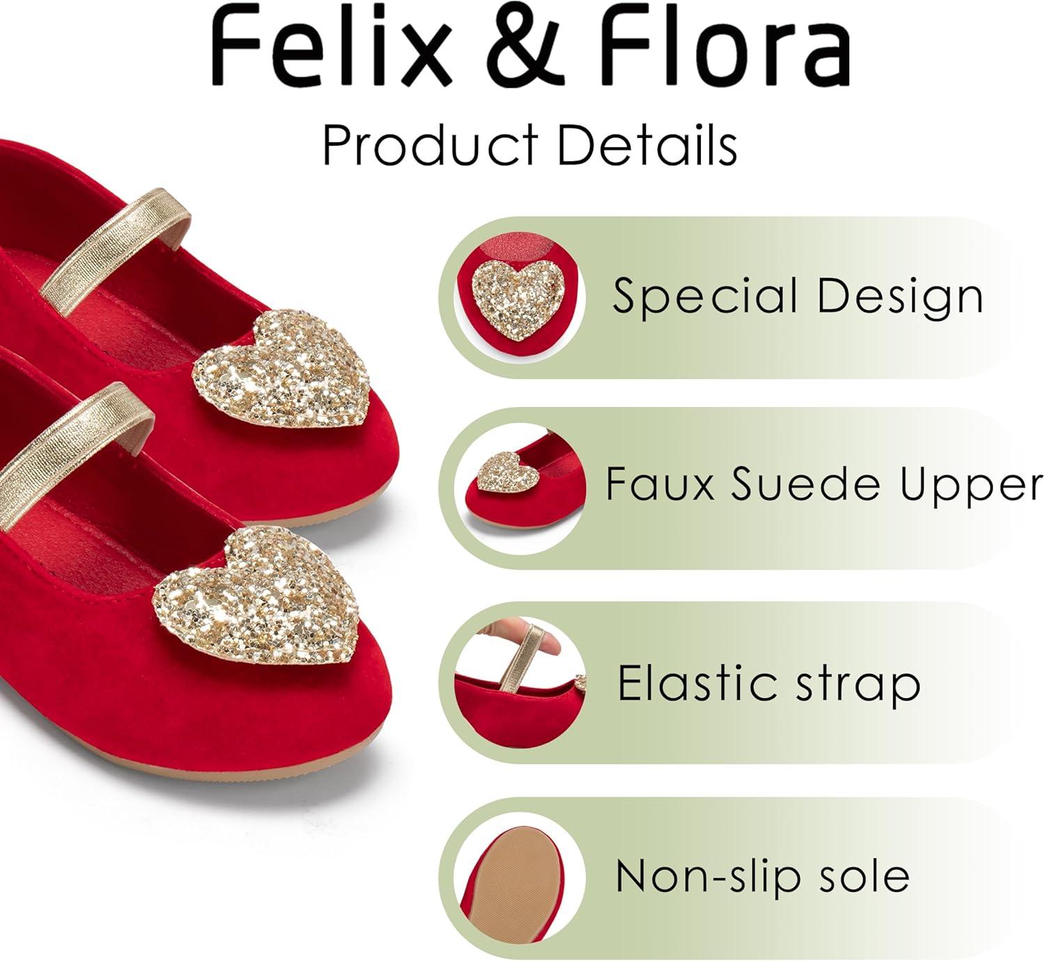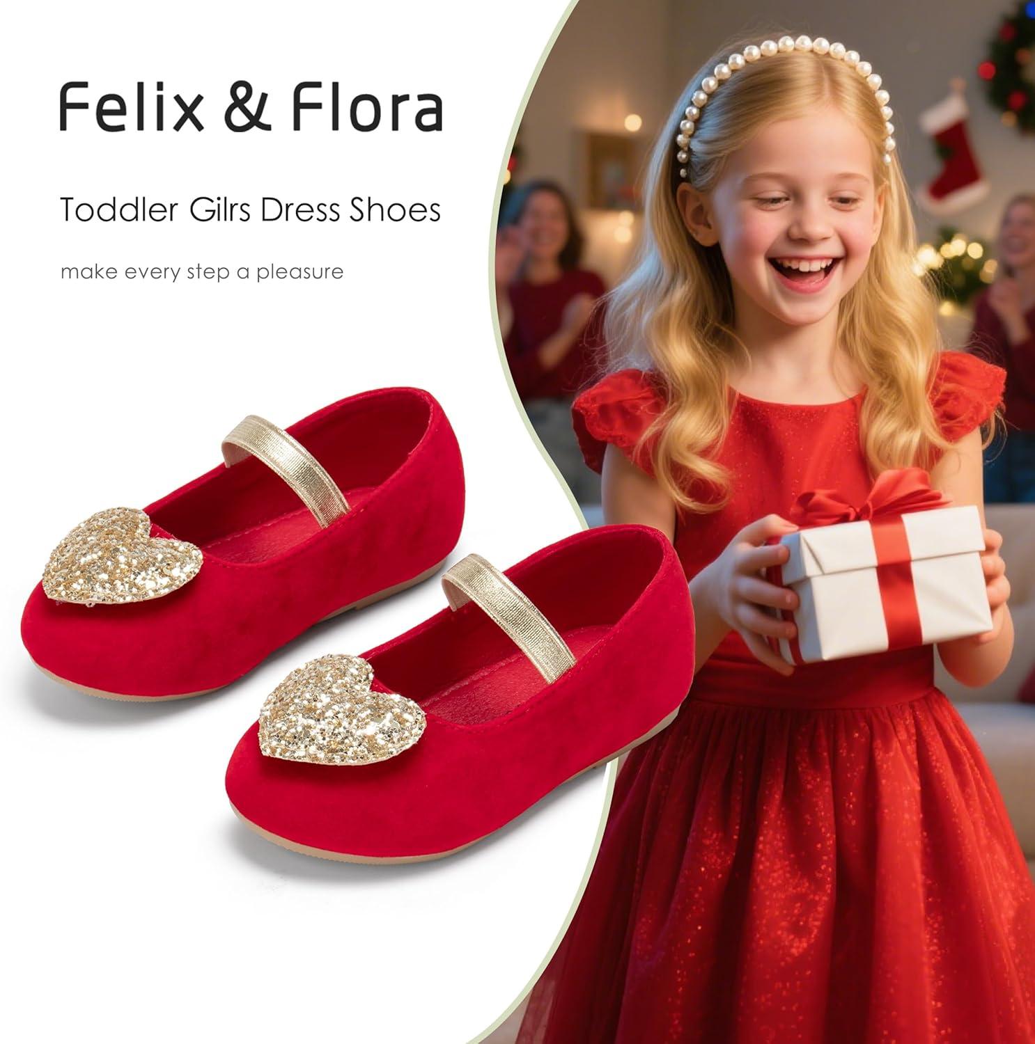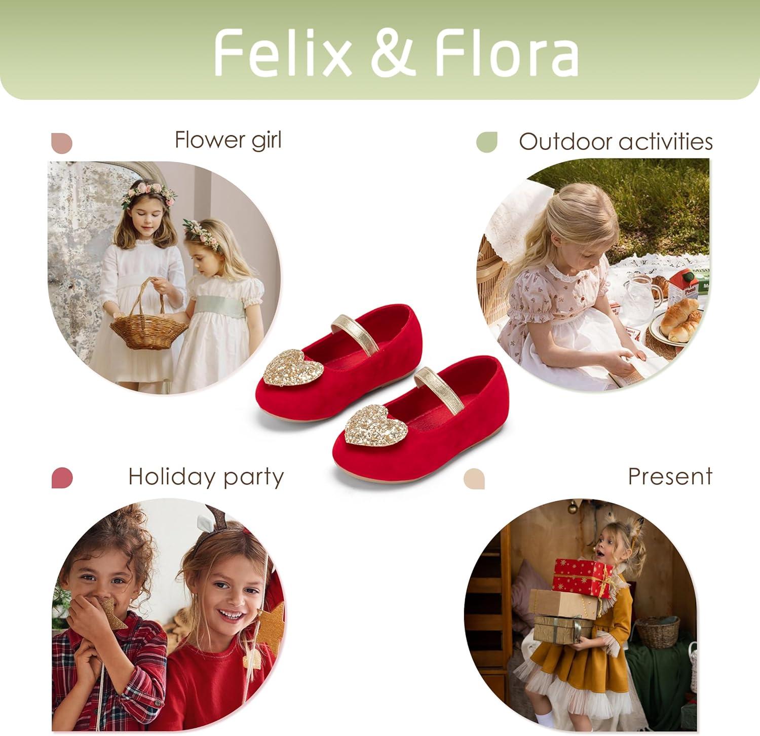 Felix & Flora Toddler Flower Girl Dress Shoes – Baby Girl Ballet Mary Jane Flats for Party School Wedding(Bf12-red)