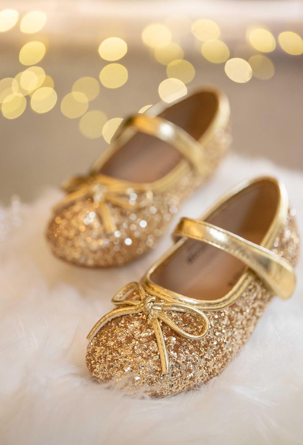 Felix & Flora Toddler Flower Girl Dress Shoes – Girl Ballet Flats Party School Shoes Wedding(B802-glitter Gold)