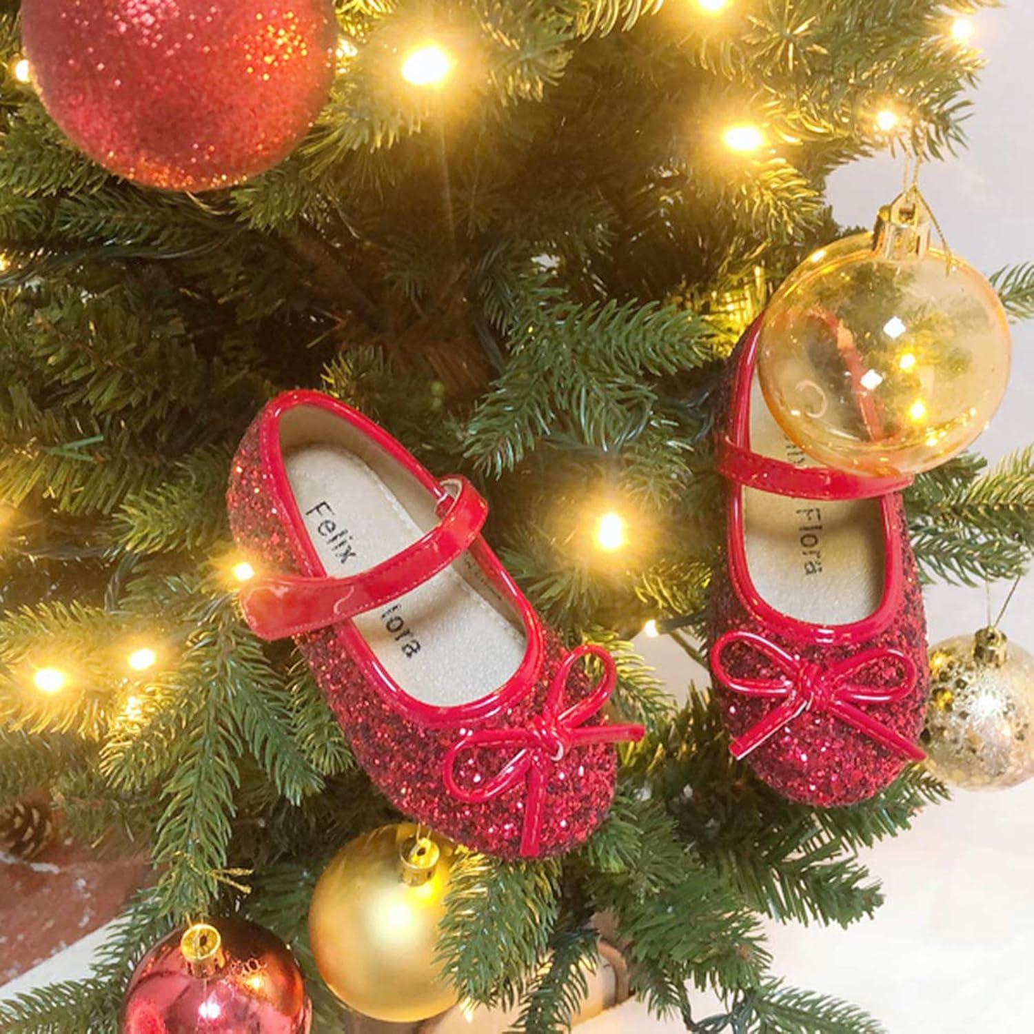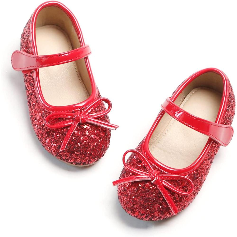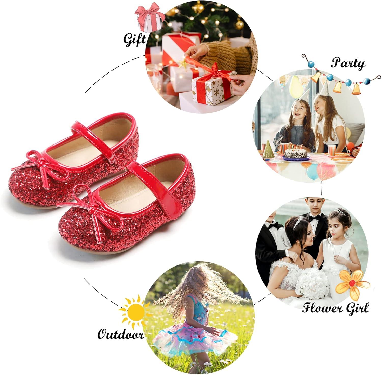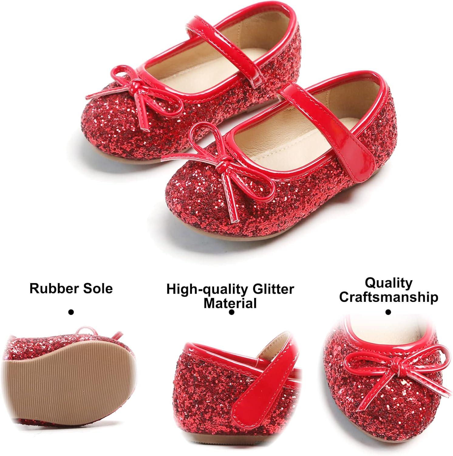 Felix & Flora Toddler Flower Girl Dress Shoes – Girl Ballet Flats Party School Shoes Wedding(B802-glitter Red)