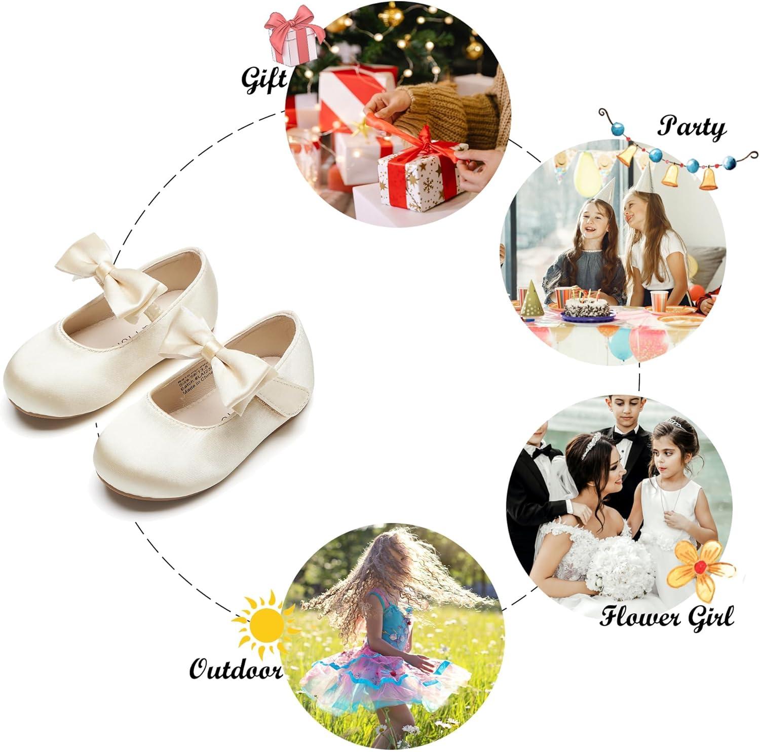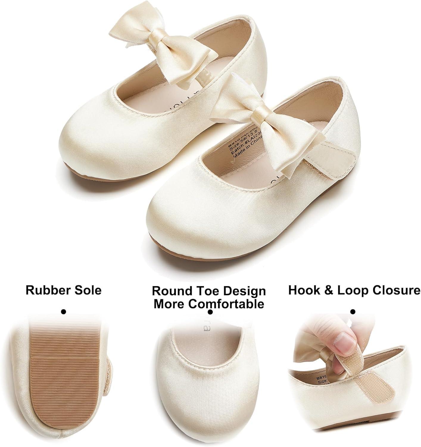 Felix & Flora Toddler Flower Girl Dress Shoes – Girl Ballet Flats Party School Shoes Wedding(B816-champagne Gold)