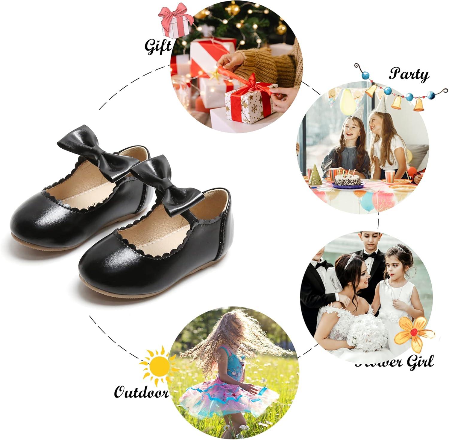 Felix & Flora Toddler Flower Girl Dress Shoes – Girl Ballet Flats Party School Shoes Wedding(B838-black)