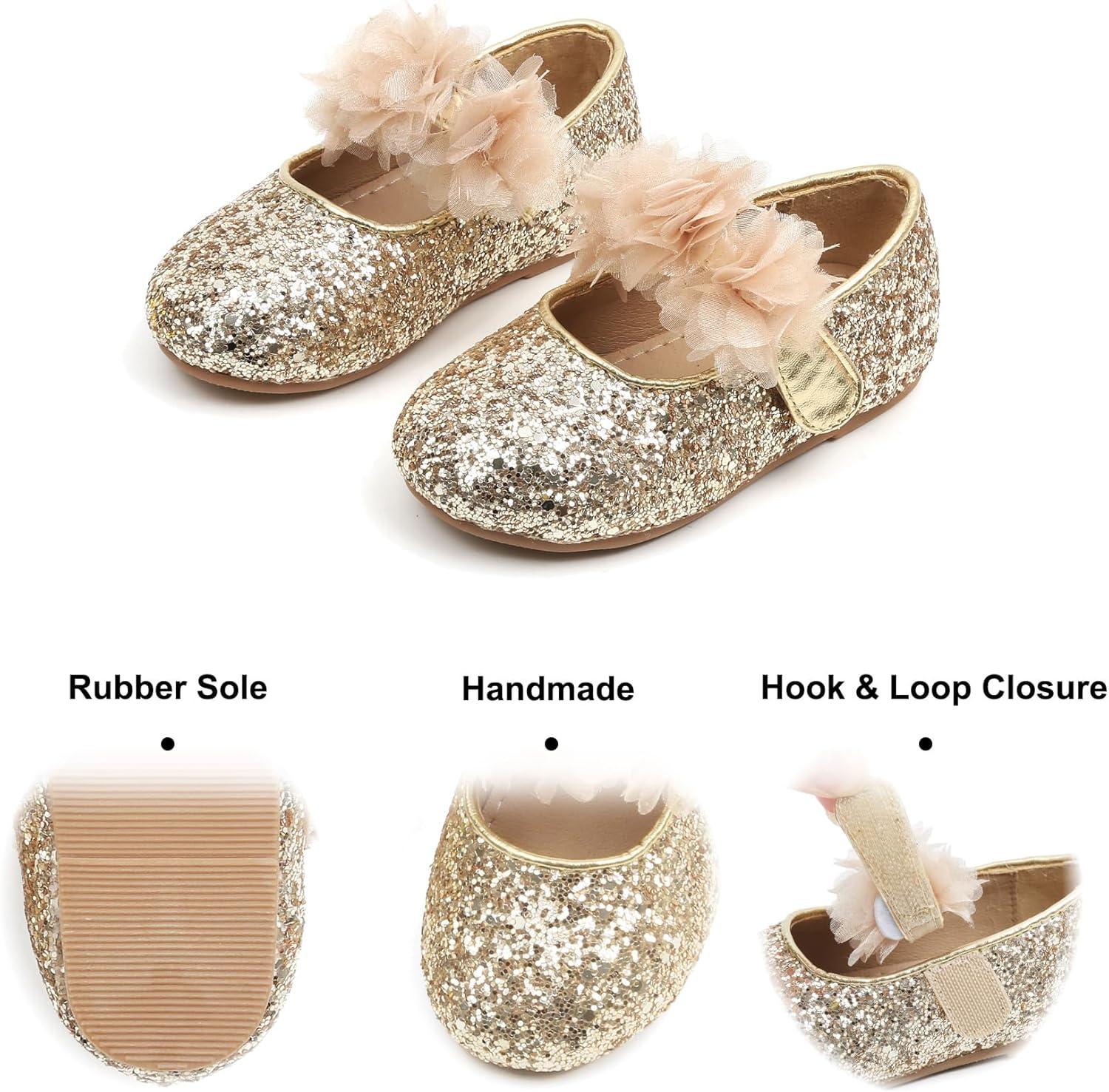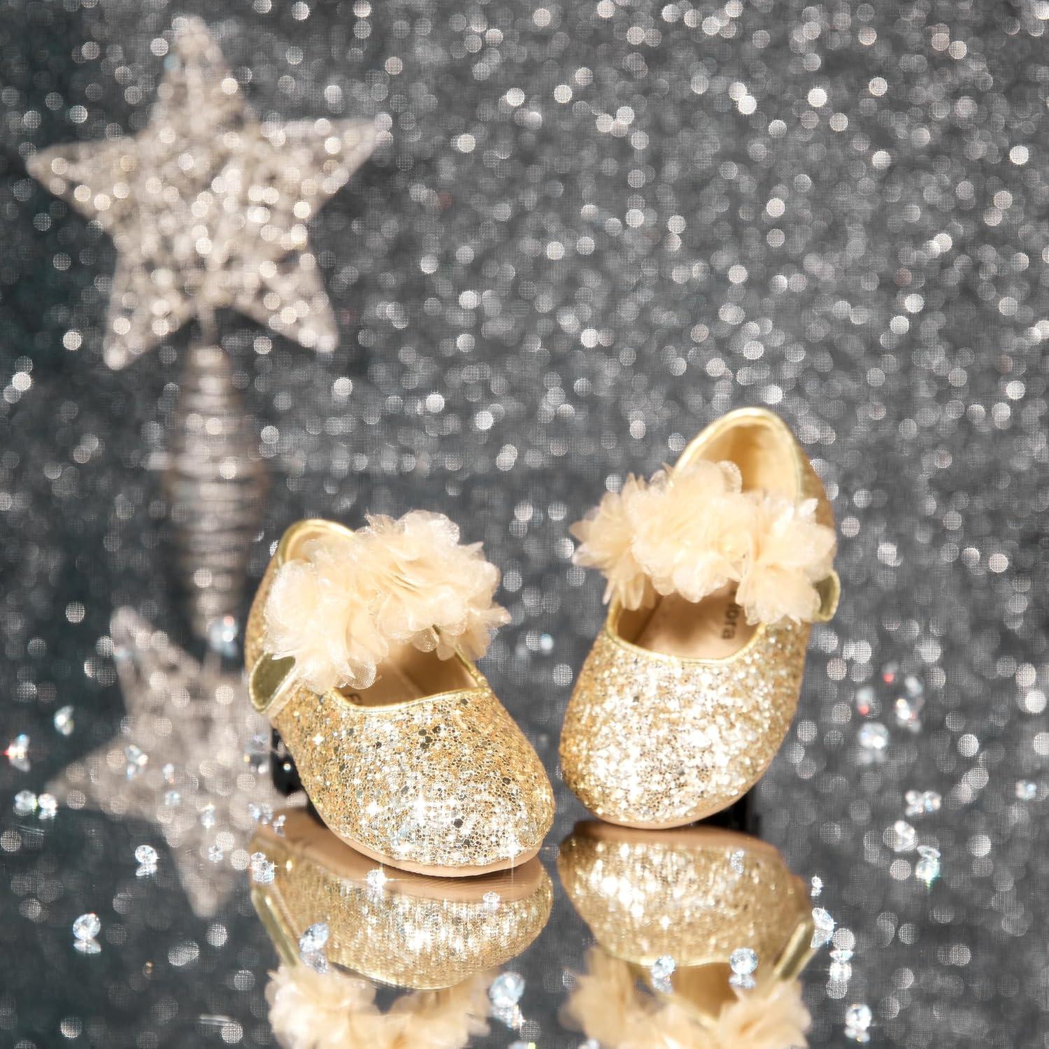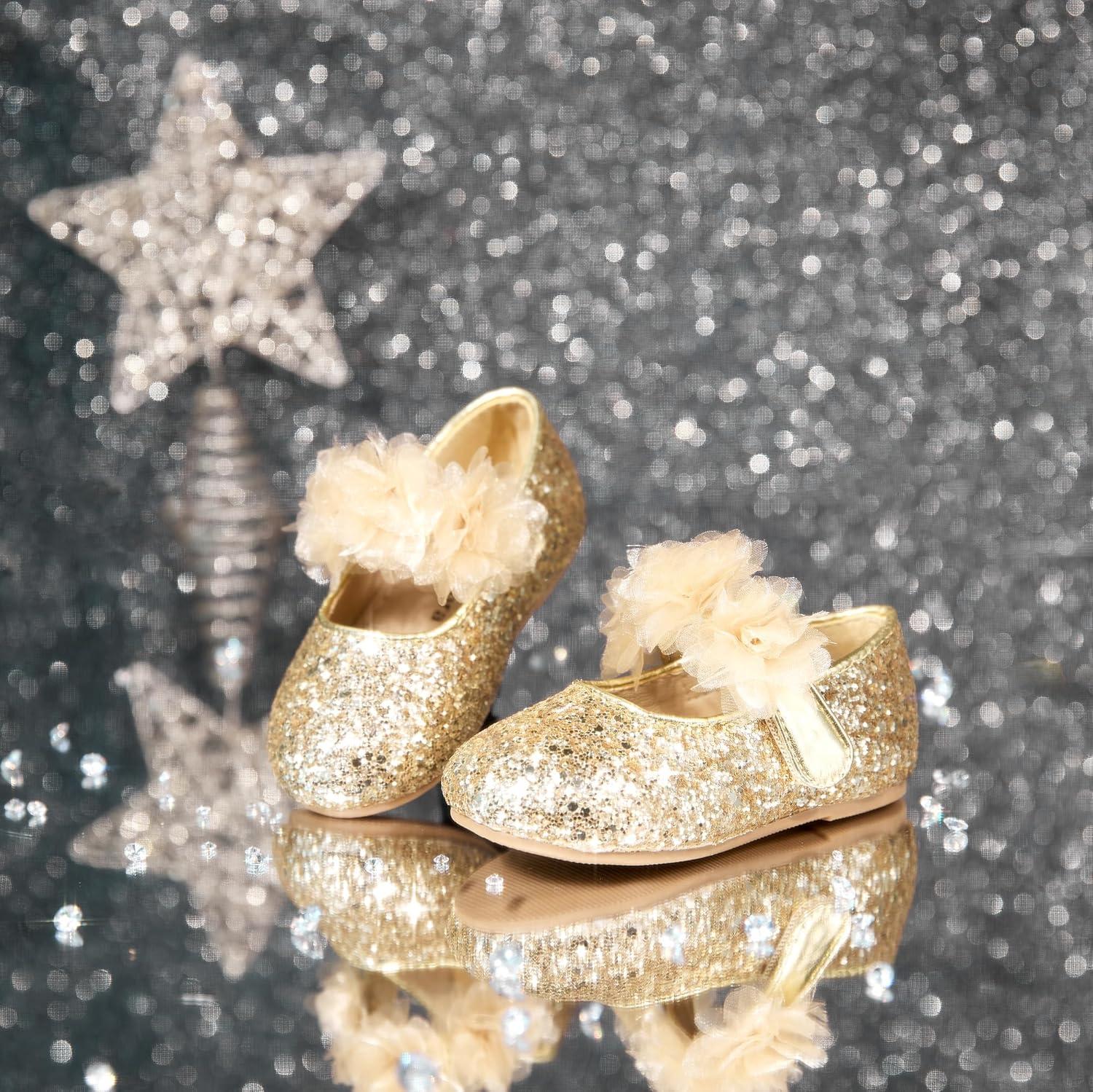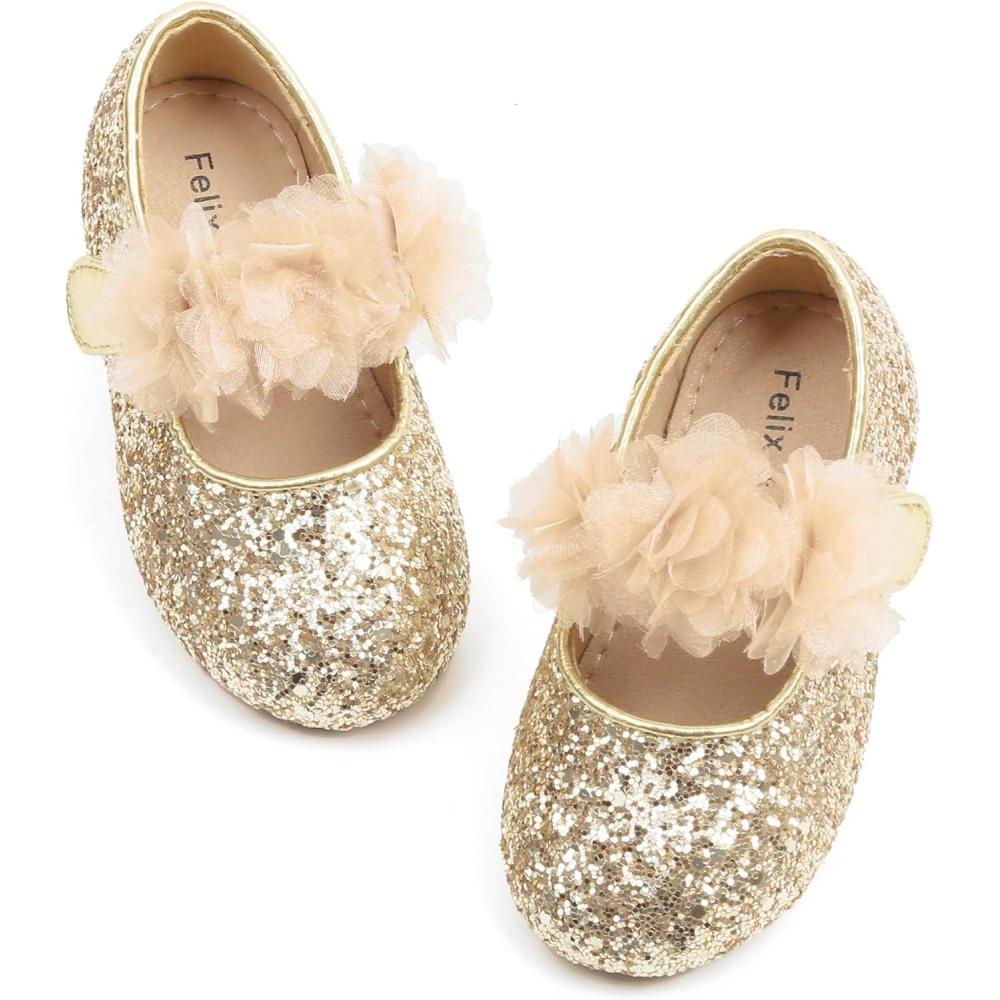 Felix & Flora Toddler Flower Girl Dress Shoes – Girl Ballet Flats Party School Shoes Wedding(B868-gold)