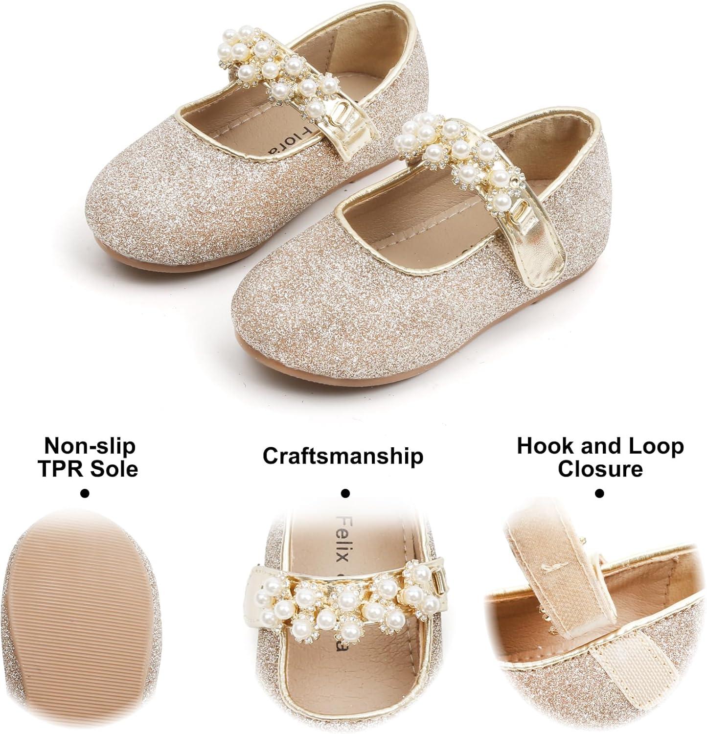 Felix & Flora Toddler Flower Girl Dress Shoes – Girl Ballet Flats Party School Shoes Wedding(B873-glitter Gold)