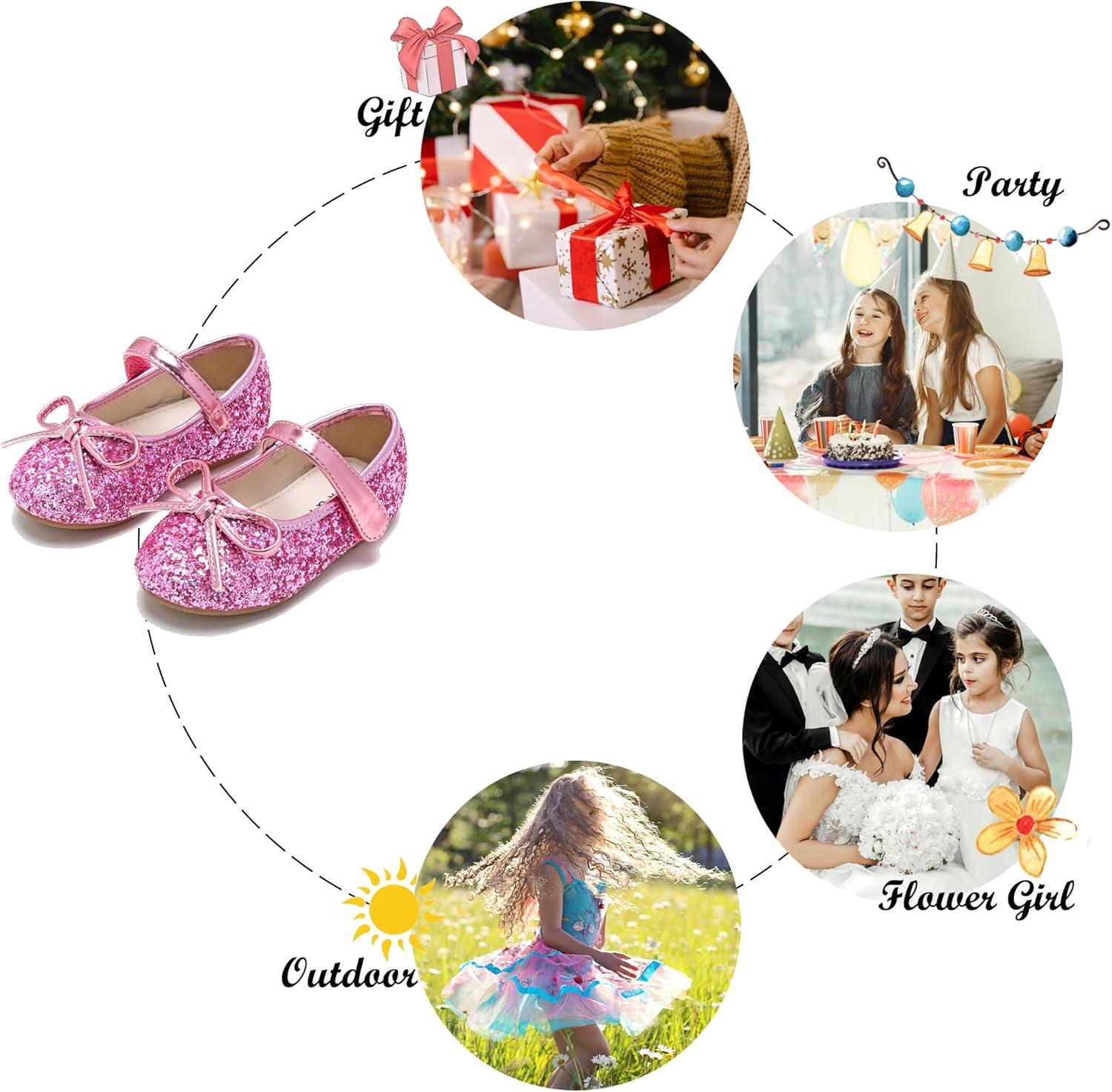 Felix & Flora Toddler Flower Girl Dress Shoes – Girl Ballet Flats Party School Shoes Wedding(Glitter Pink)