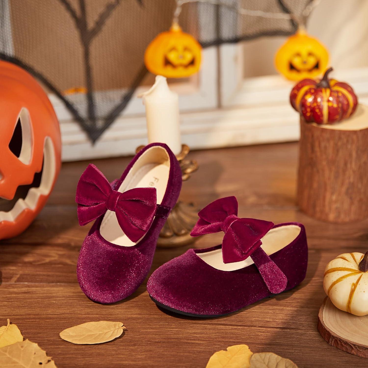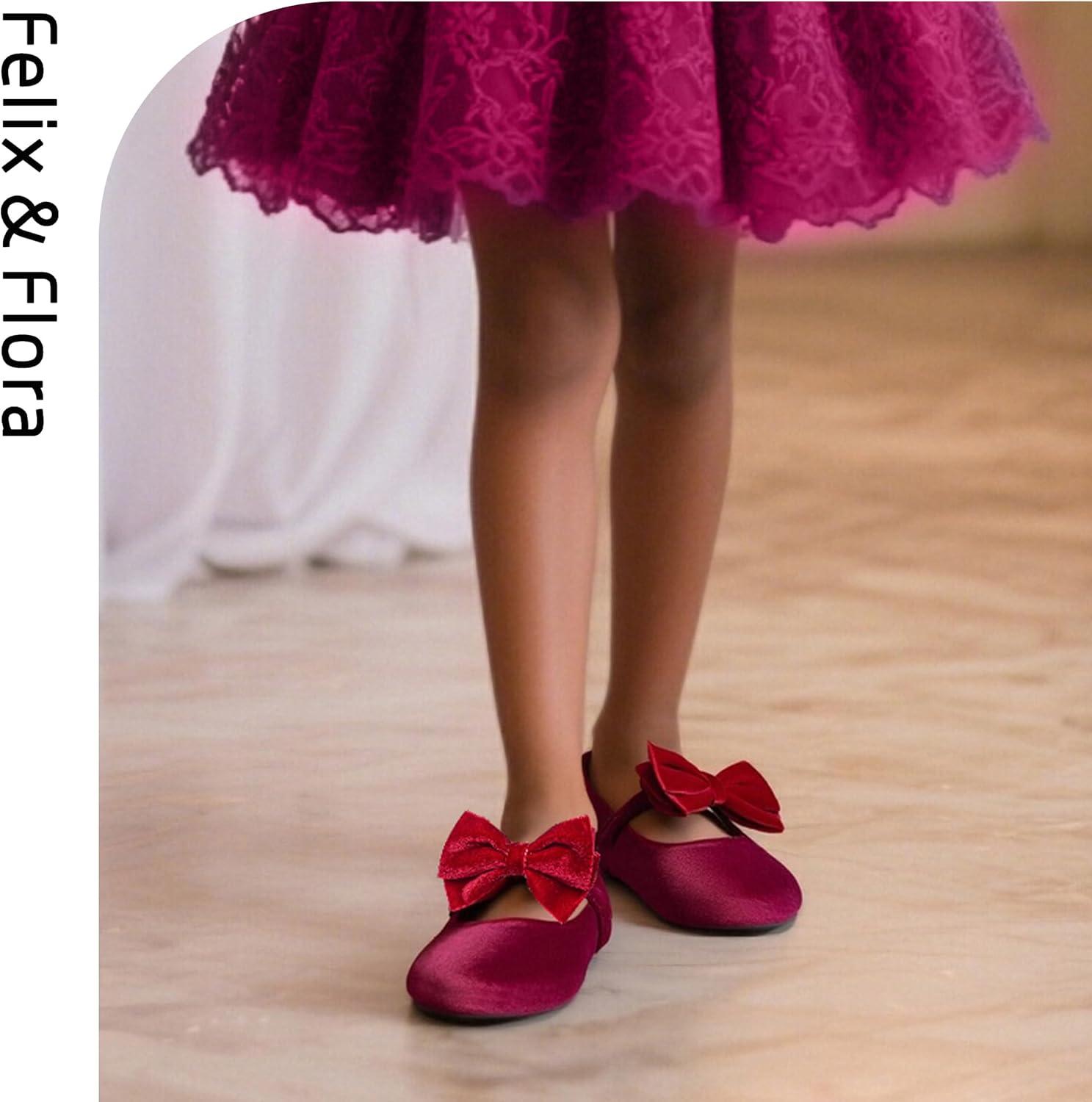 Felix & Flora Toddler Girl Dress Shoes – Flower Girl Ballet Flats School Wedding Party(B903-velvet Purple)