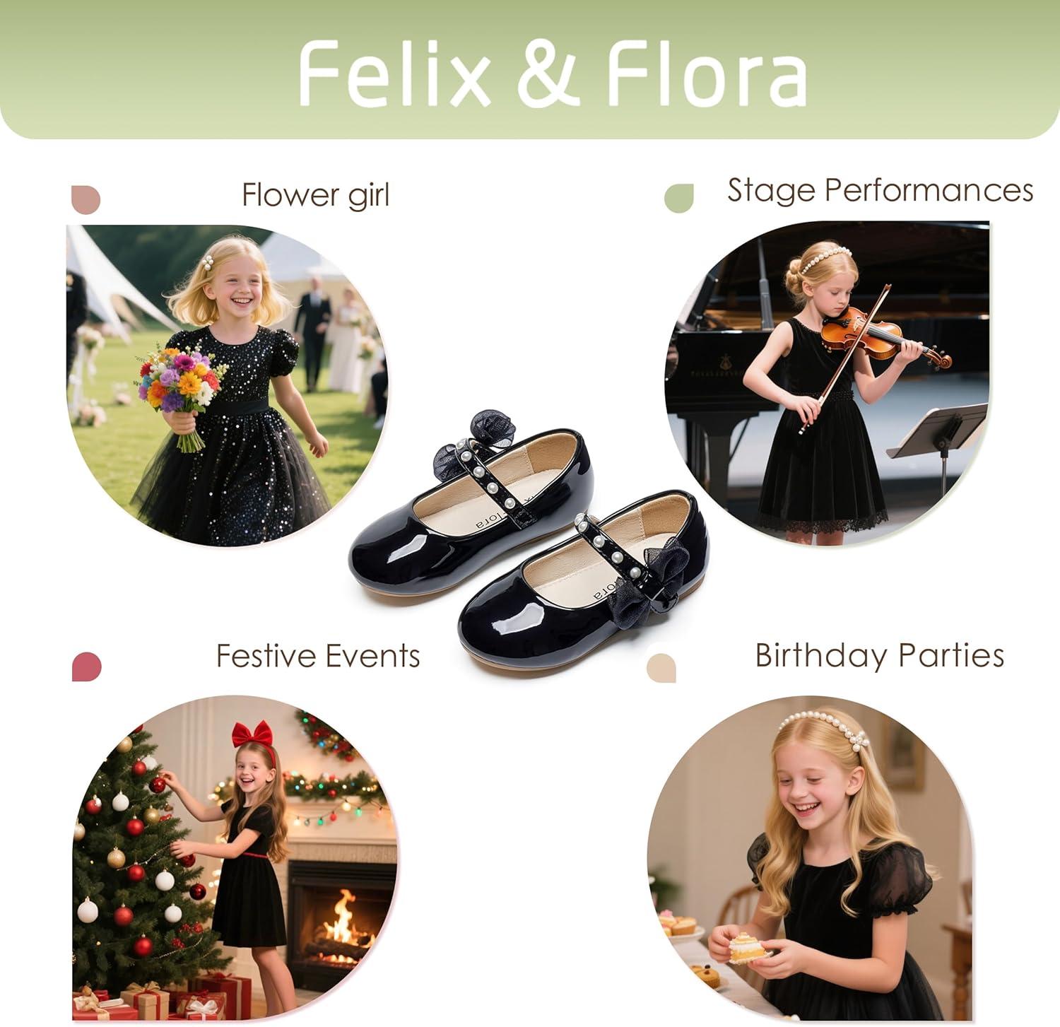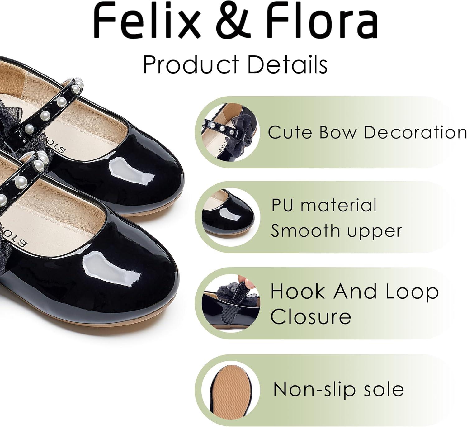 Felix & Flora Toddler Girl Dress Shoes – Flower Girl Ballet Flats School Wedding Party(Bf13-pl Black)