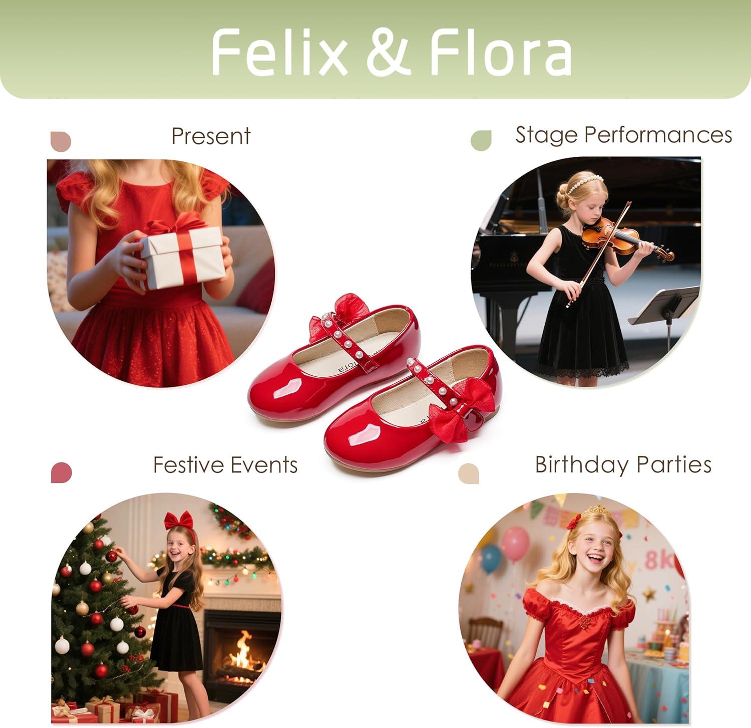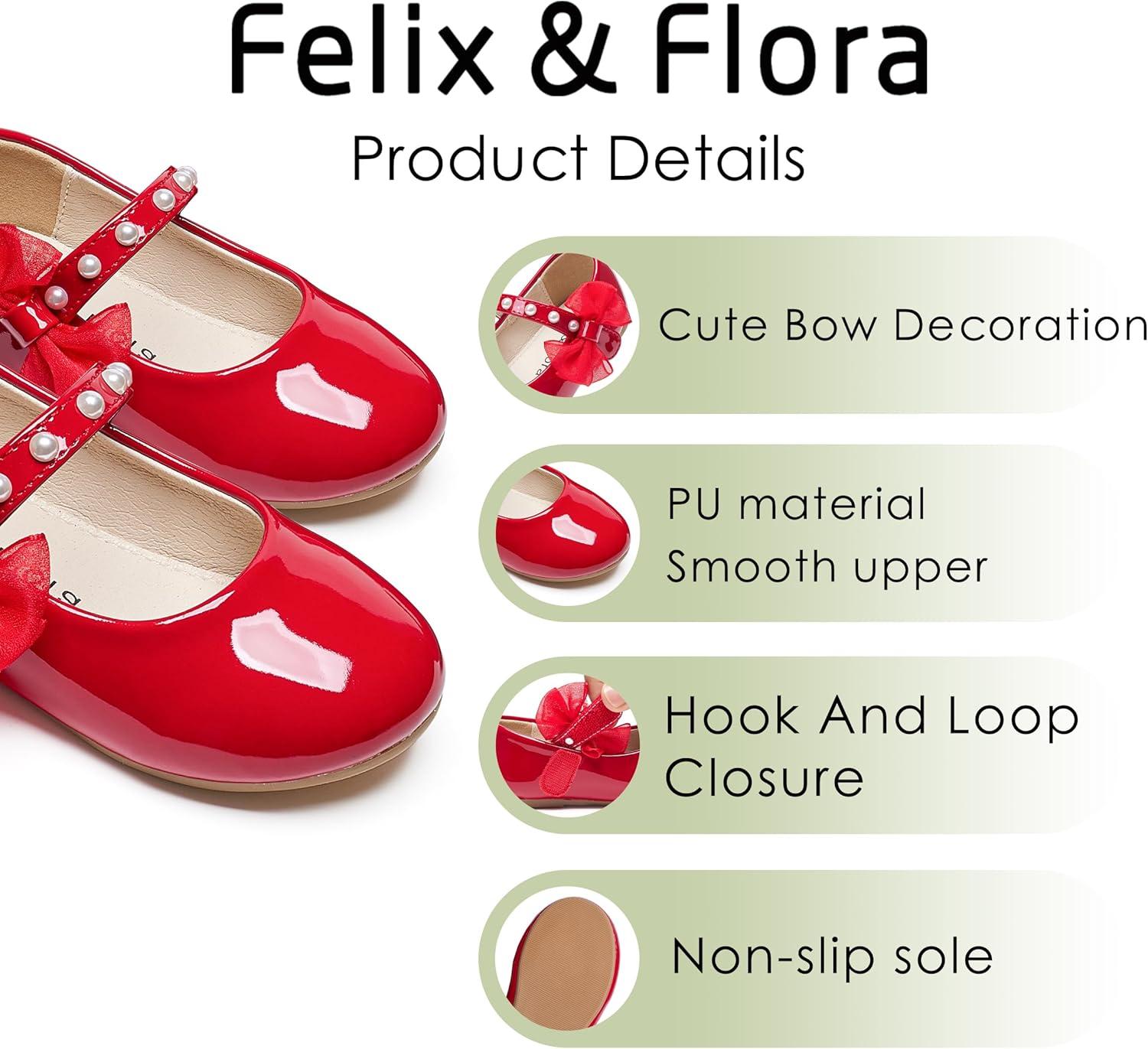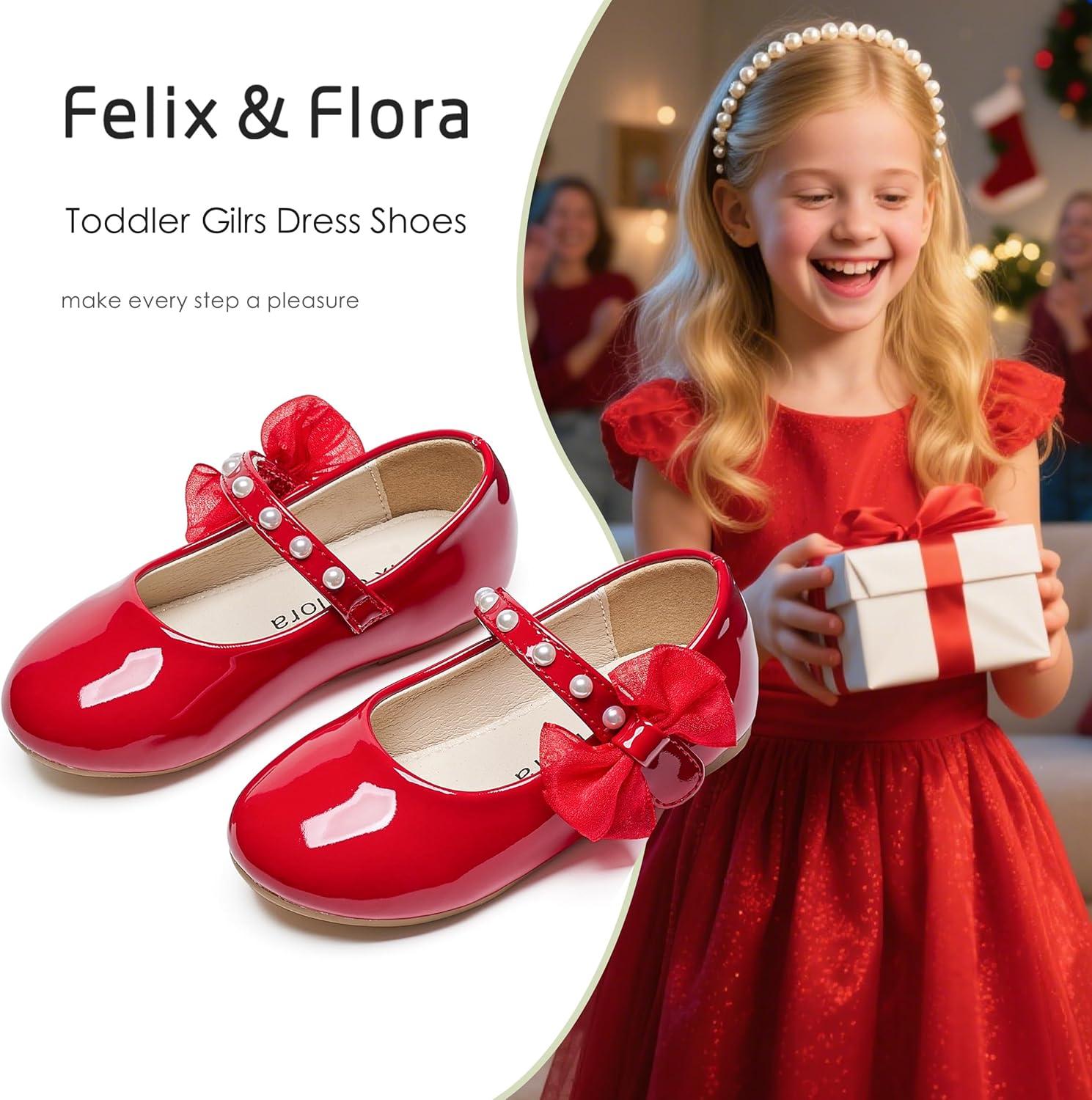Felix & Flora Toddler Girl Dress Shoes – Flower Girl Ballet Flats School Wedding Party(Bf13-pl Red)