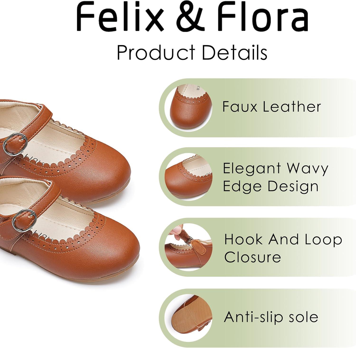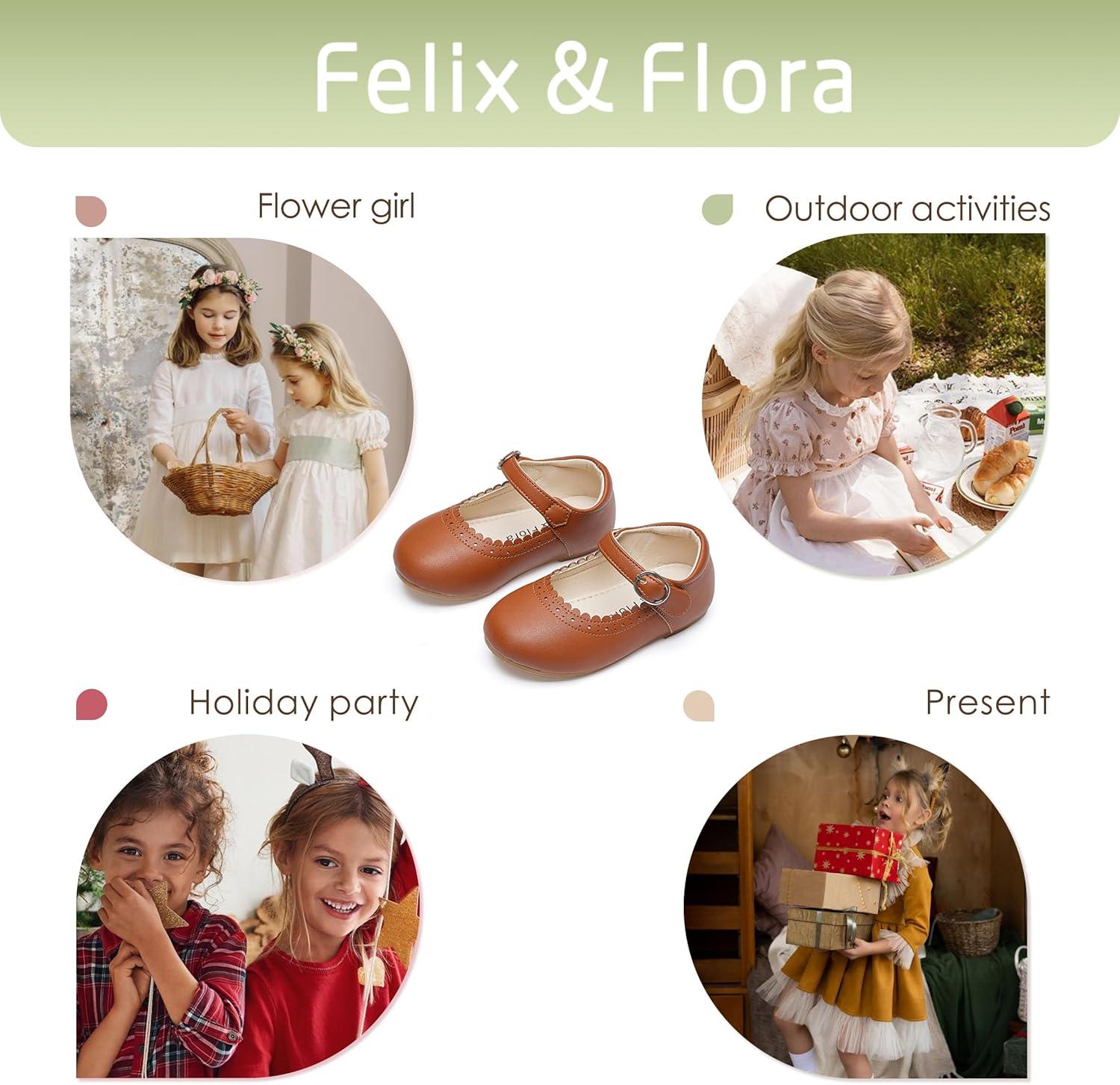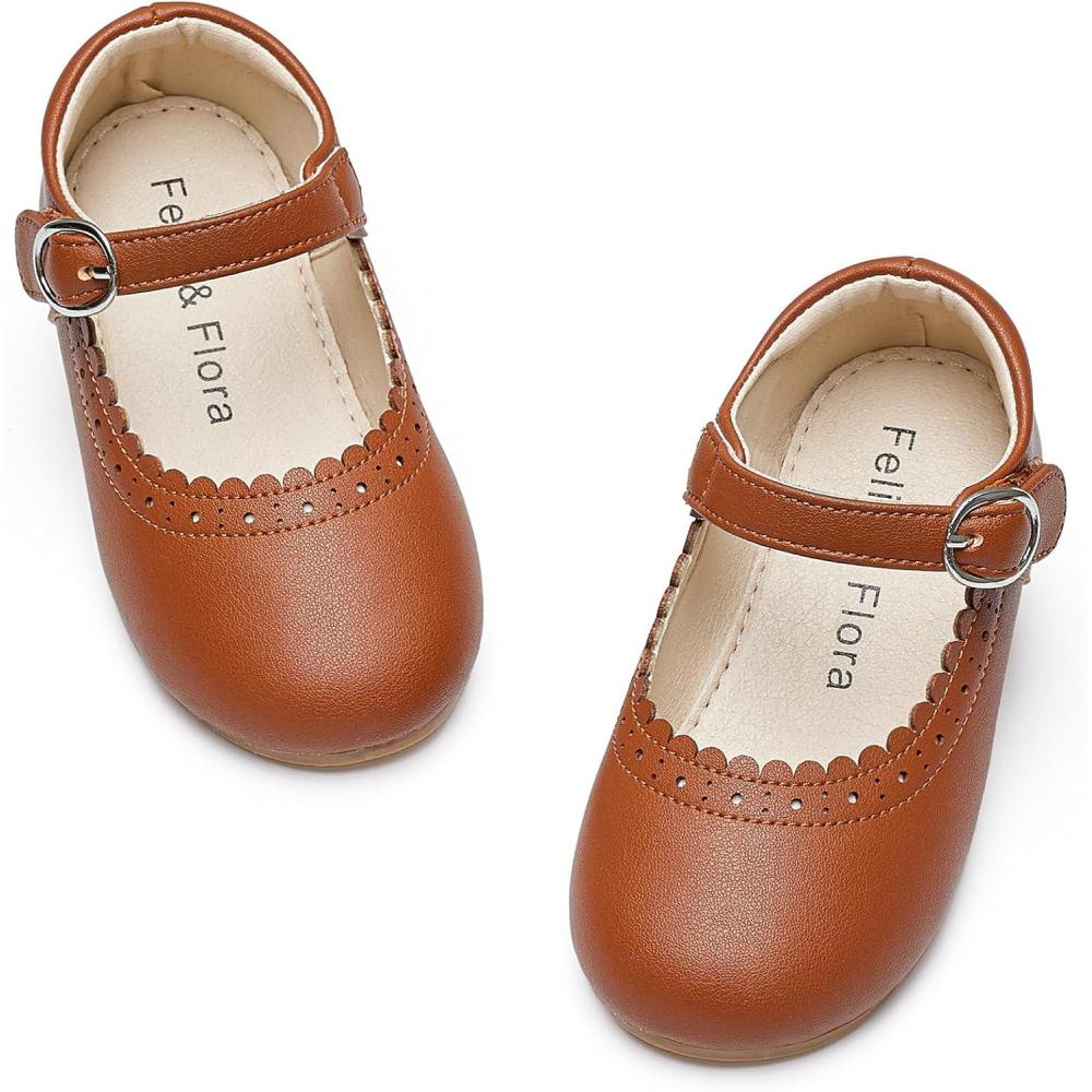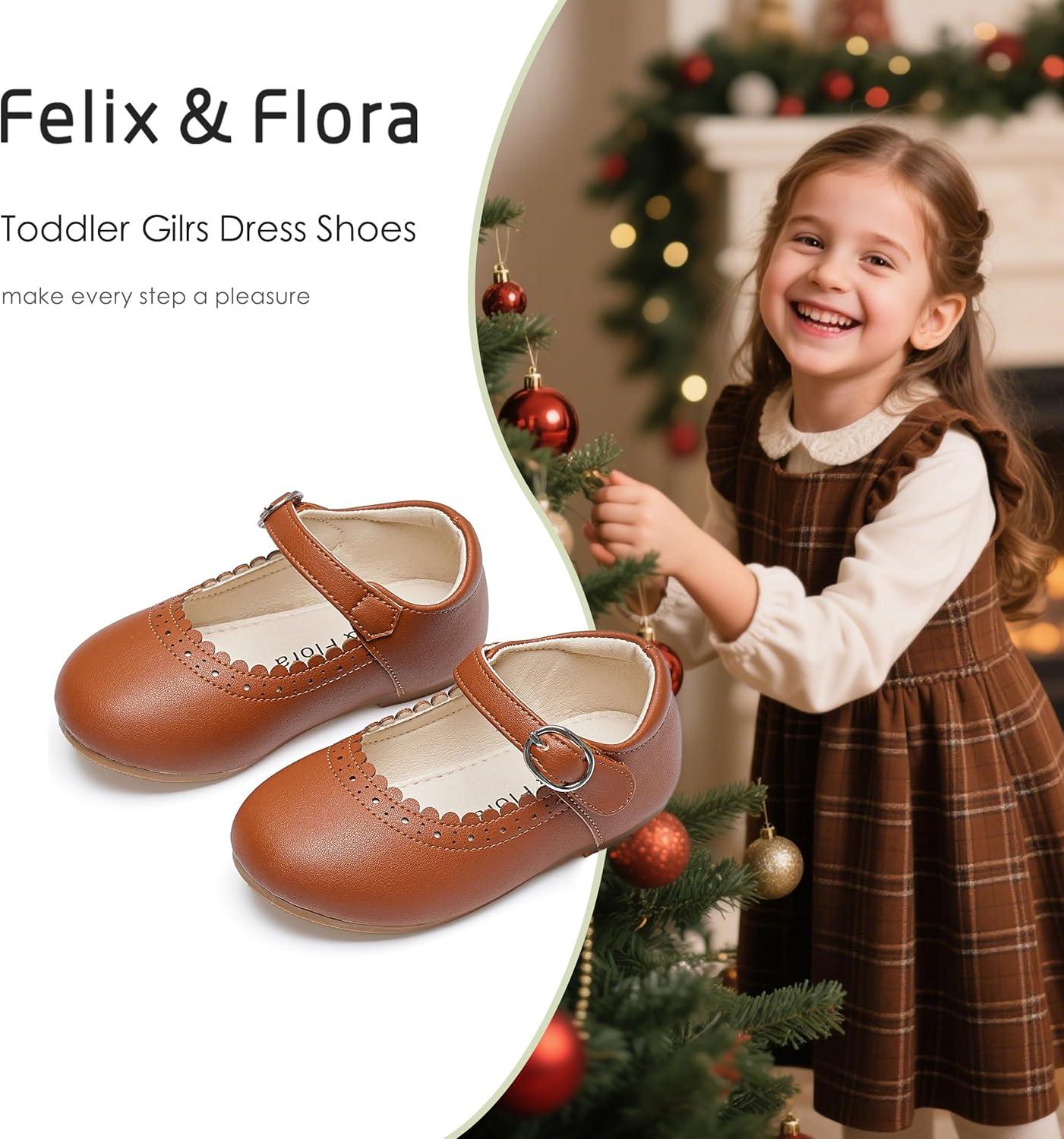 Felix & Flora Toddler Girl Dress Shoes – Flower Girl Ballet Flats School Wedding Party(Bf19-brown)