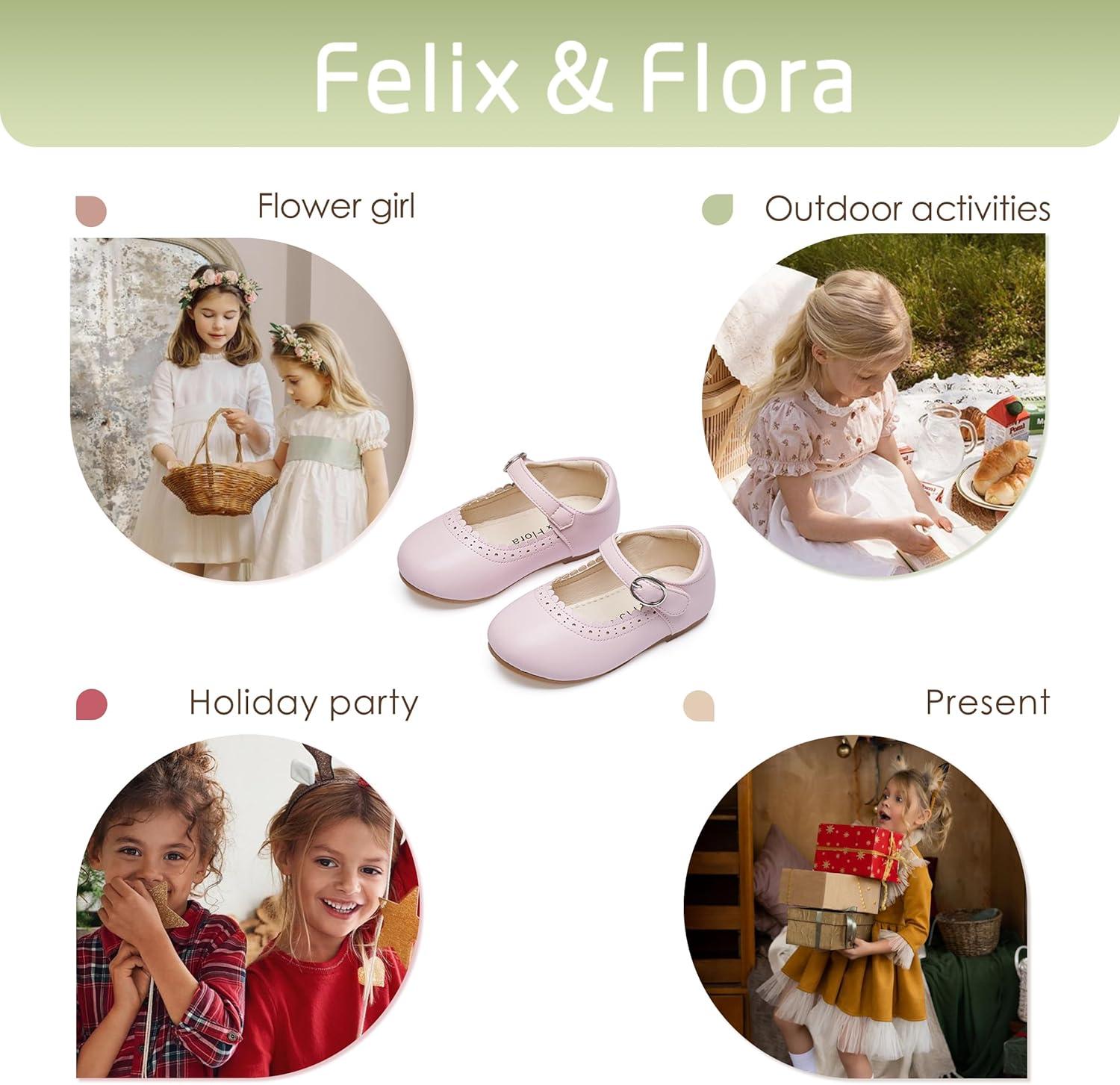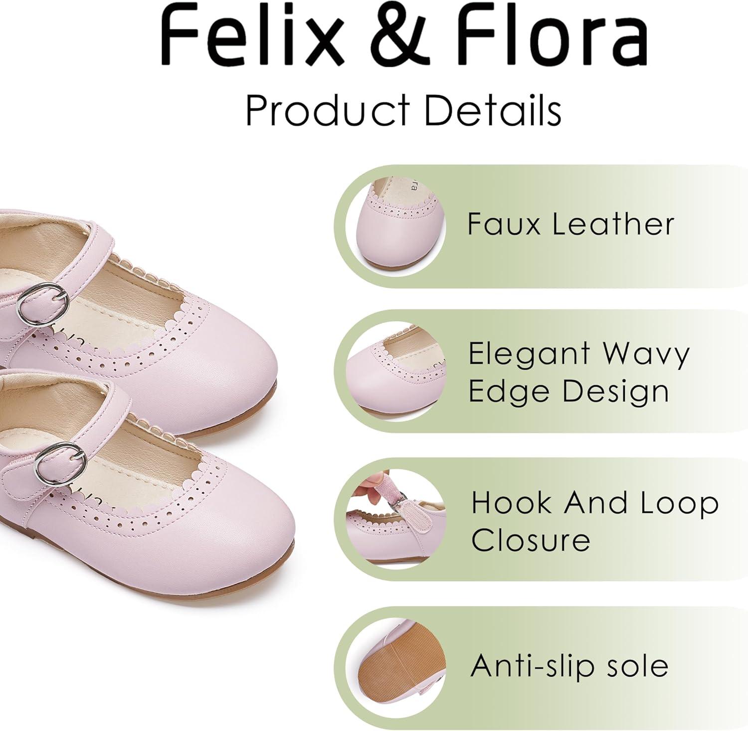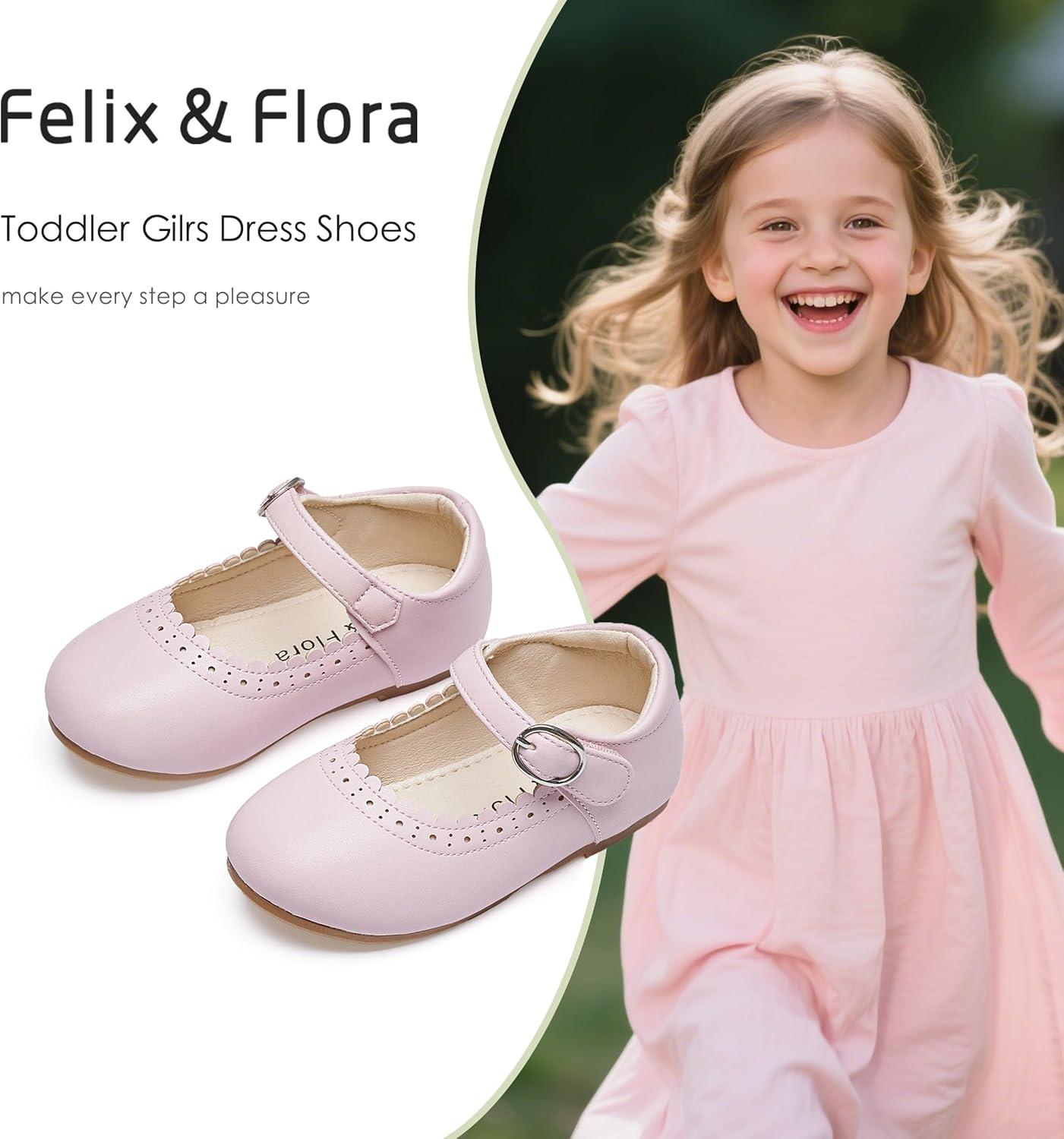 Felix & Flora Toddler Girl Dress Shoes – Flower Girl Ballet Flats School Wedding Party(Bf19-pink)