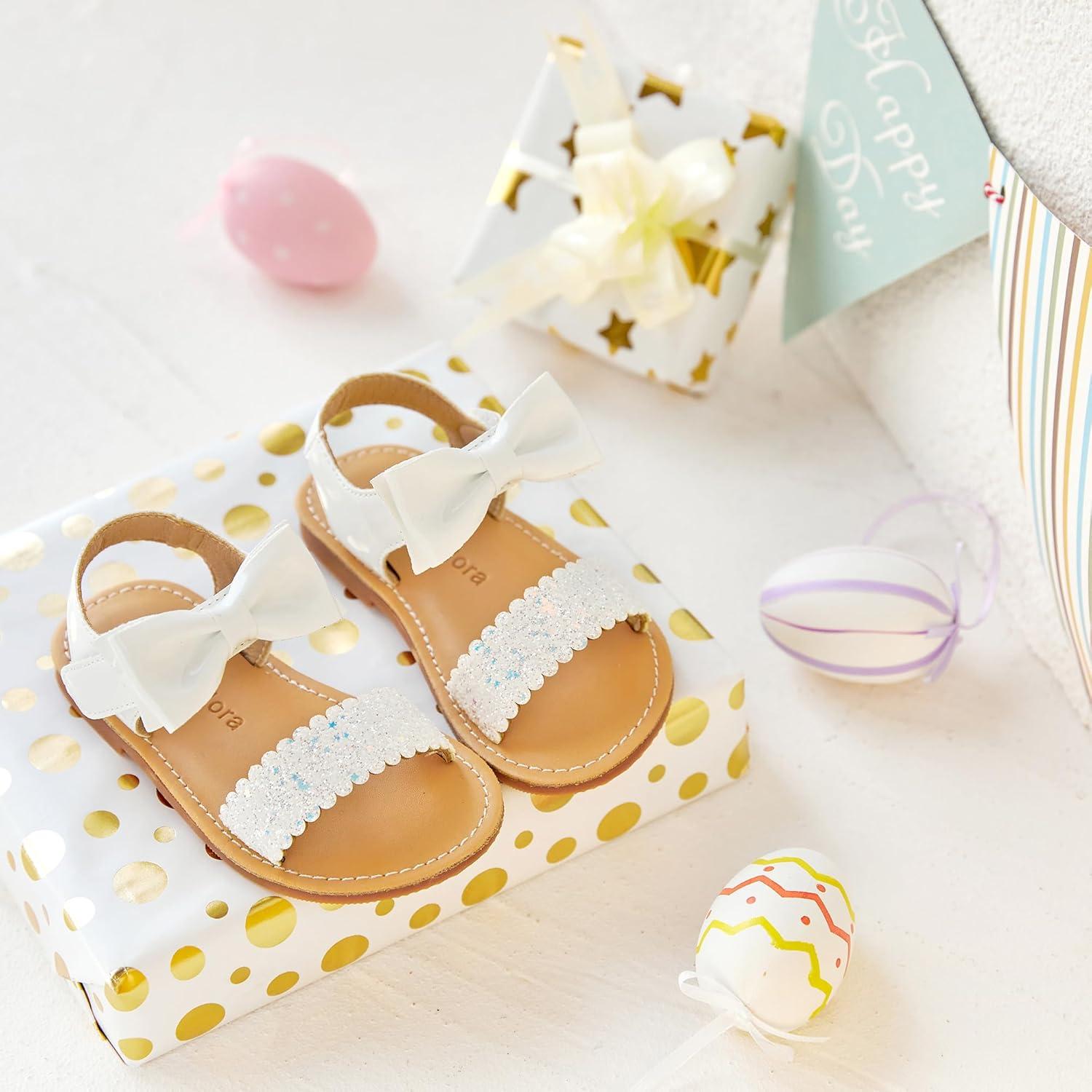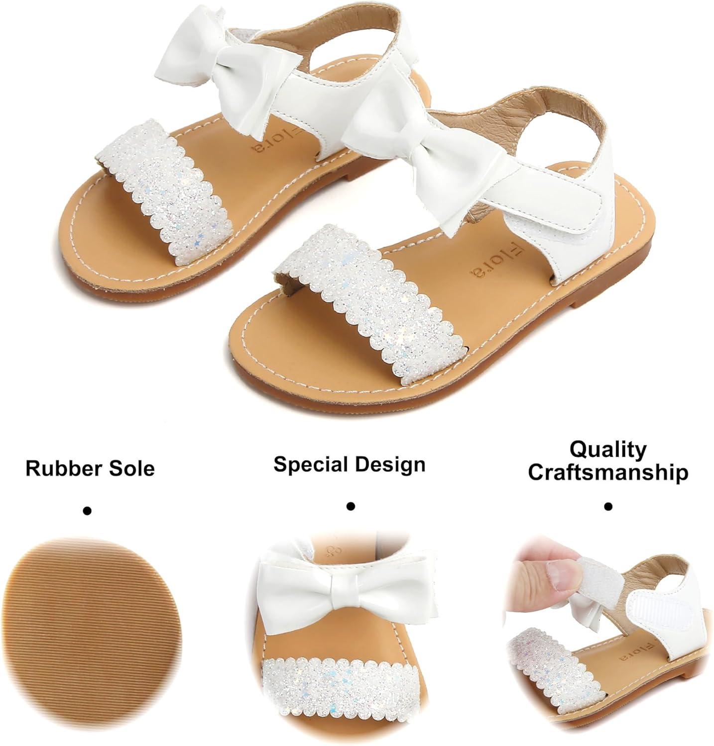 Felix & Flora Toddler Girl Sandals – Flower Girl Dress Shoes Open Toe Little Kid Summer Flats(Bc216-glitter White)