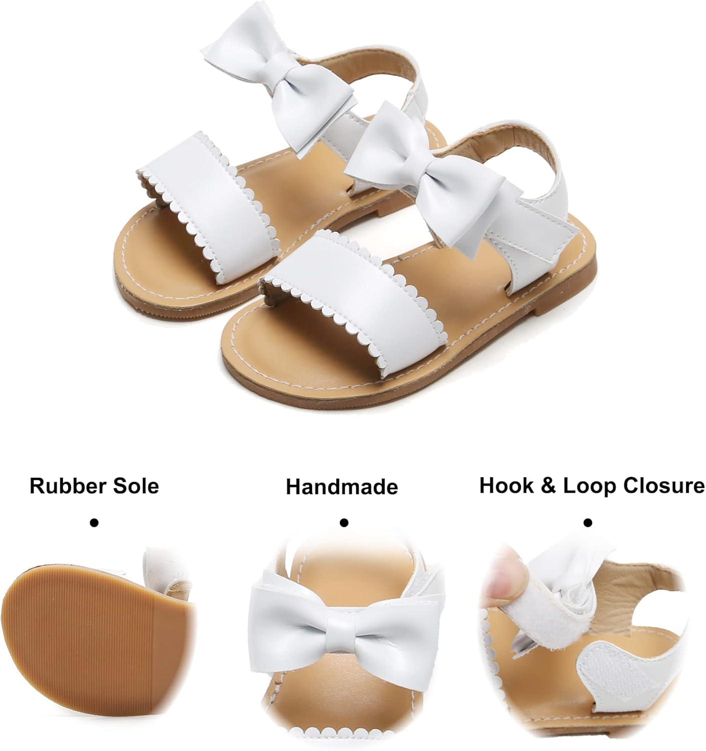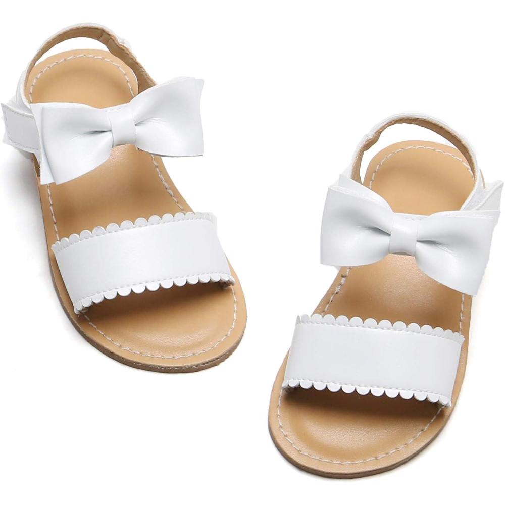 Felix & Flora Toddler Girl Sandals – Flower Girl Dress Shoes Open Toe Little Kid Summer Flats(Bc216-white)