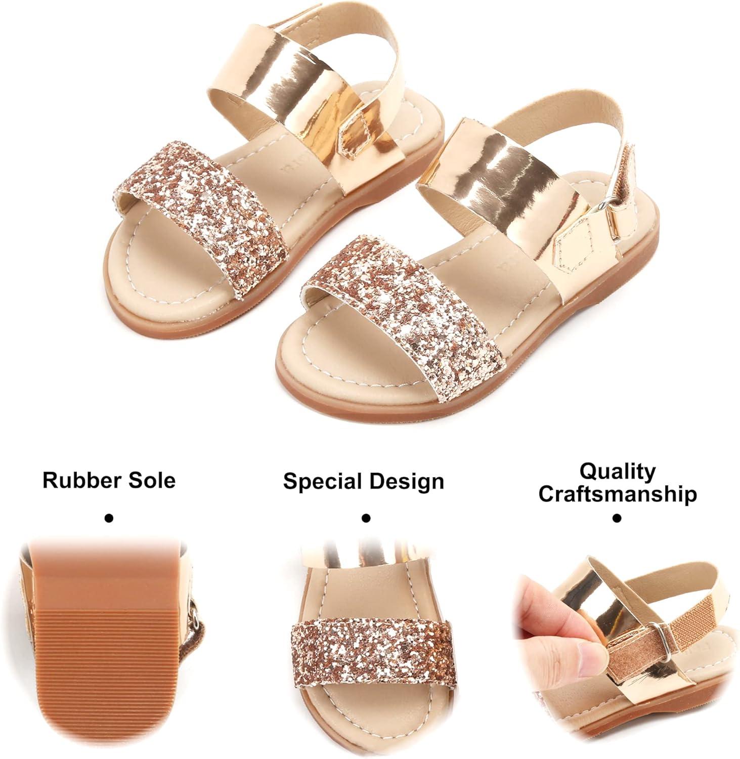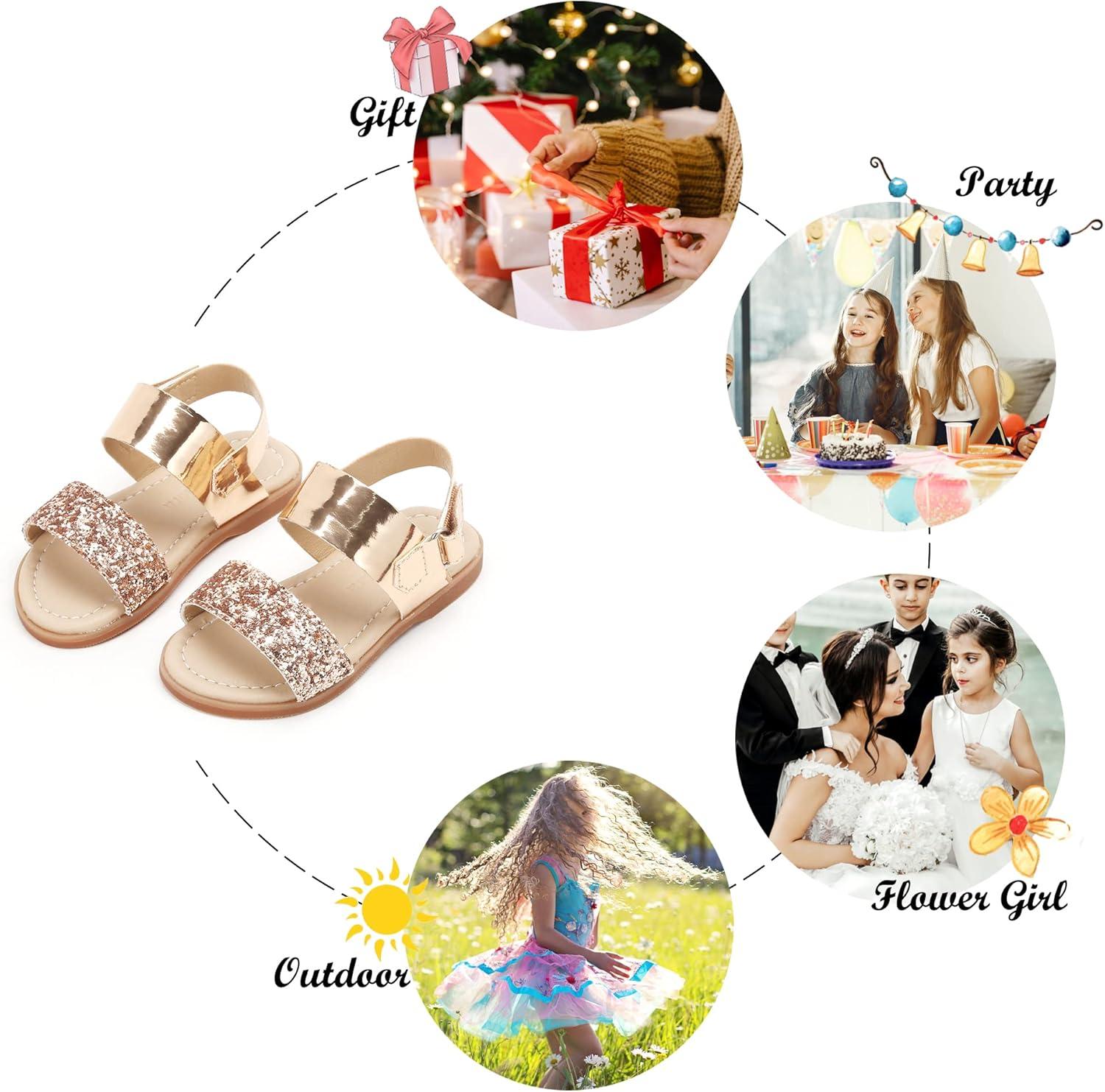 Felix & Flora Toddler Girl Sandals – Flower Girl Dress Shoes Open Toe Little Kid Summer Flats(Bc251-glitter Pink)