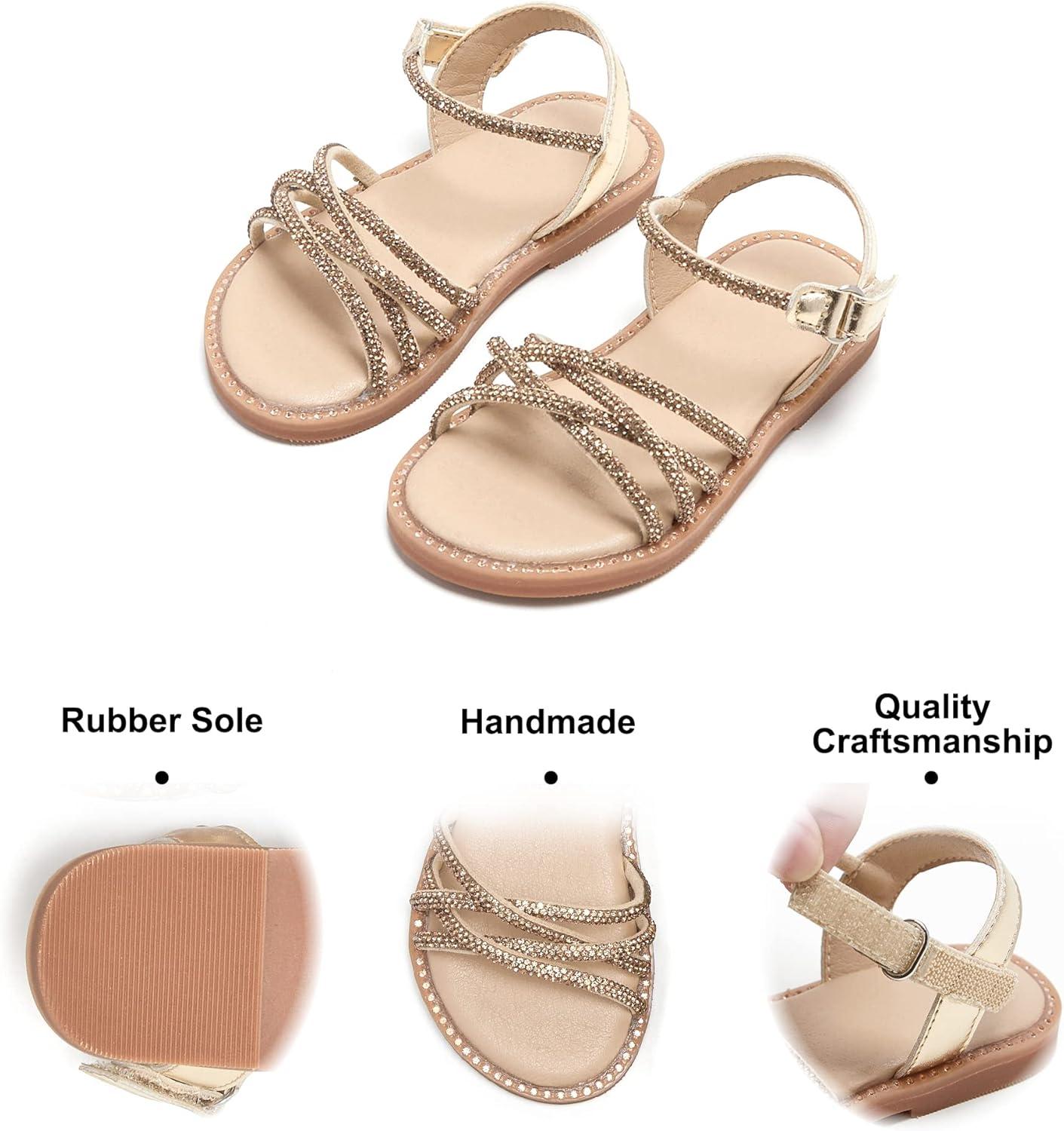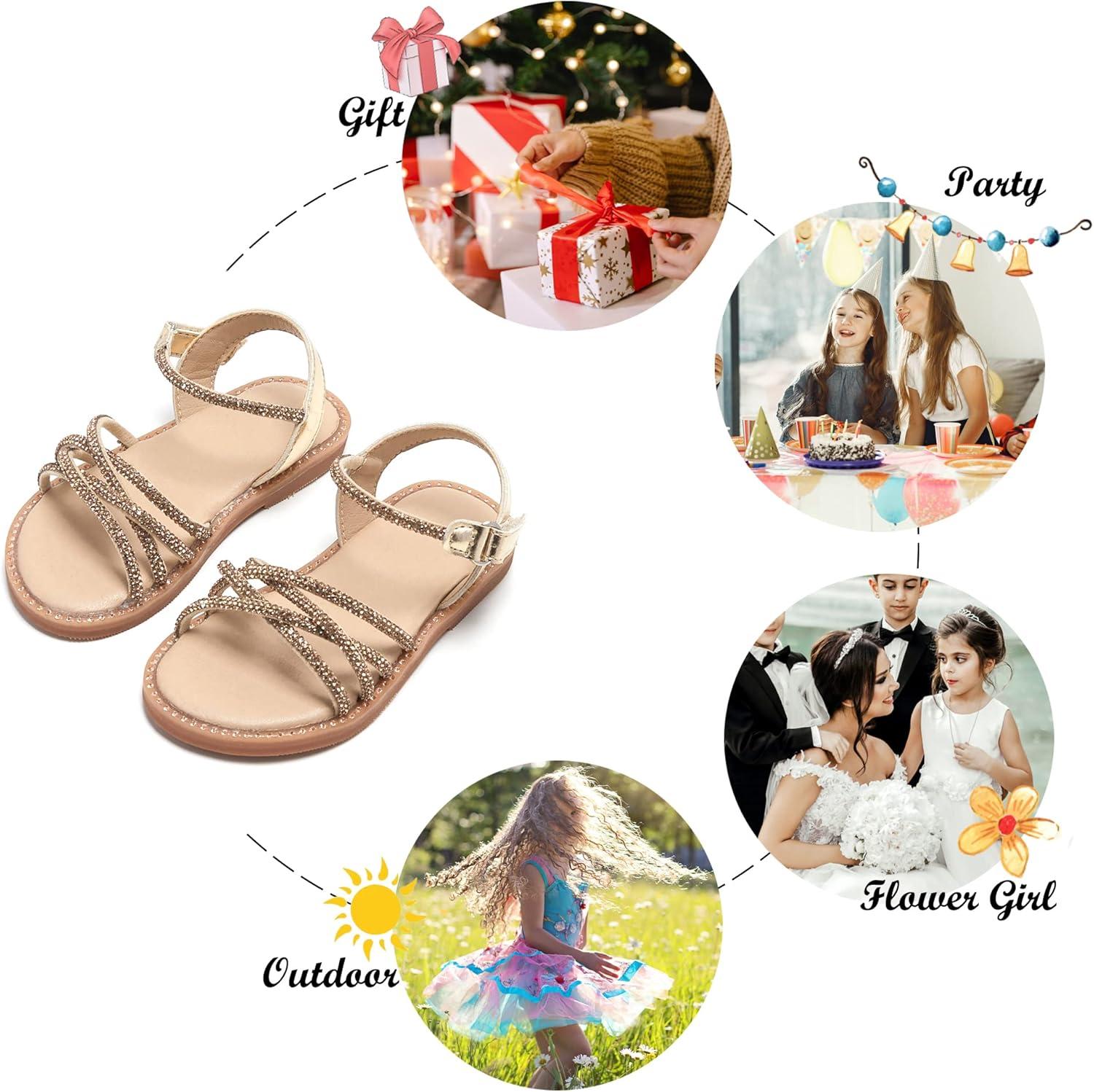 Felix & Flora Toddler Girl Sandals -Flower Girl Dress Shoes Open Toe Little Kid Summer Flats(Bc277-gold)