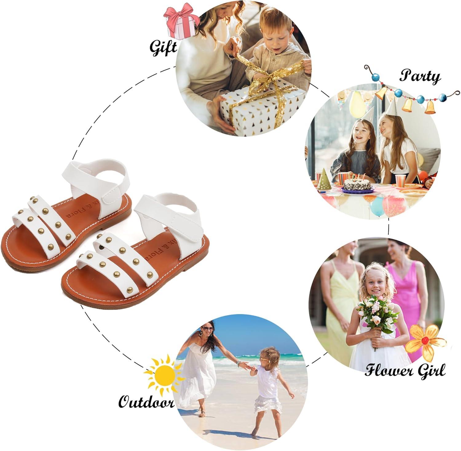 Felix & Flora Toddler Girl Sandals - Flower Girl Dress Shoes Open Toe Little Kid Summer Flats