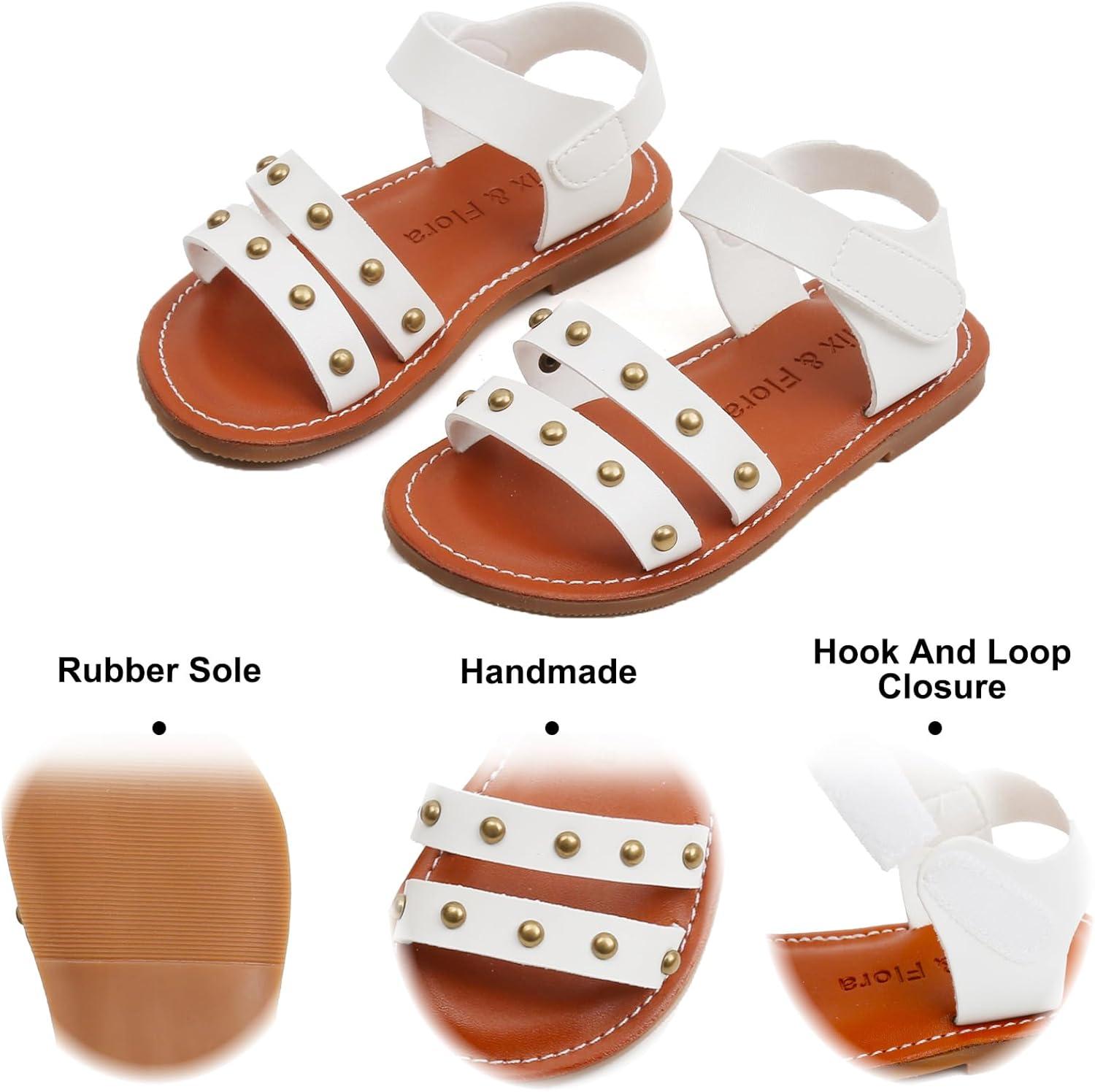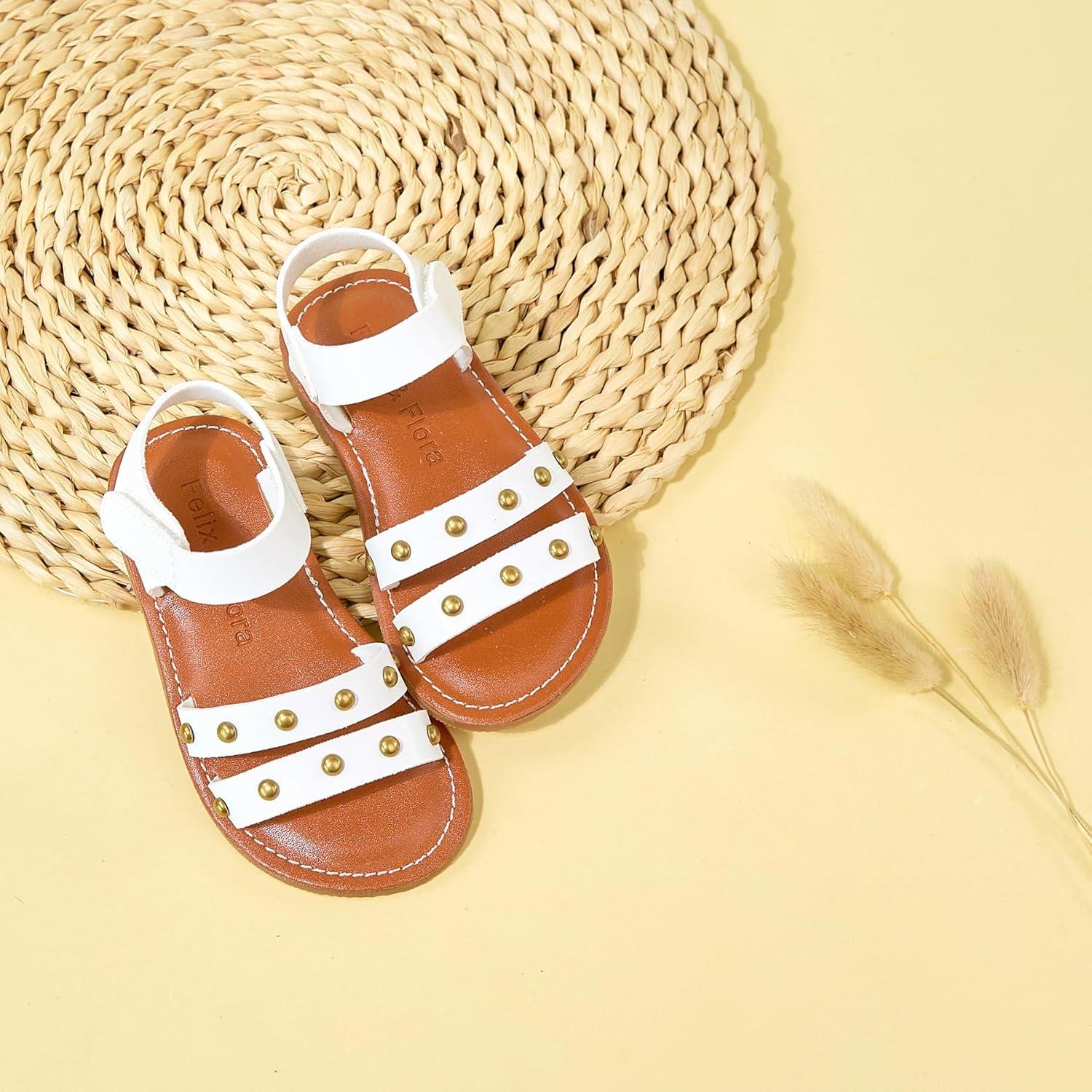 Felix & Flora Toddler Girl Sandals – Flower Girl Dress Shoes Open Toe Little Kid Summer Flats(Bc285-white)