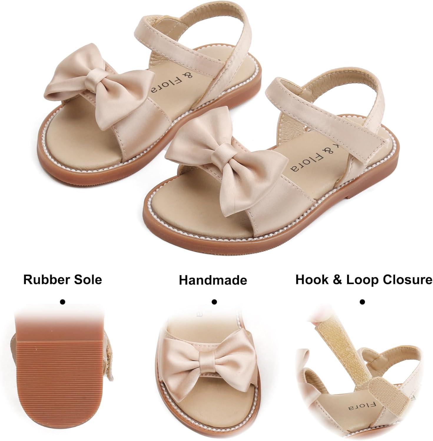 Felix & Flora Toddler Girl Sandals – Flower Girl Dress Shoes Open Toe Little Kid Summer Flats(Bc291-dark Nude)