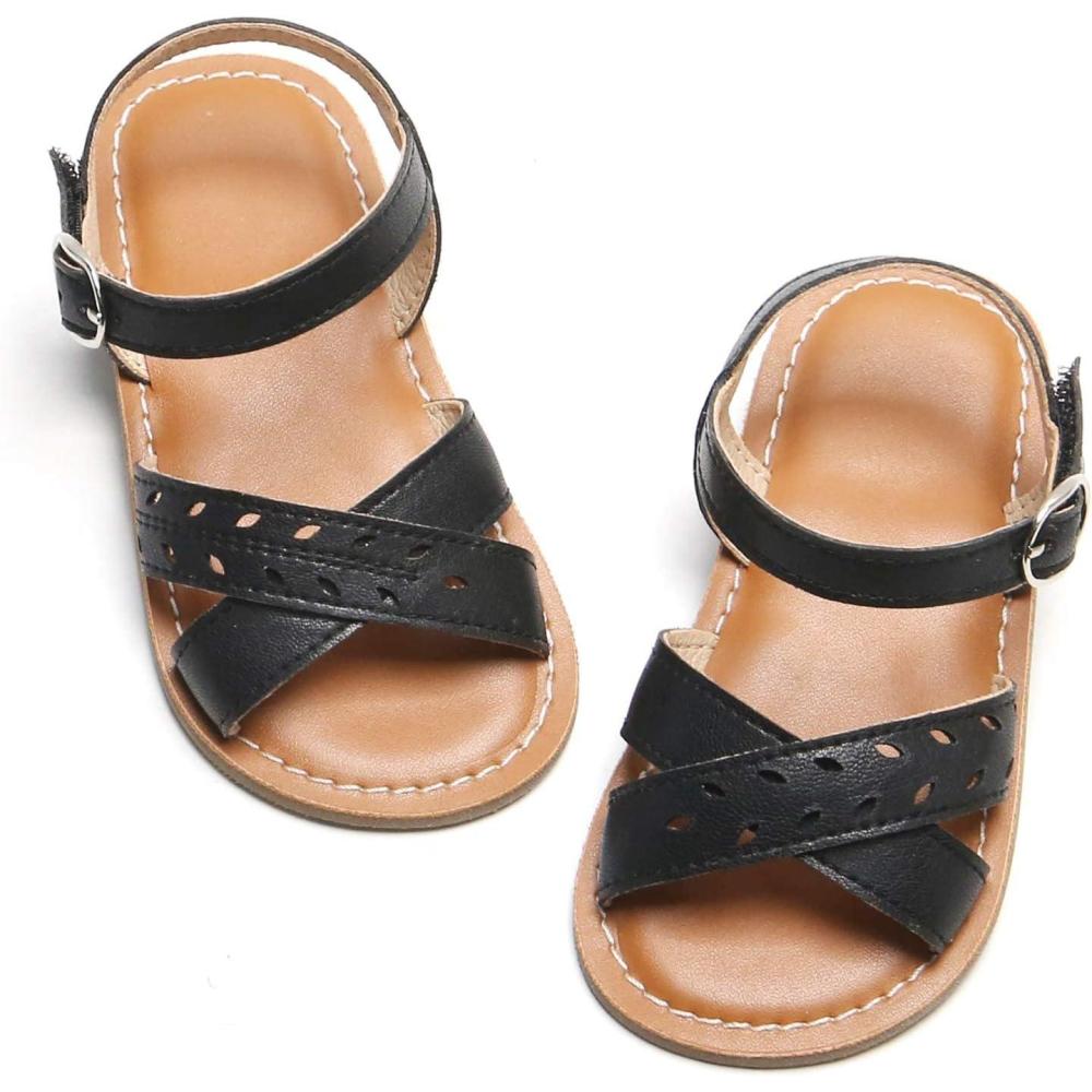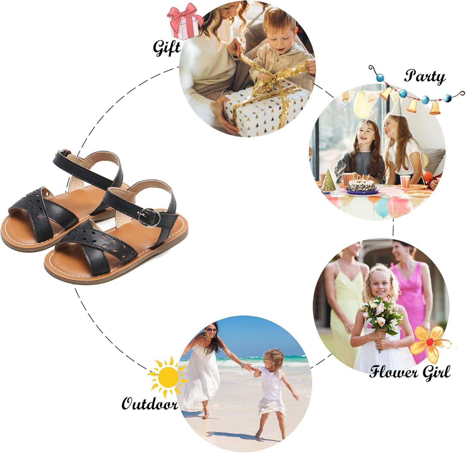 Felix & Flora Toddler Girl Sandals – Little Girl Easter Summer Dress Shoes Lightweight Open Toe Beach Holiday.(Bc219-black)