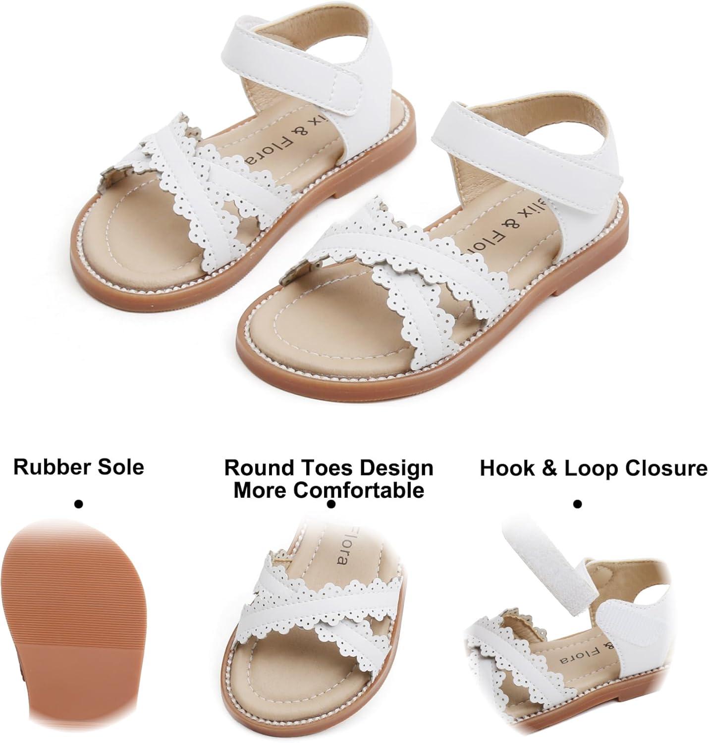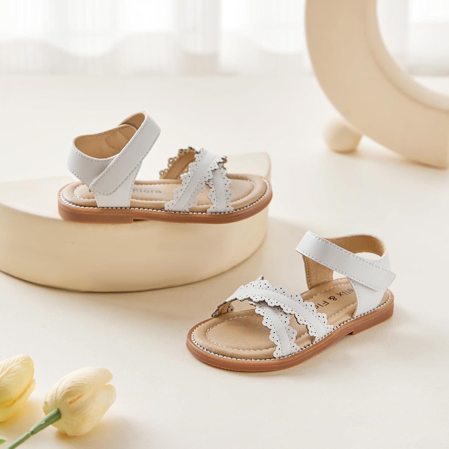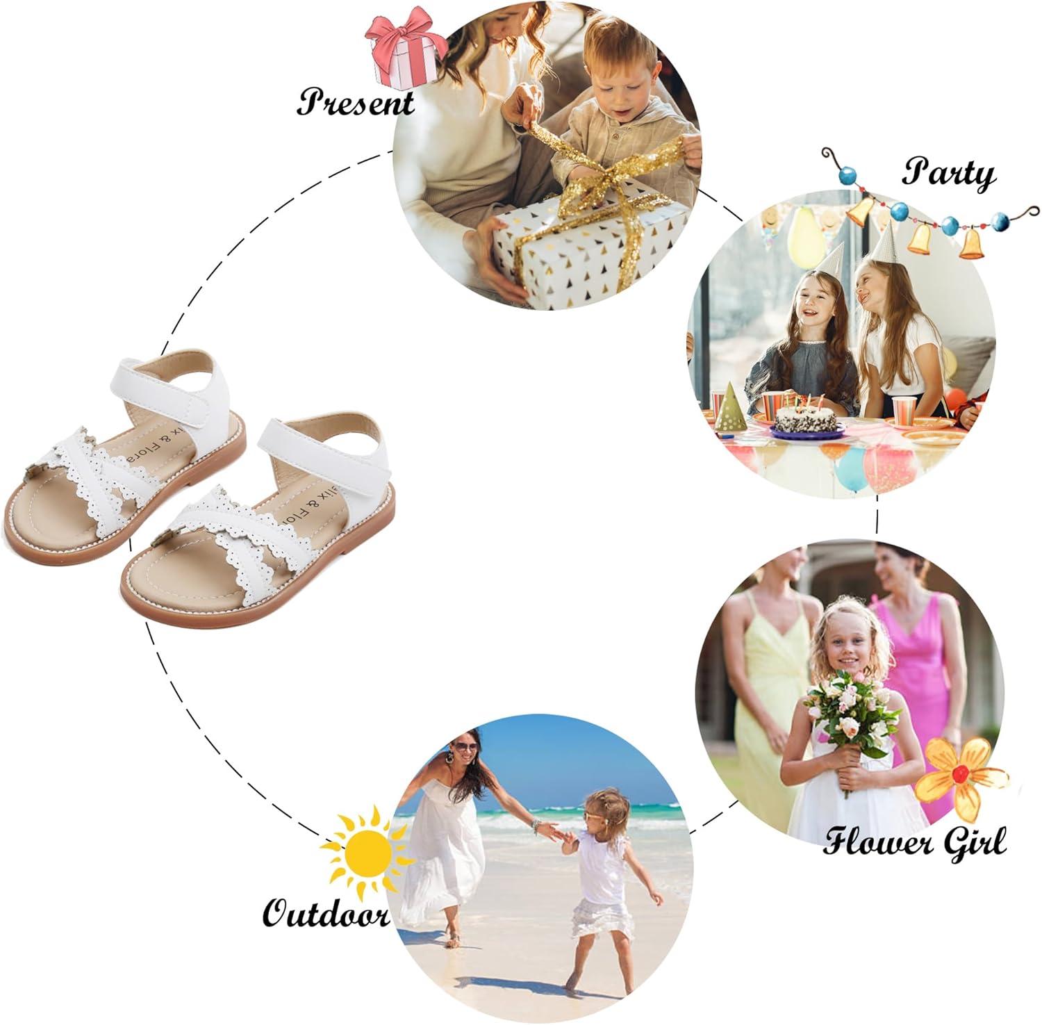 Felix & Flora Toddler Girl Sandals – Little Girl Easter Summer Dress Shoes Lightweight Open Toe Beach Holiday.(Bc286-white)