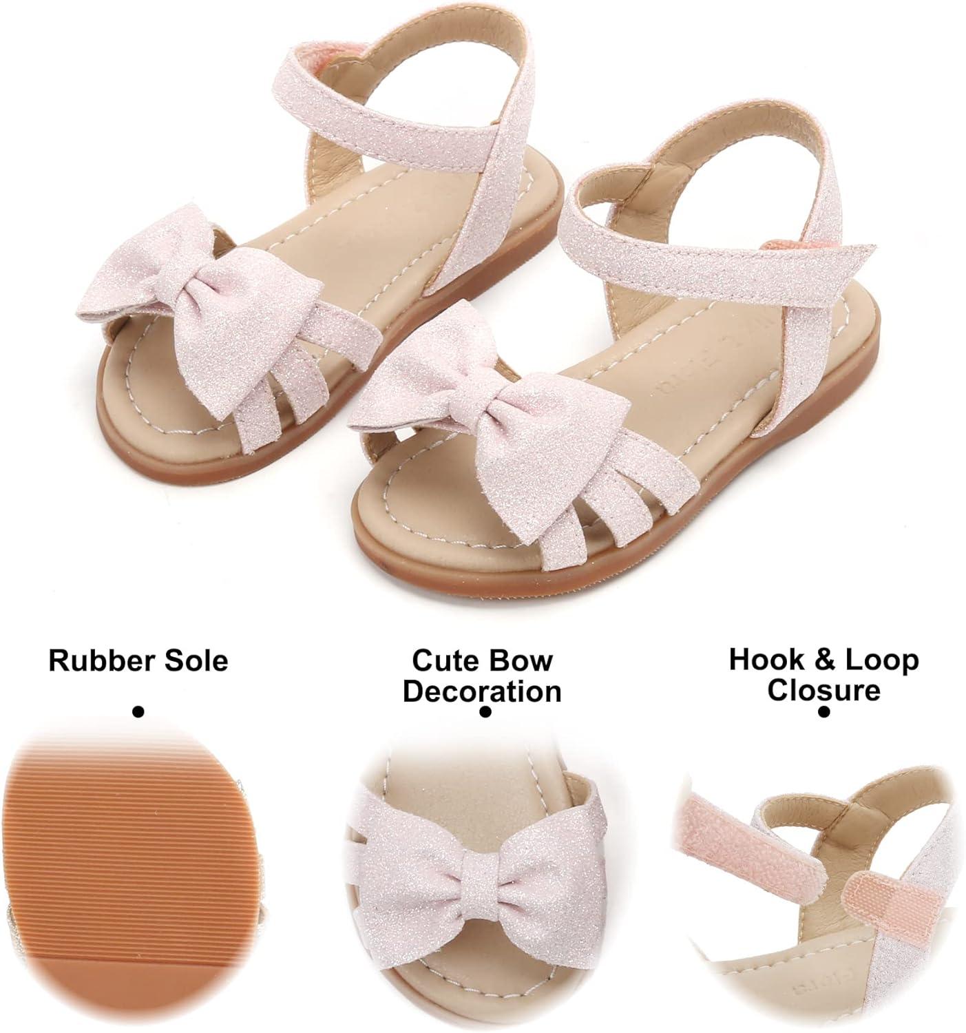 Felix & Flora Toddler Girls Sandals Soft Rubber Flats Summer Baby Flower Girl Shoes.(Bc252-pink)
