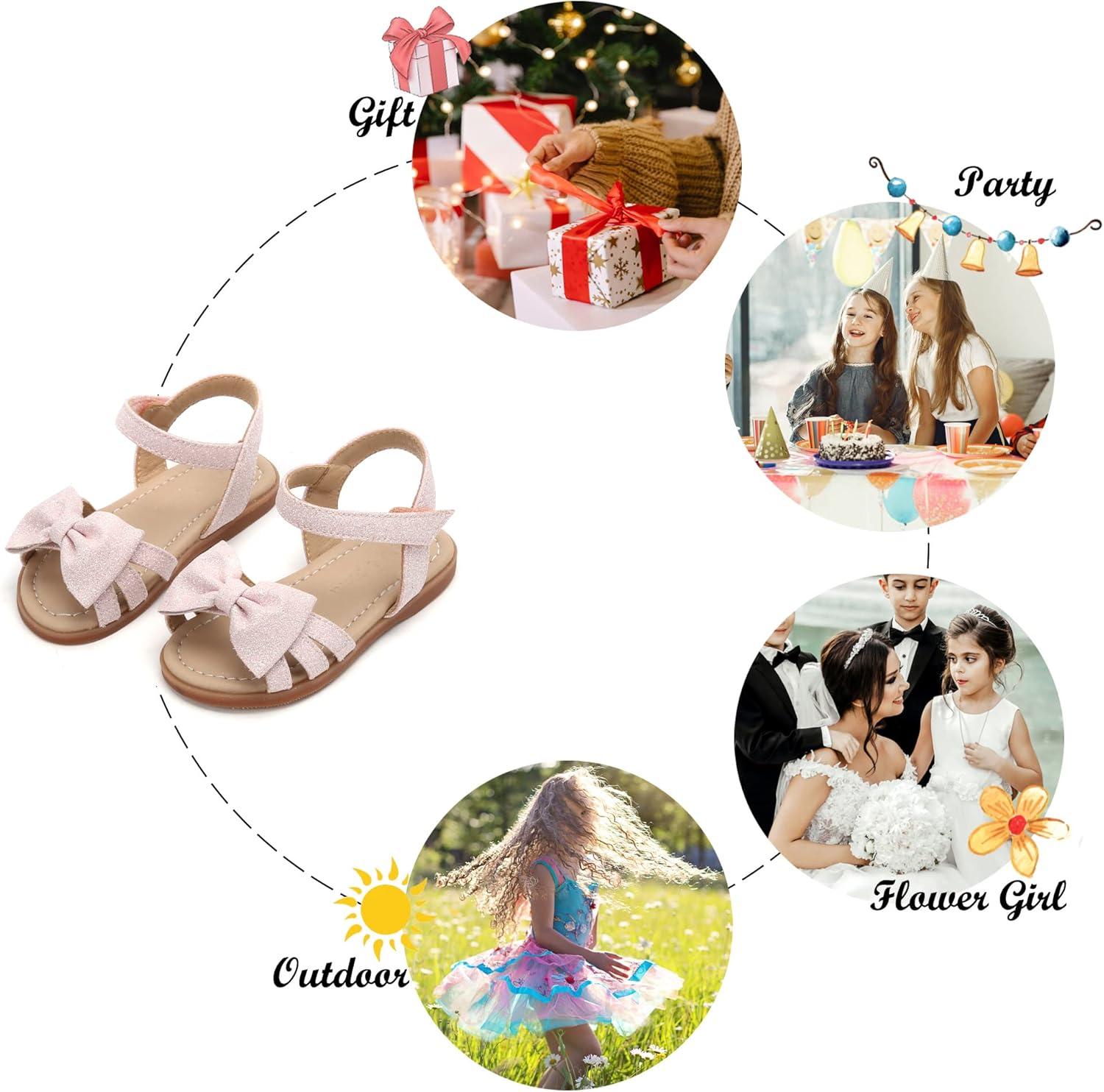 Felix & Flora Toddler Girl Sandals -Flower Girl Dress Shoes Open Toe Little Kid Summer Flats(Bc212-oxford Brown)